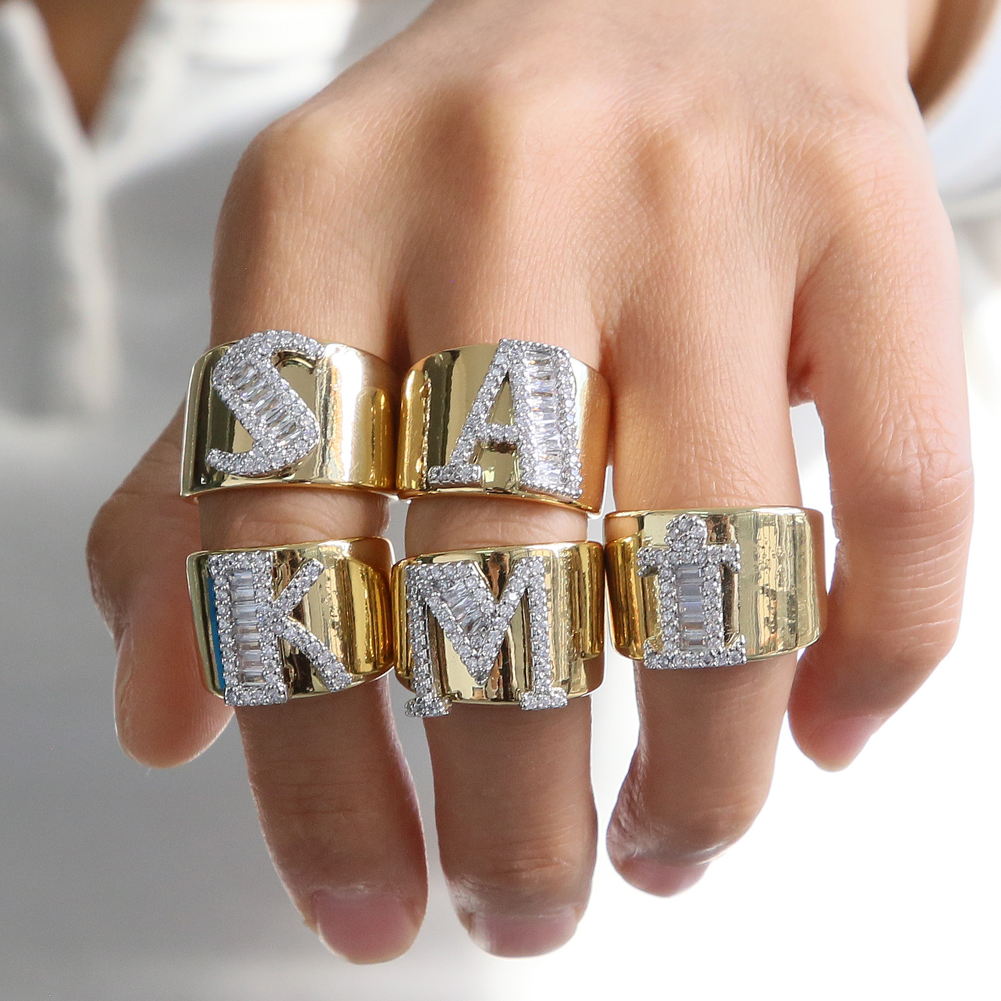 Two Tones Initial Letter Alphabet Thick Ring