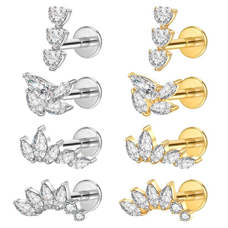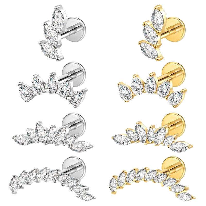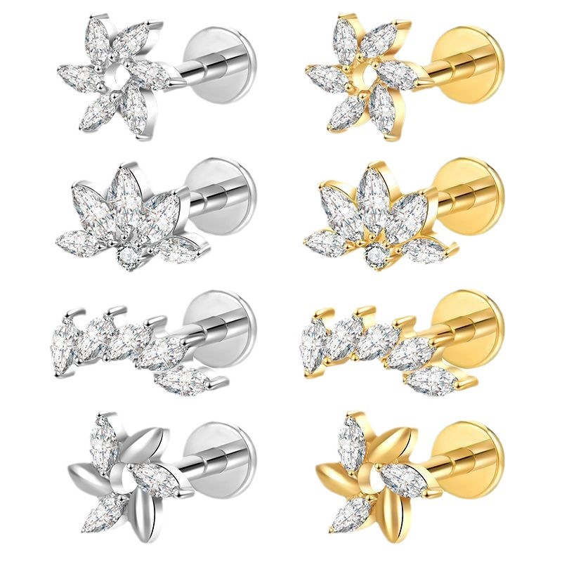 G23 Zircon Flower Threadless Push In Piercing Earrings
