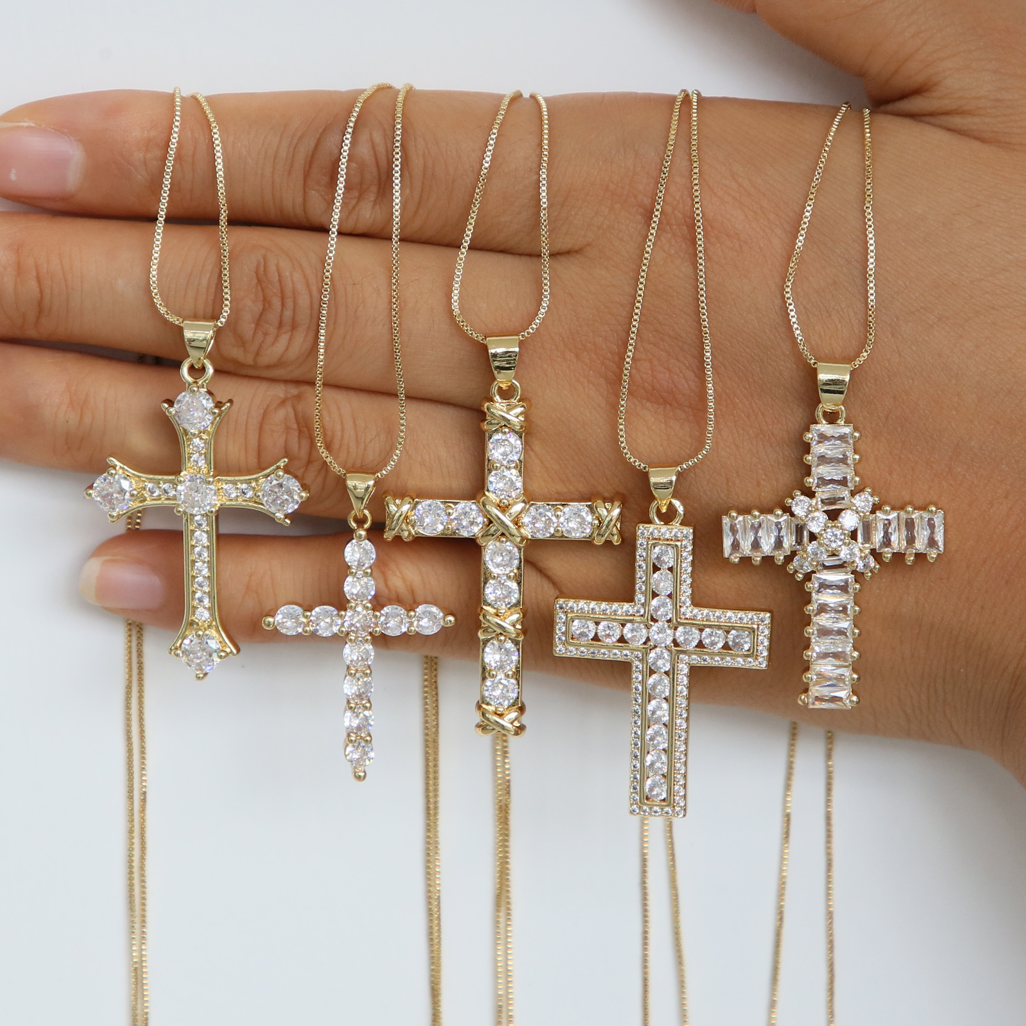 Religious Cross Zircon Pendant Necklaces