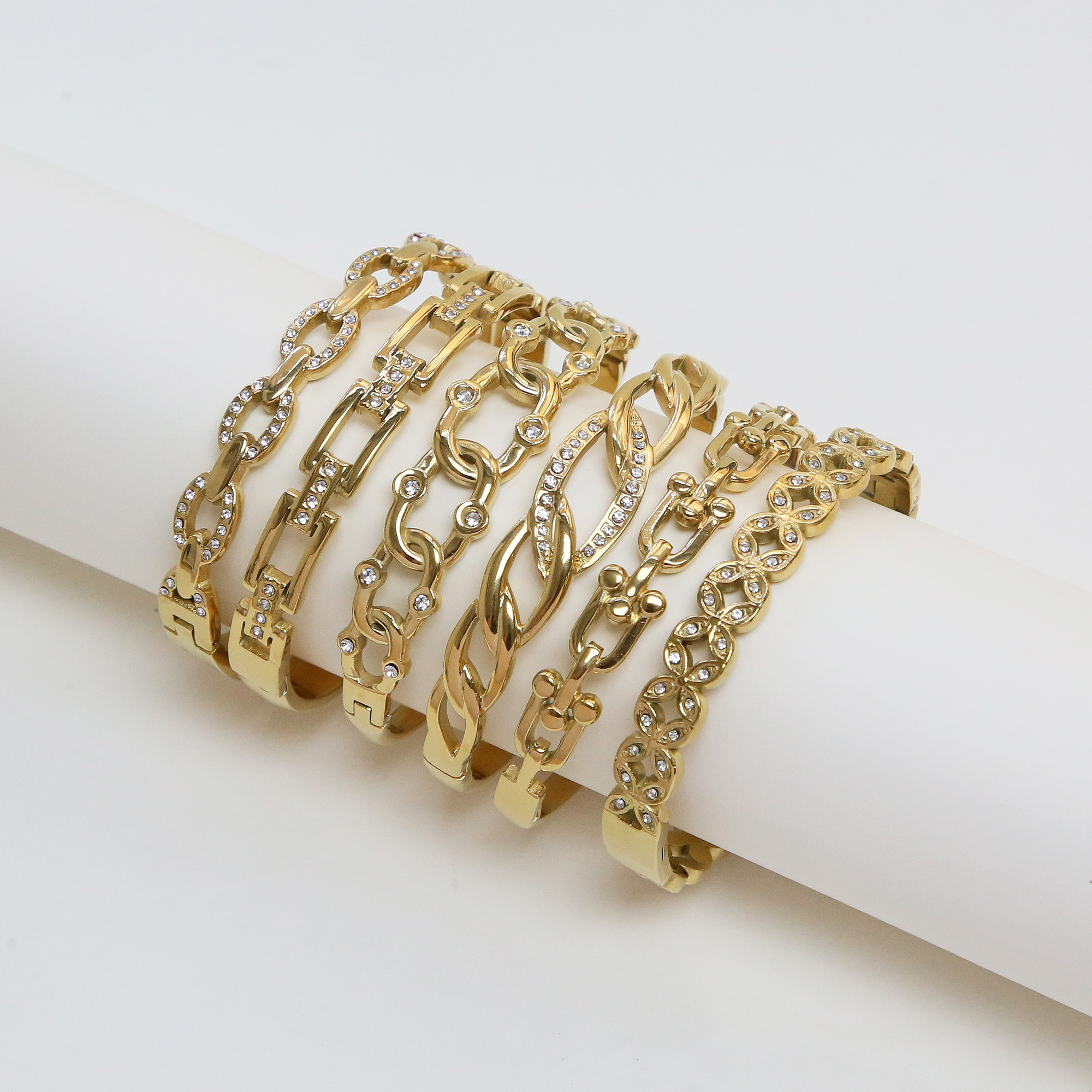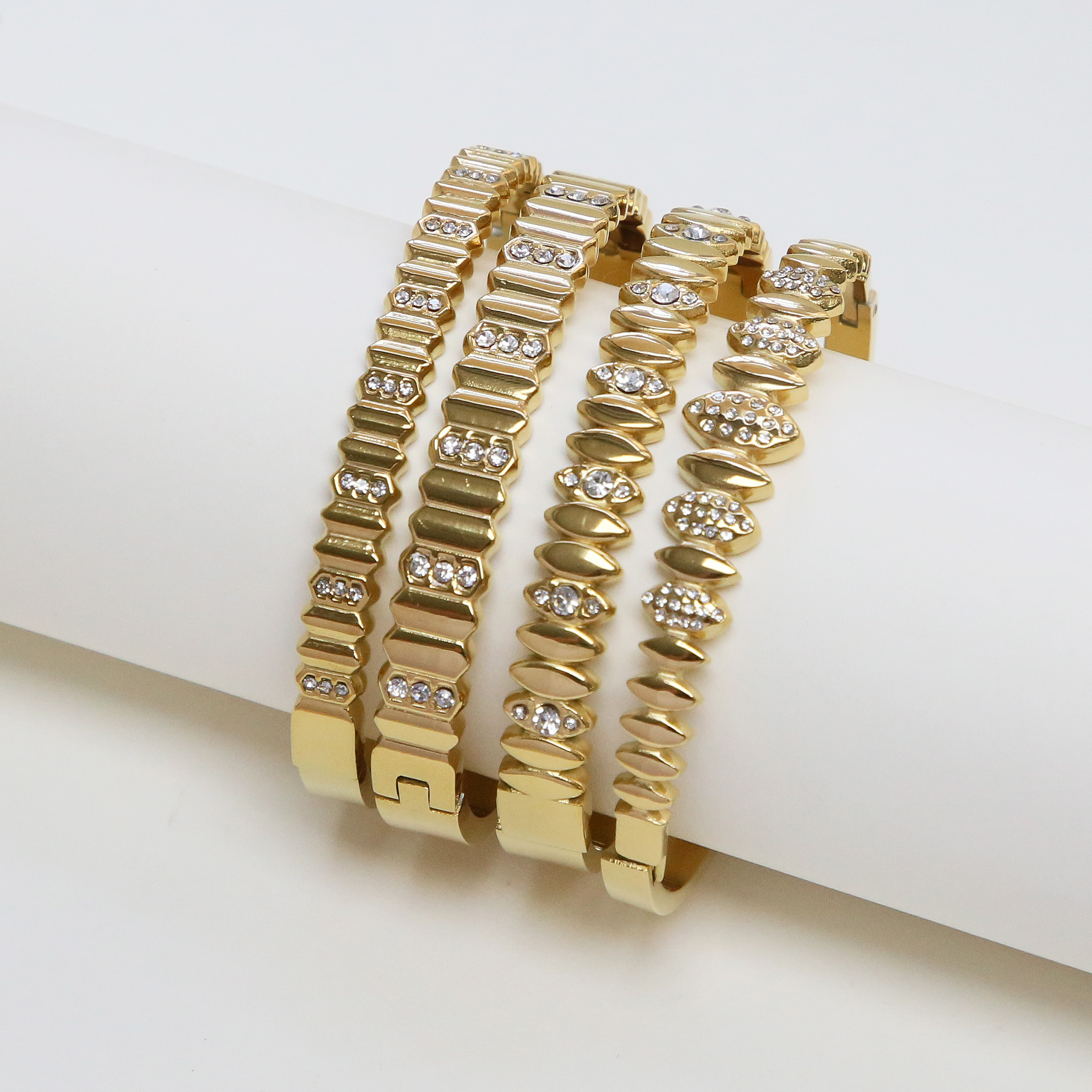 Geometric Zircon Stainless Steel Bangles