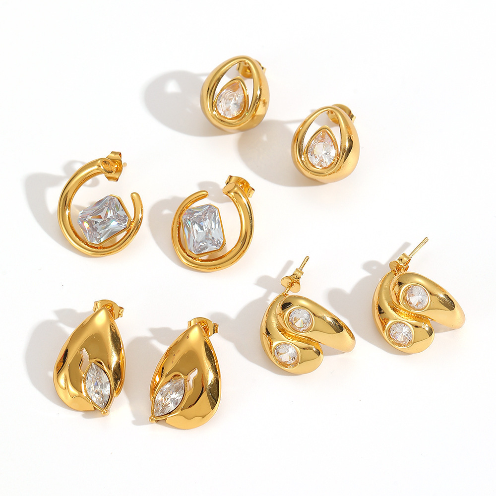 C- Shaped Zircon Stainless Steel Stud Earrings