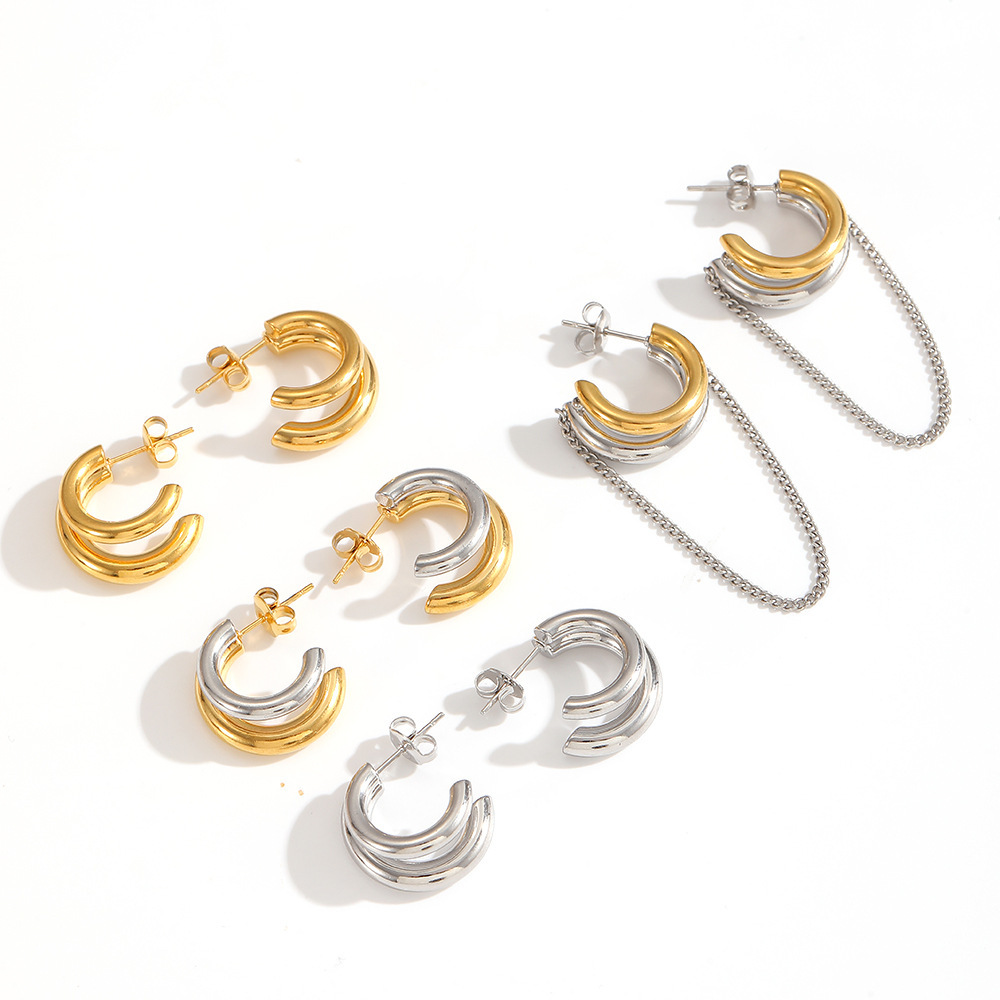 Double C-Shaped Stainless Steel Stud Earrings
