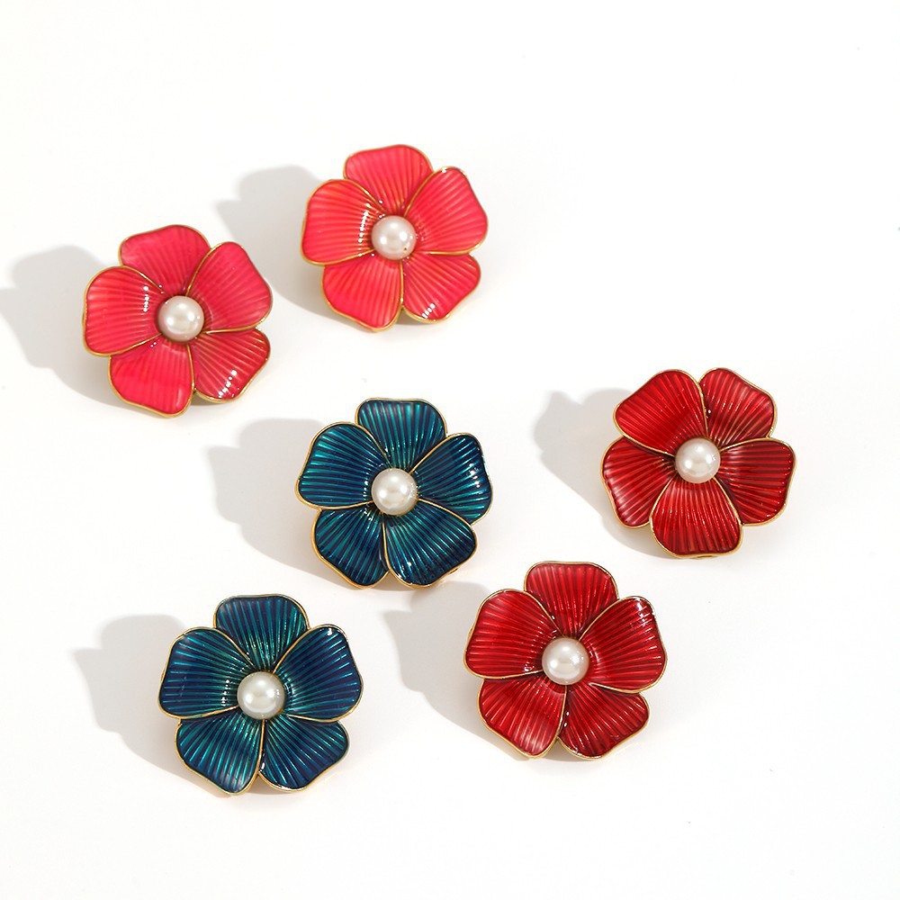 Vintage Colored Flowers Stud Earrings