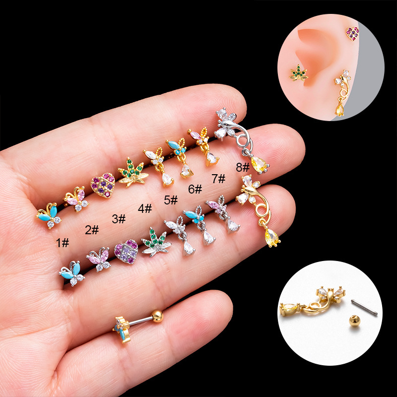 Butterfly Heart Maple Leaf Piercing Earrings