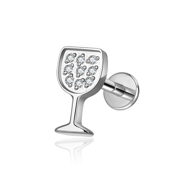 Small wine glass earrings -0211#-titanium