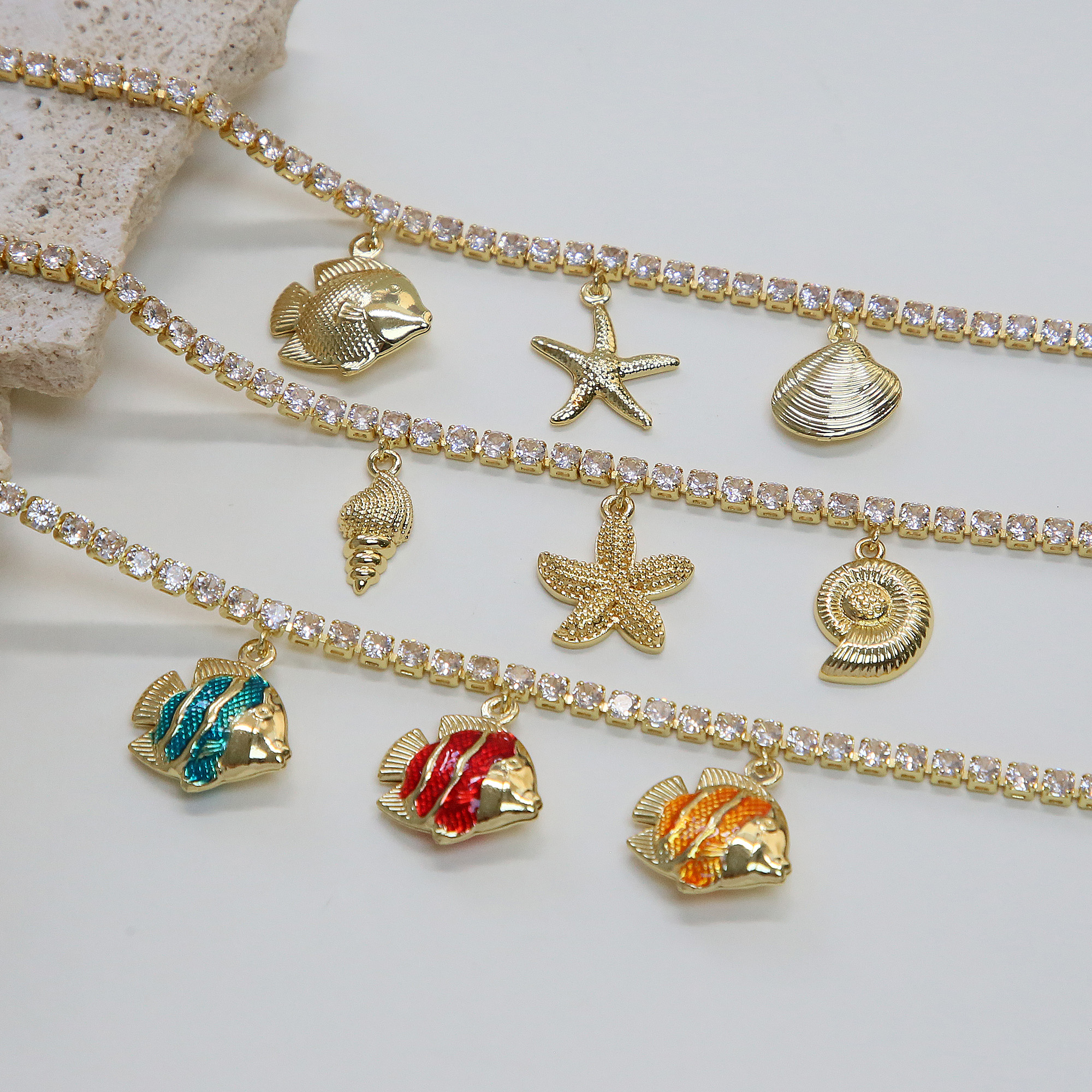 Starfish Seashell Conch Tennis Anklet