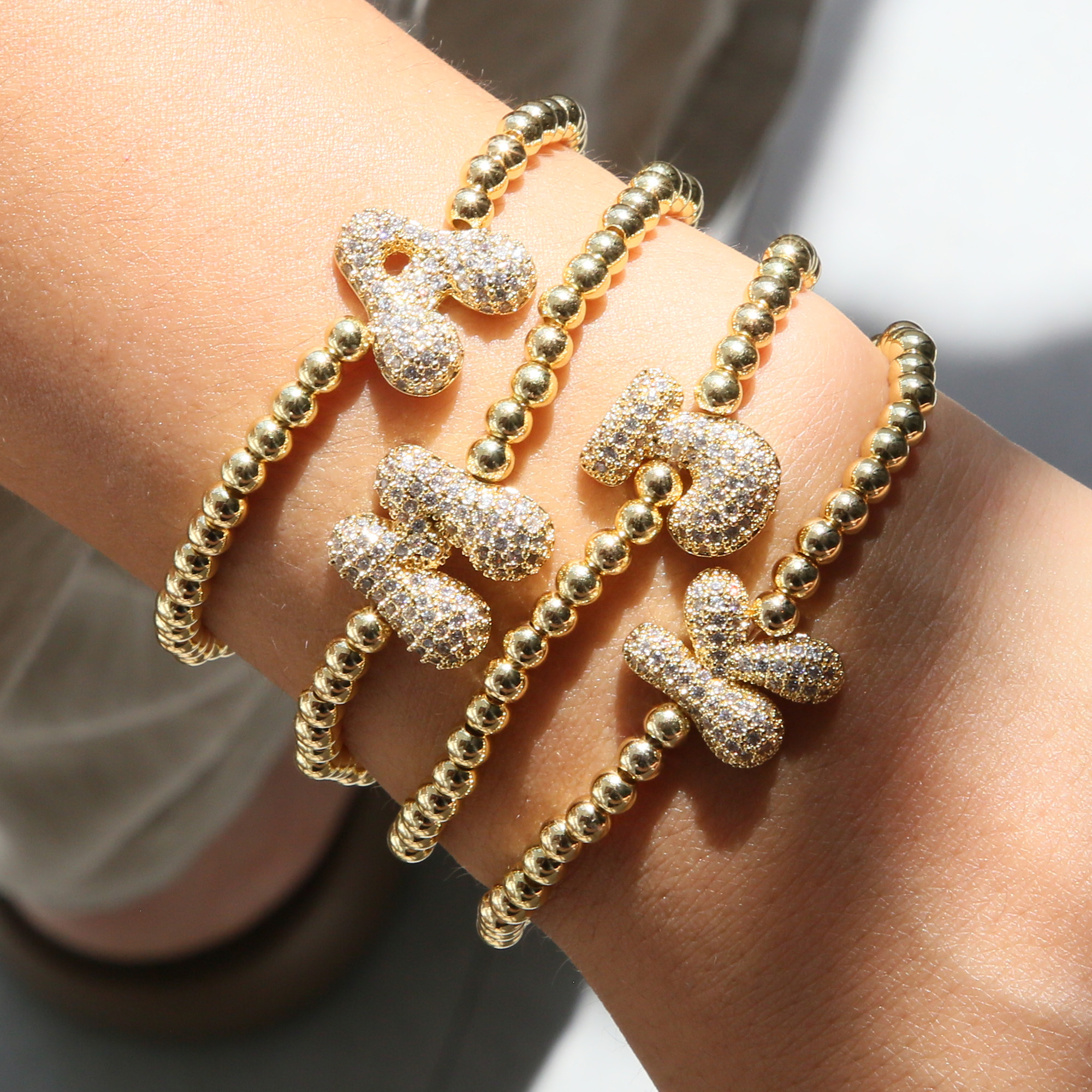 Cz Initial Bead Bracelets