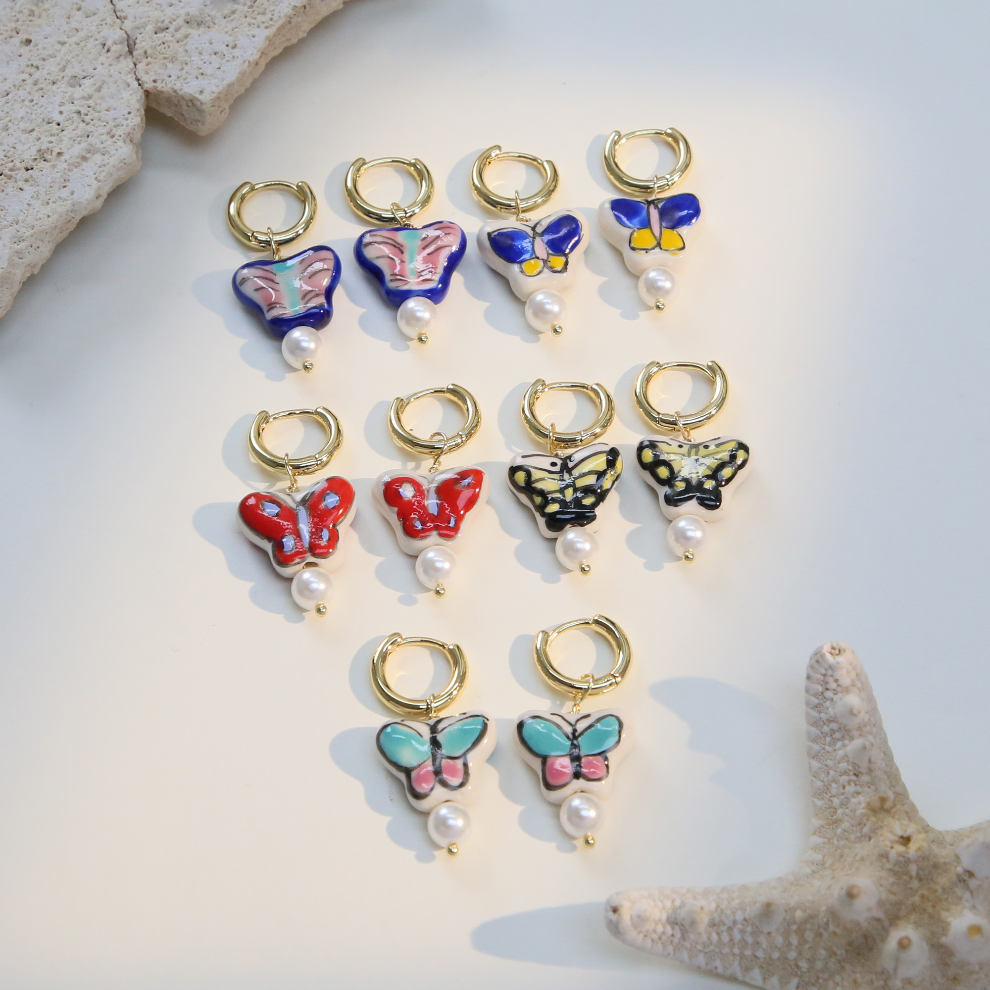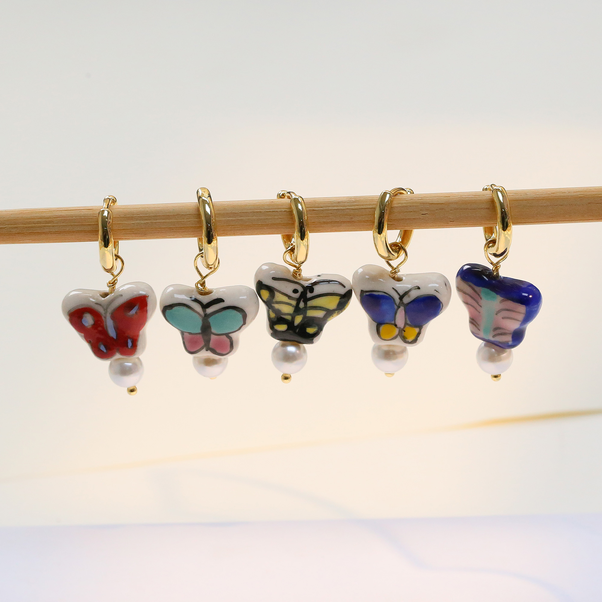 Ceramic Butterfly Drop Earrings