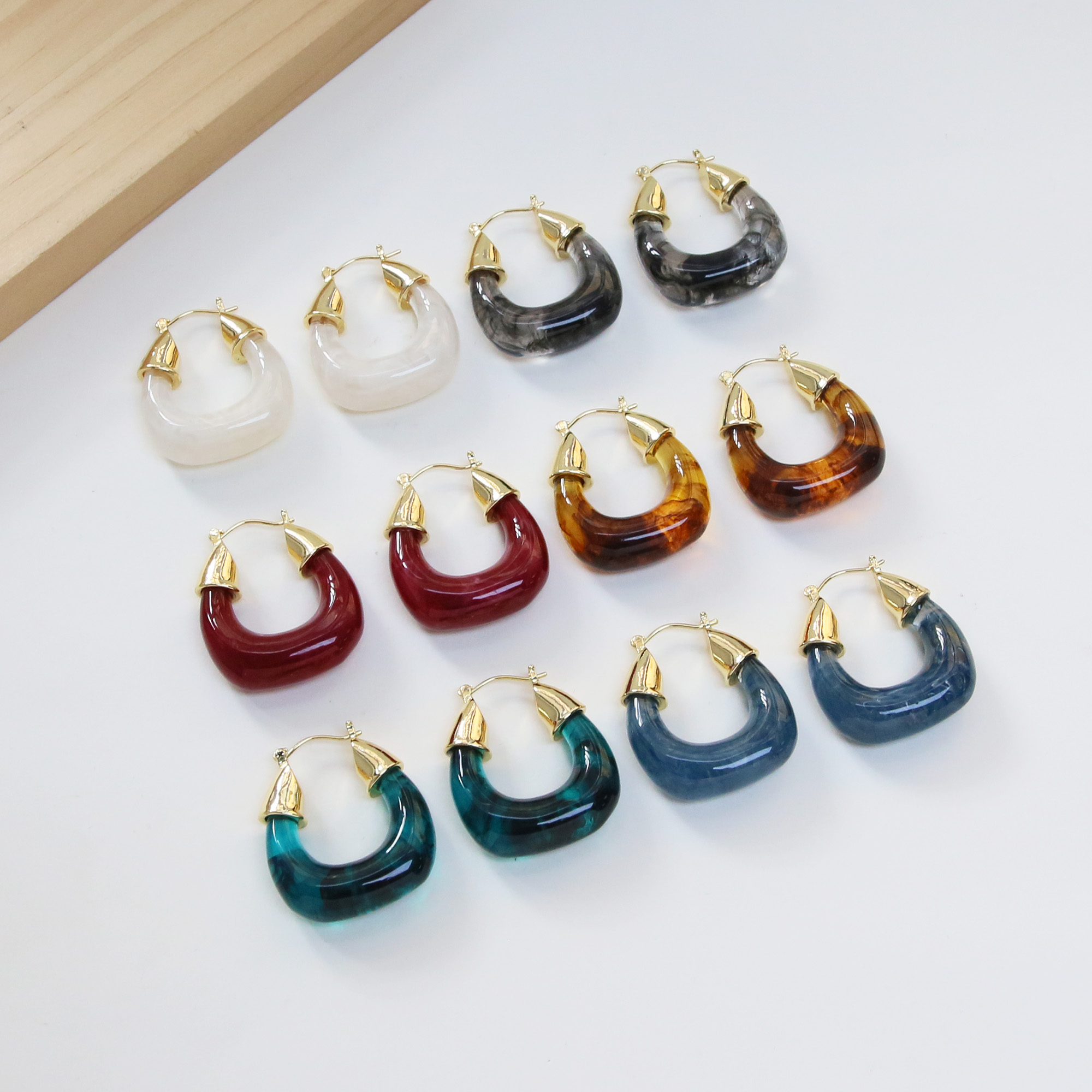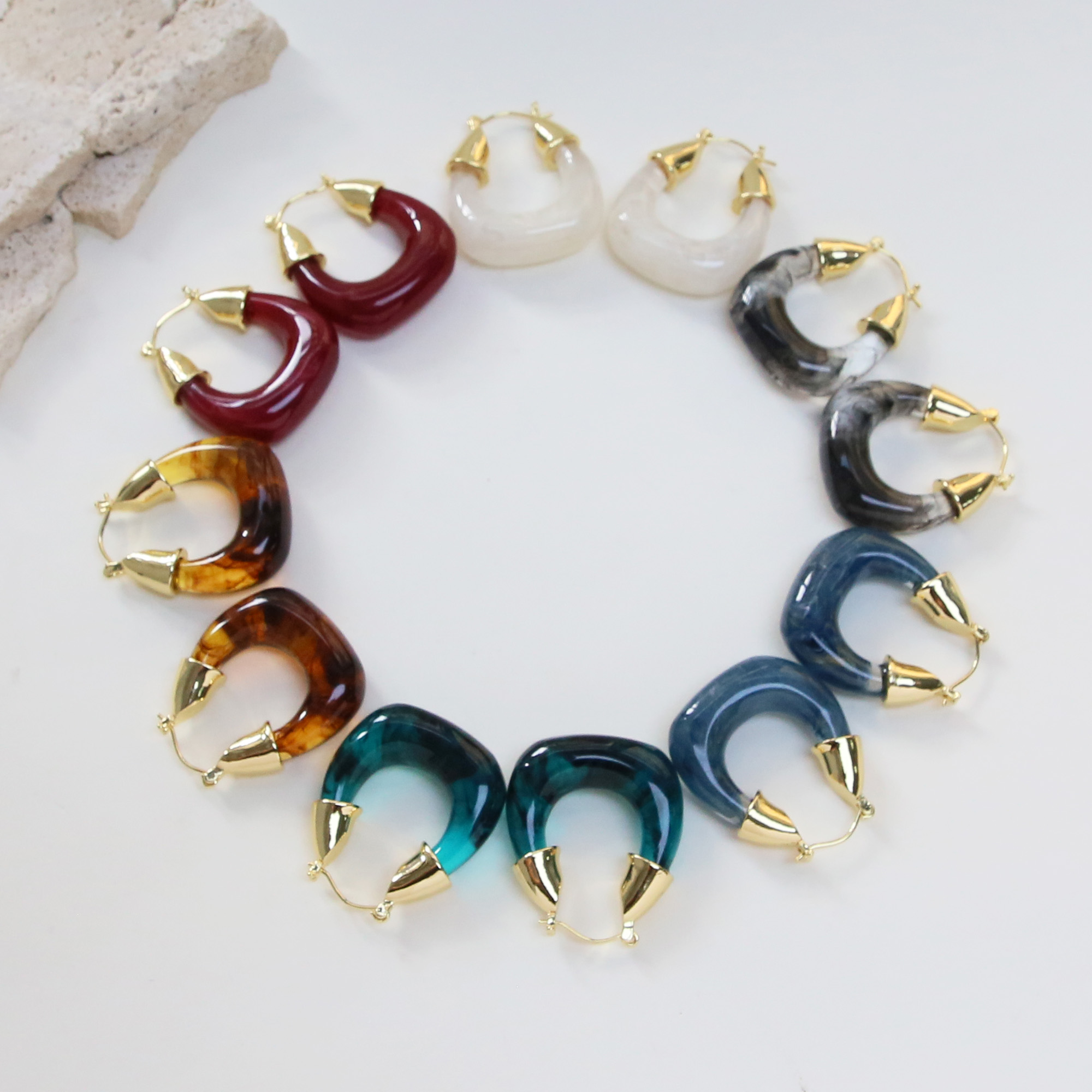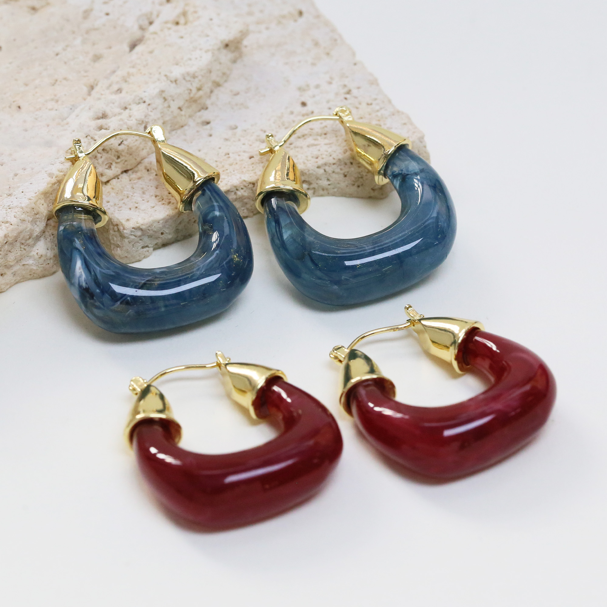 Gold Plated Resin Hoop Earrings