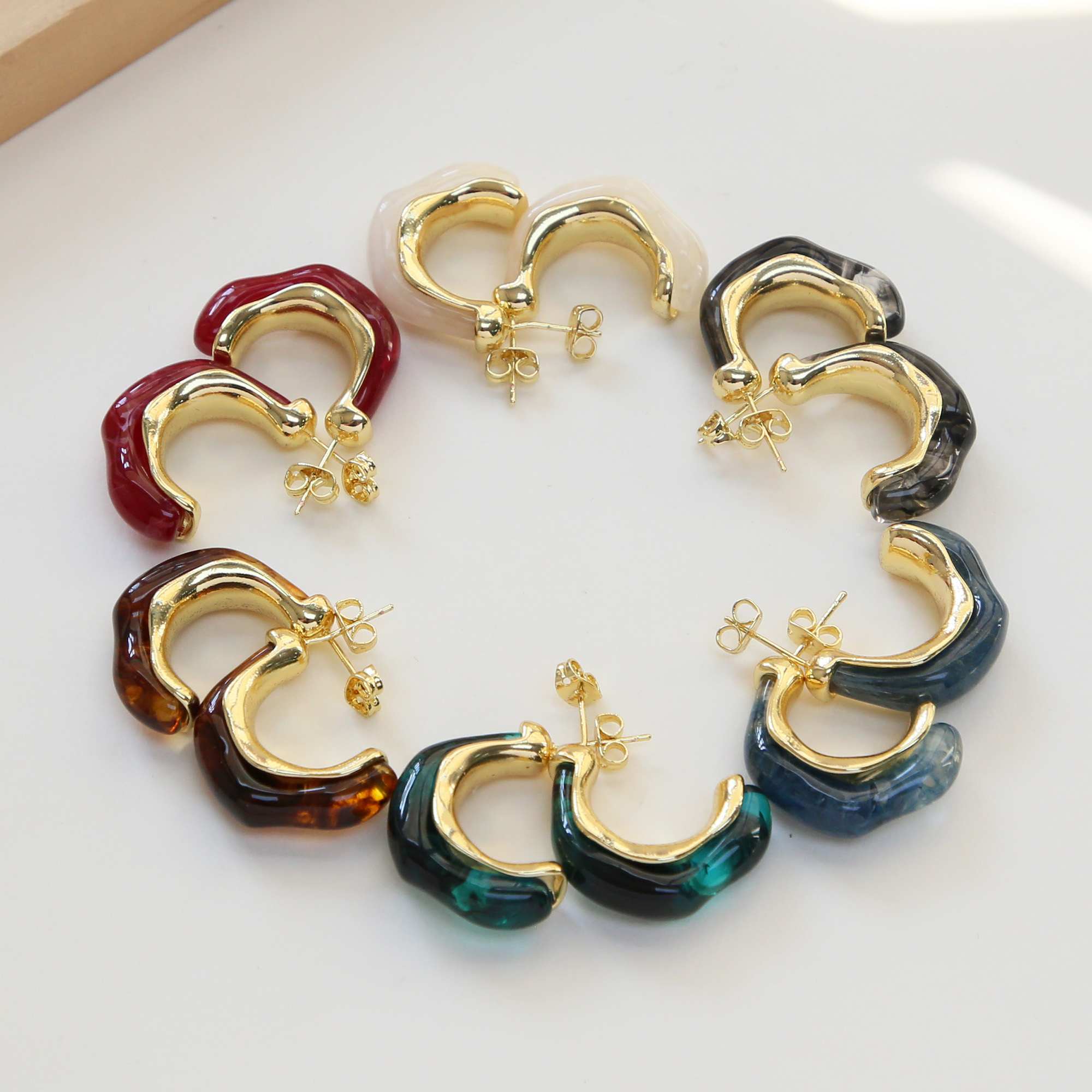 Gold Plated Resin Studs Earrings
