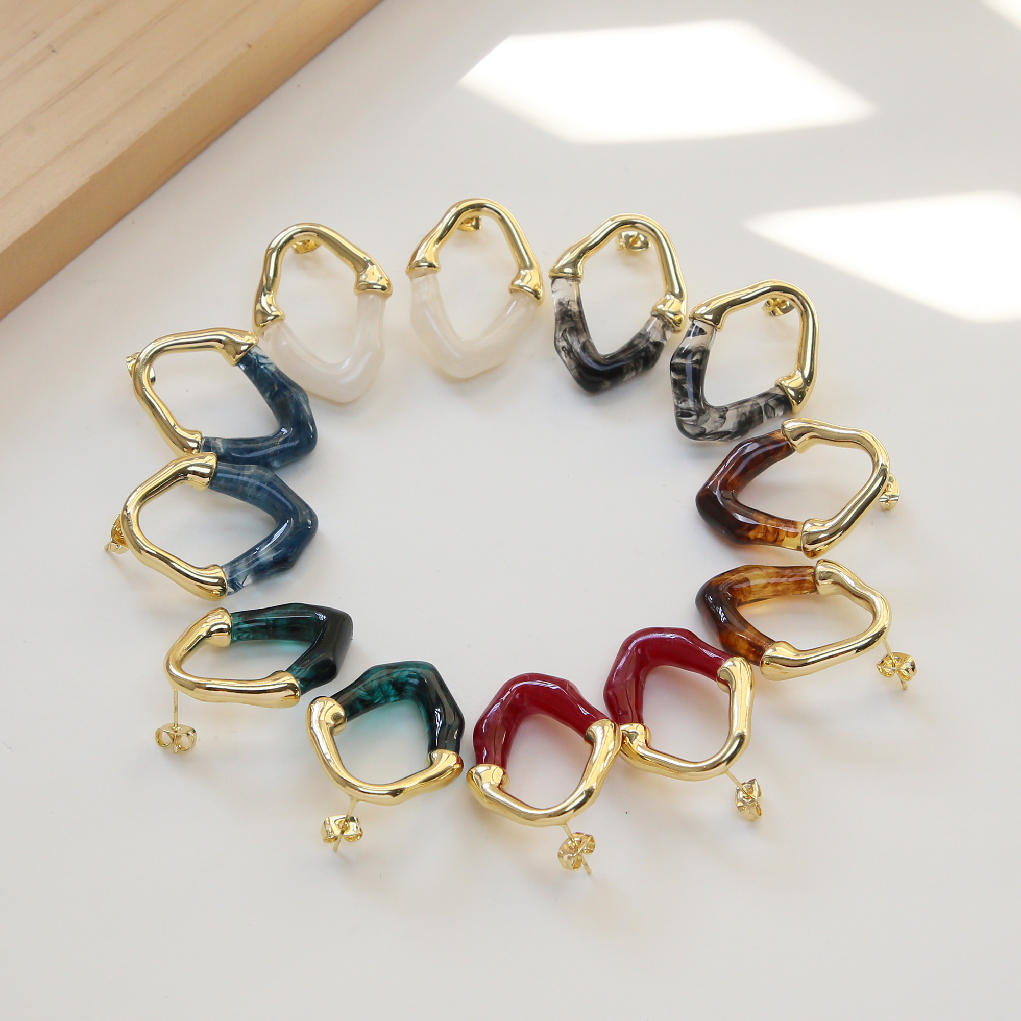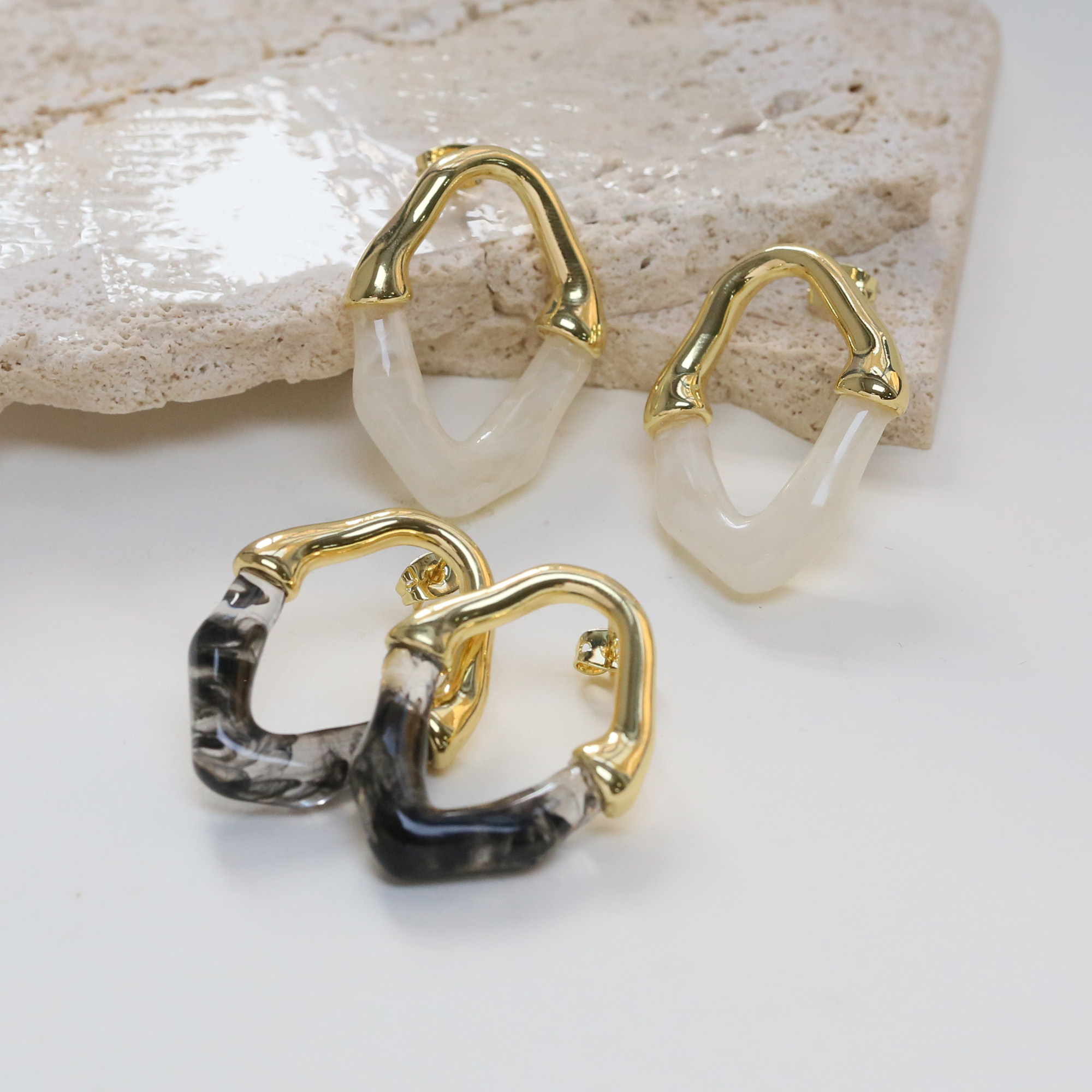 Gold Plated Resin Studs Earrings