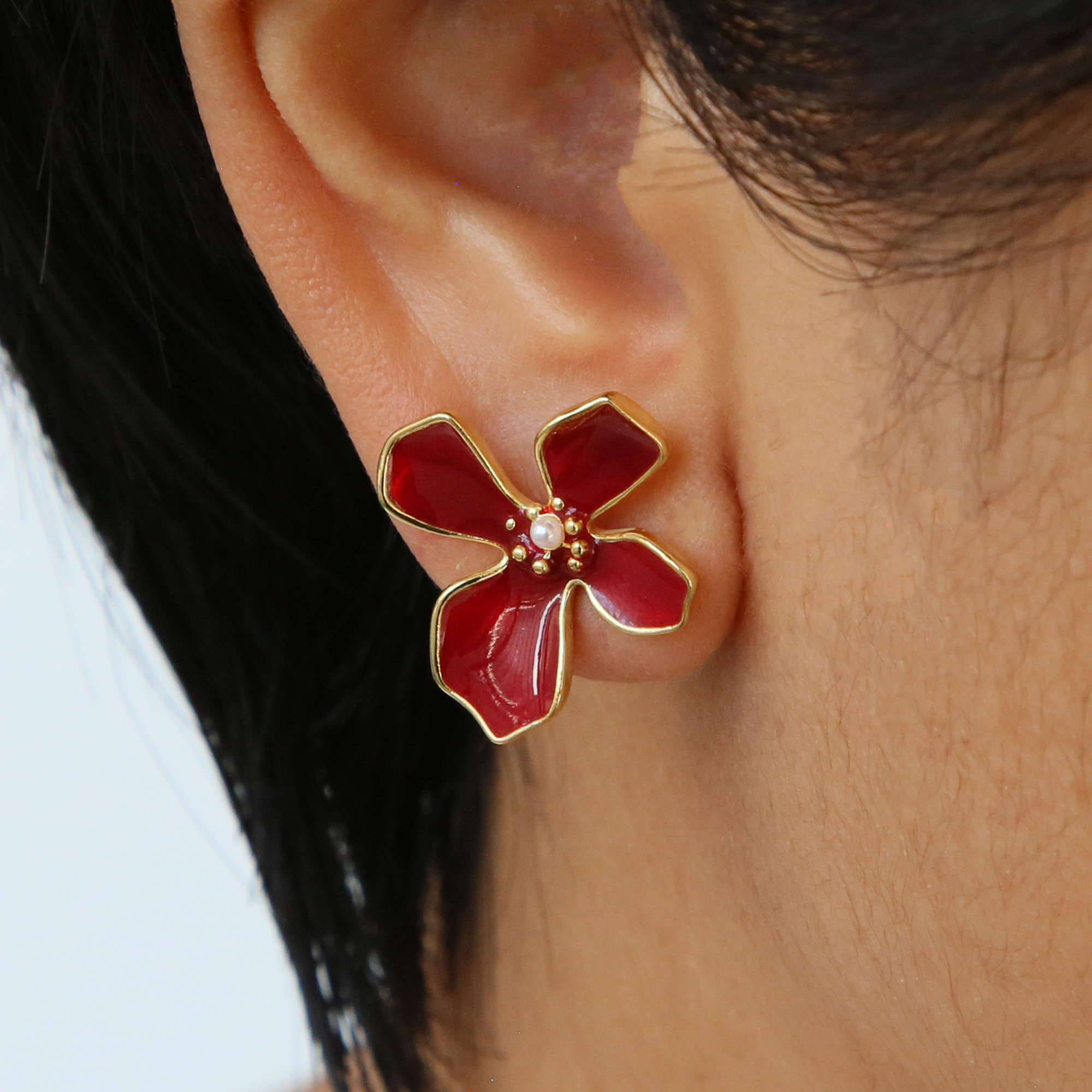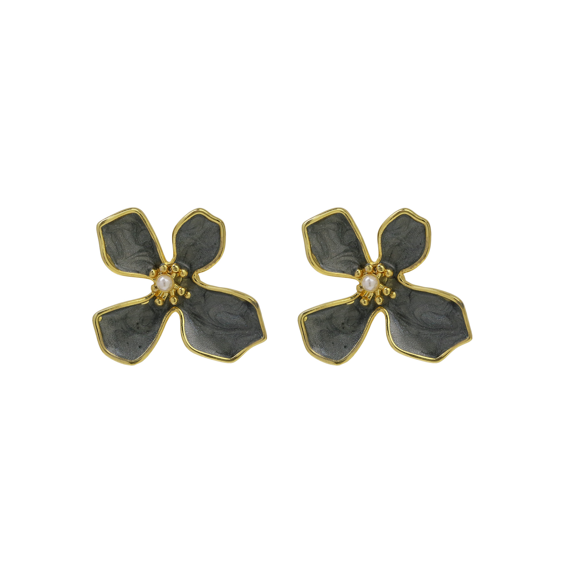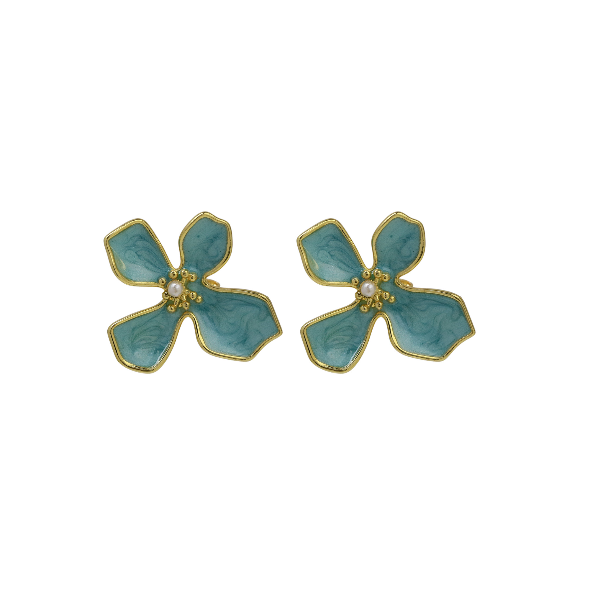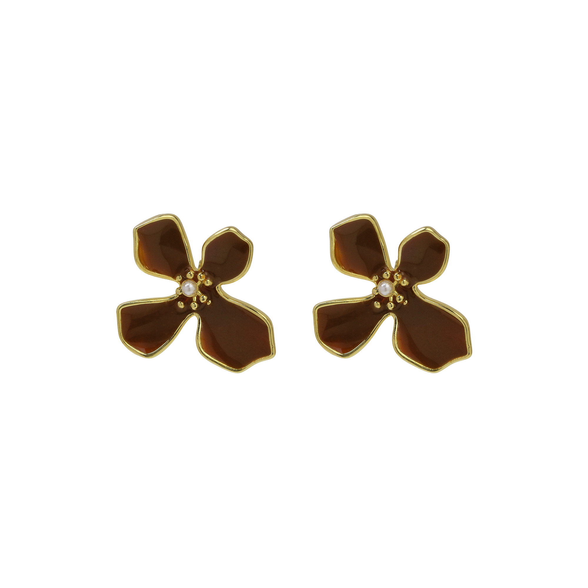 Gold Plated Leaf Flower Studs Earrings
