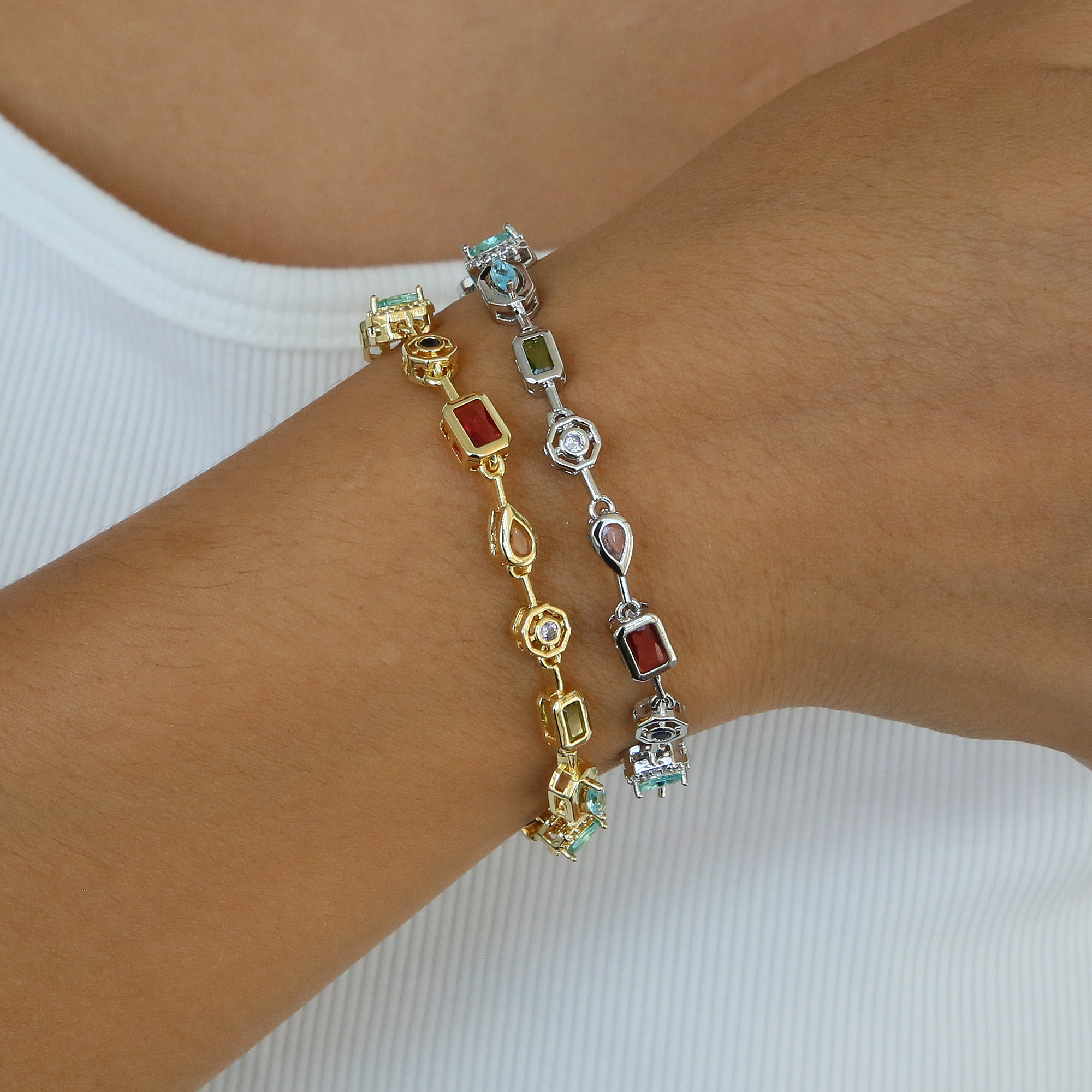 Gold Plated Multi-Color Zircon Bracelets