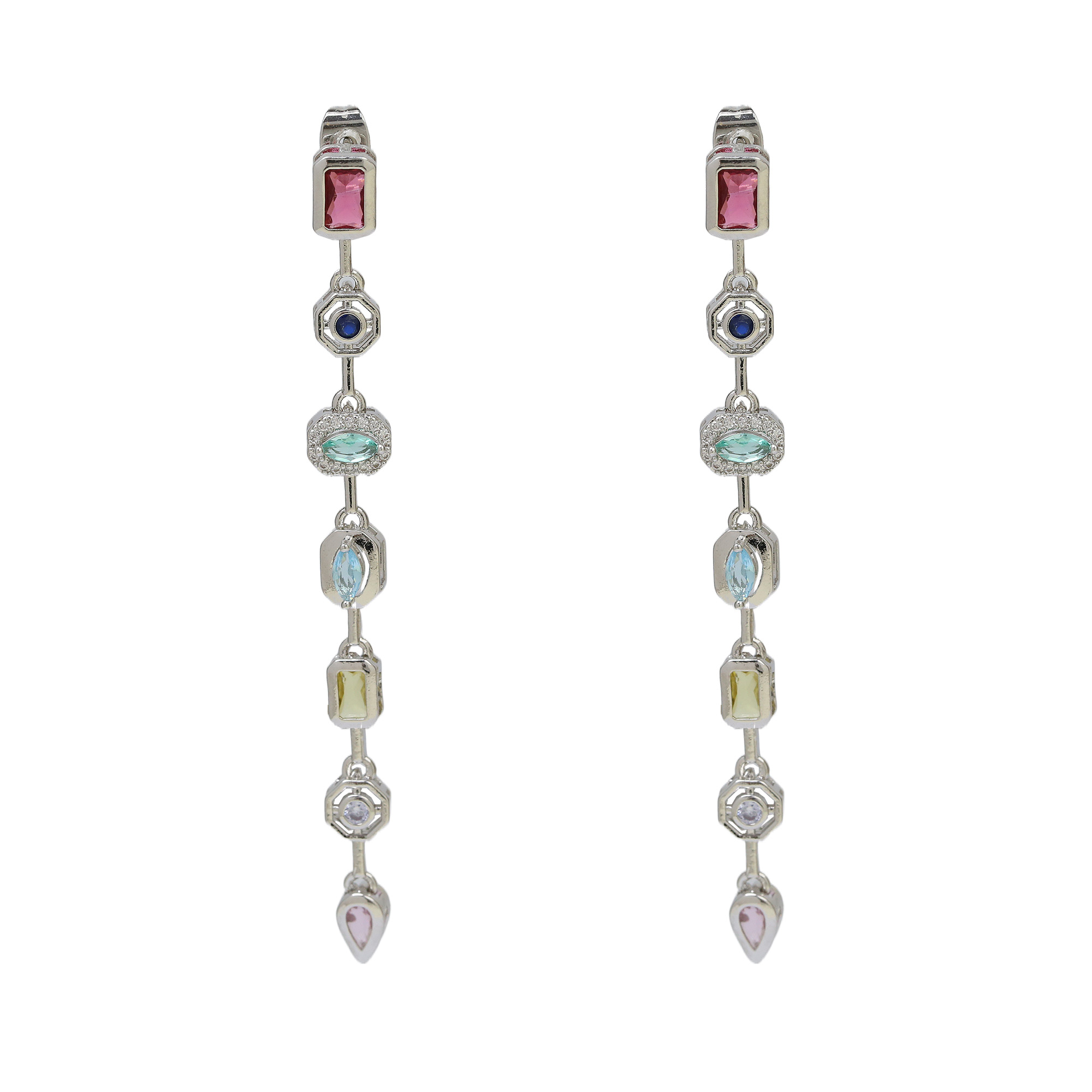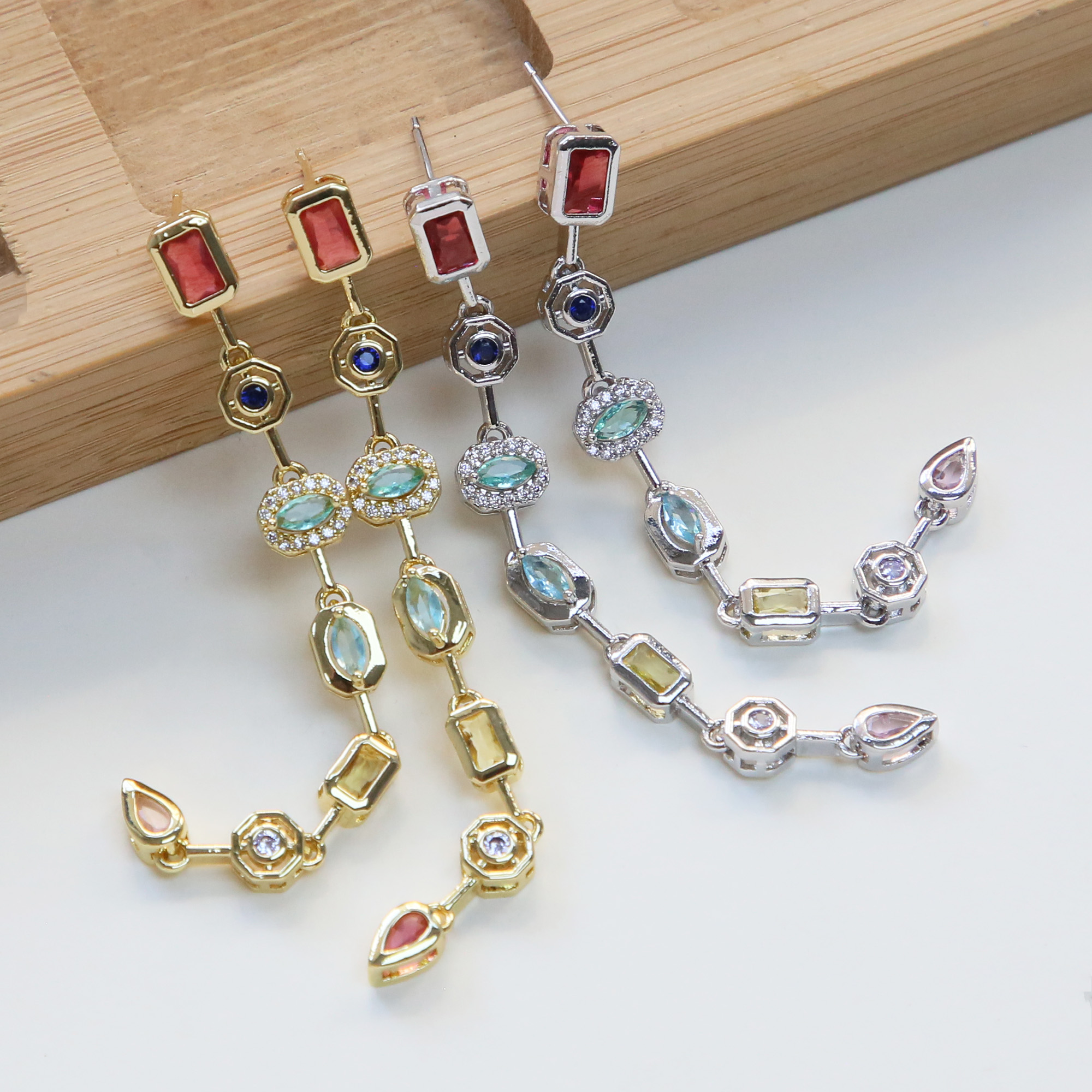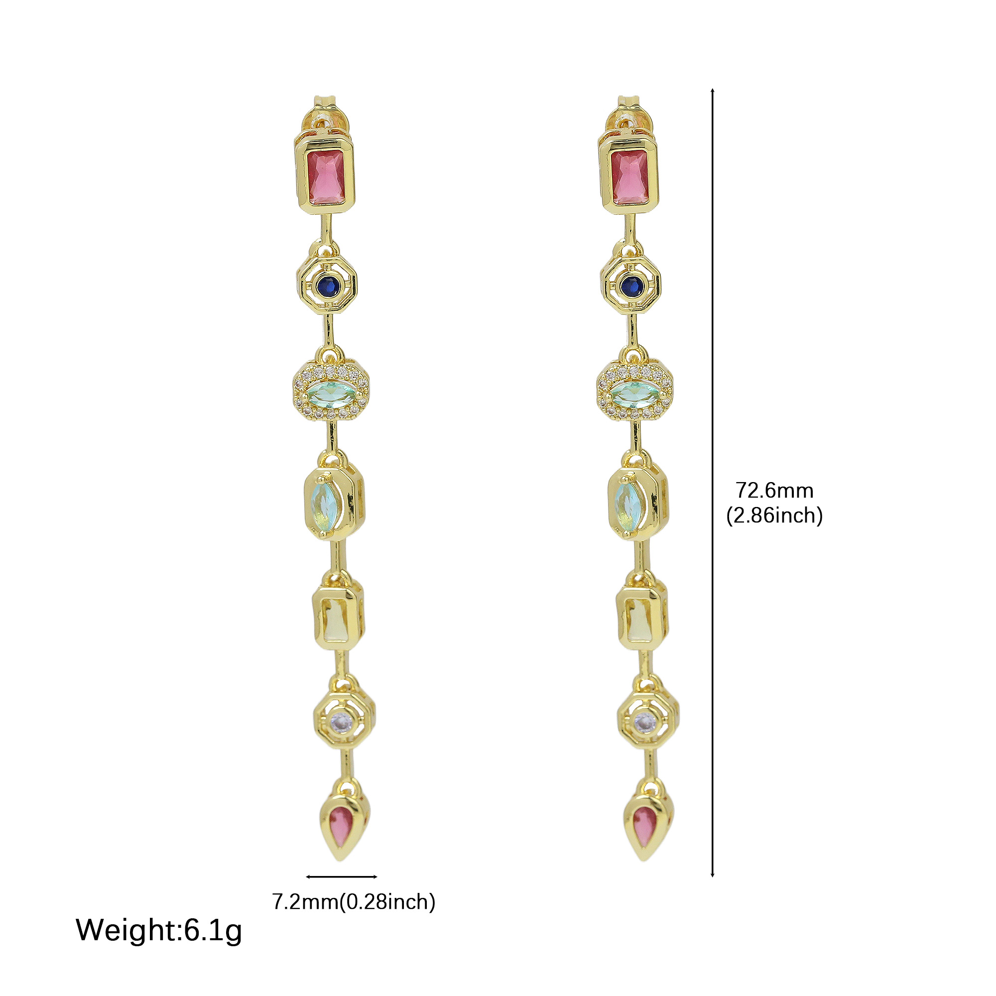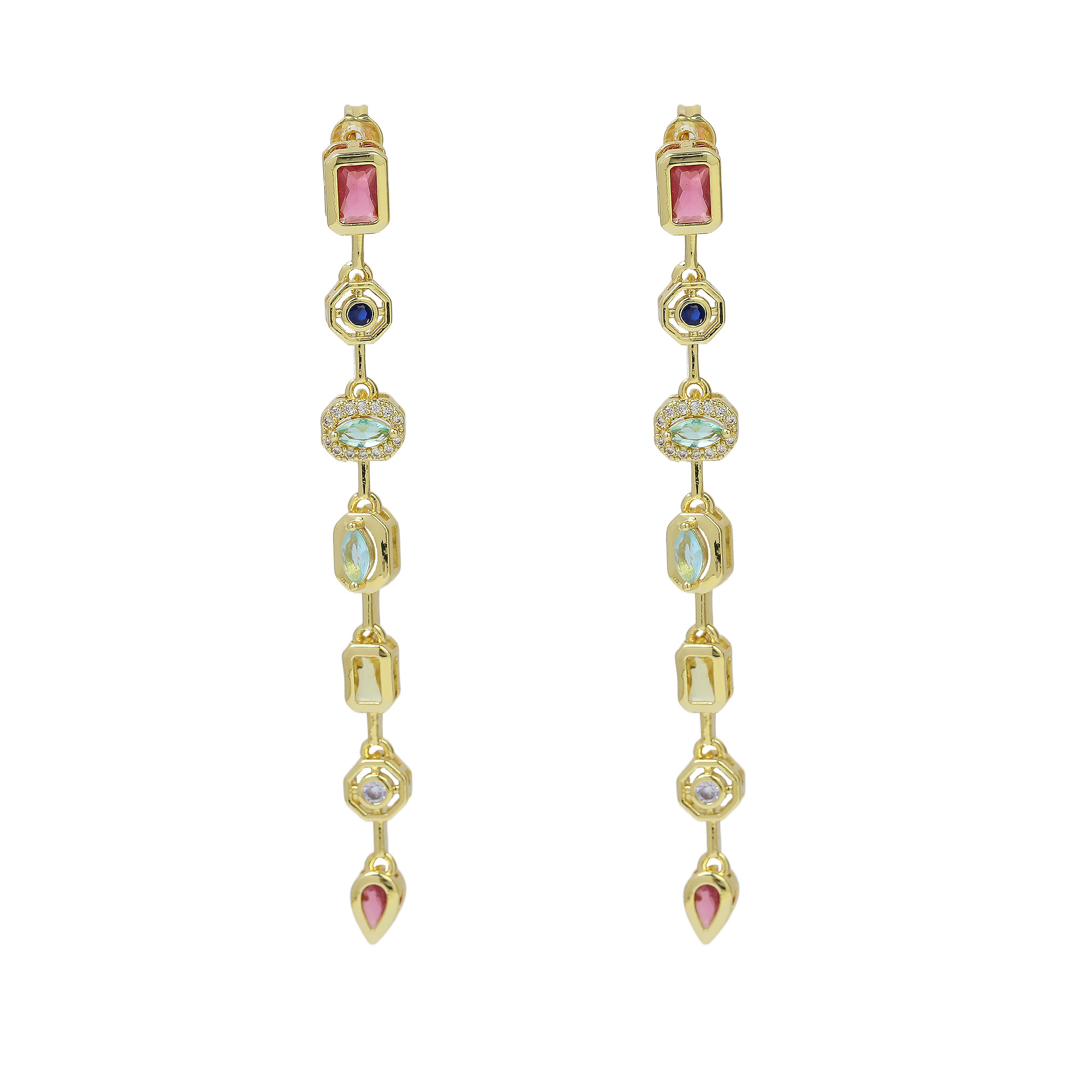 Gold Plated Multi-Color Zircon Studs Earrings