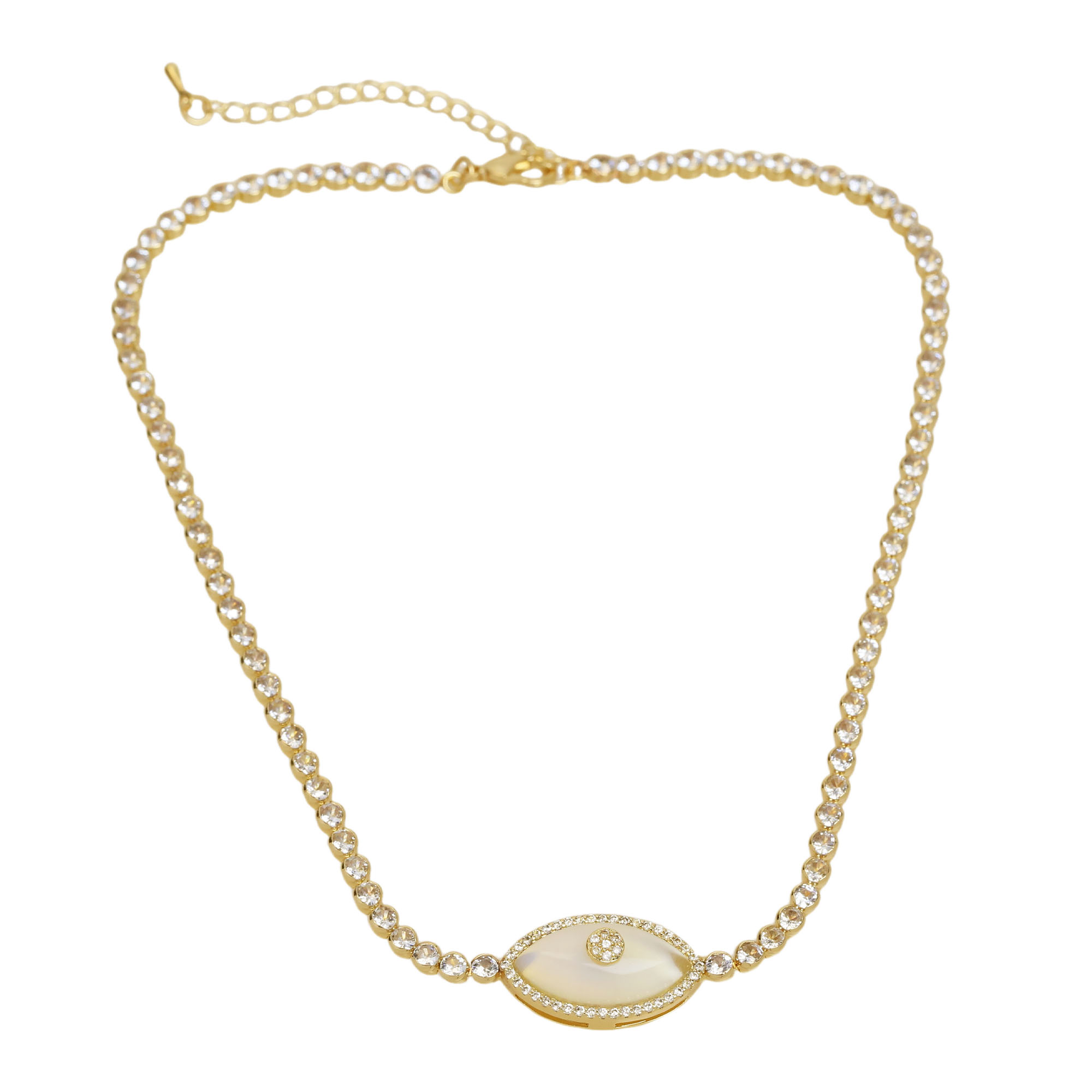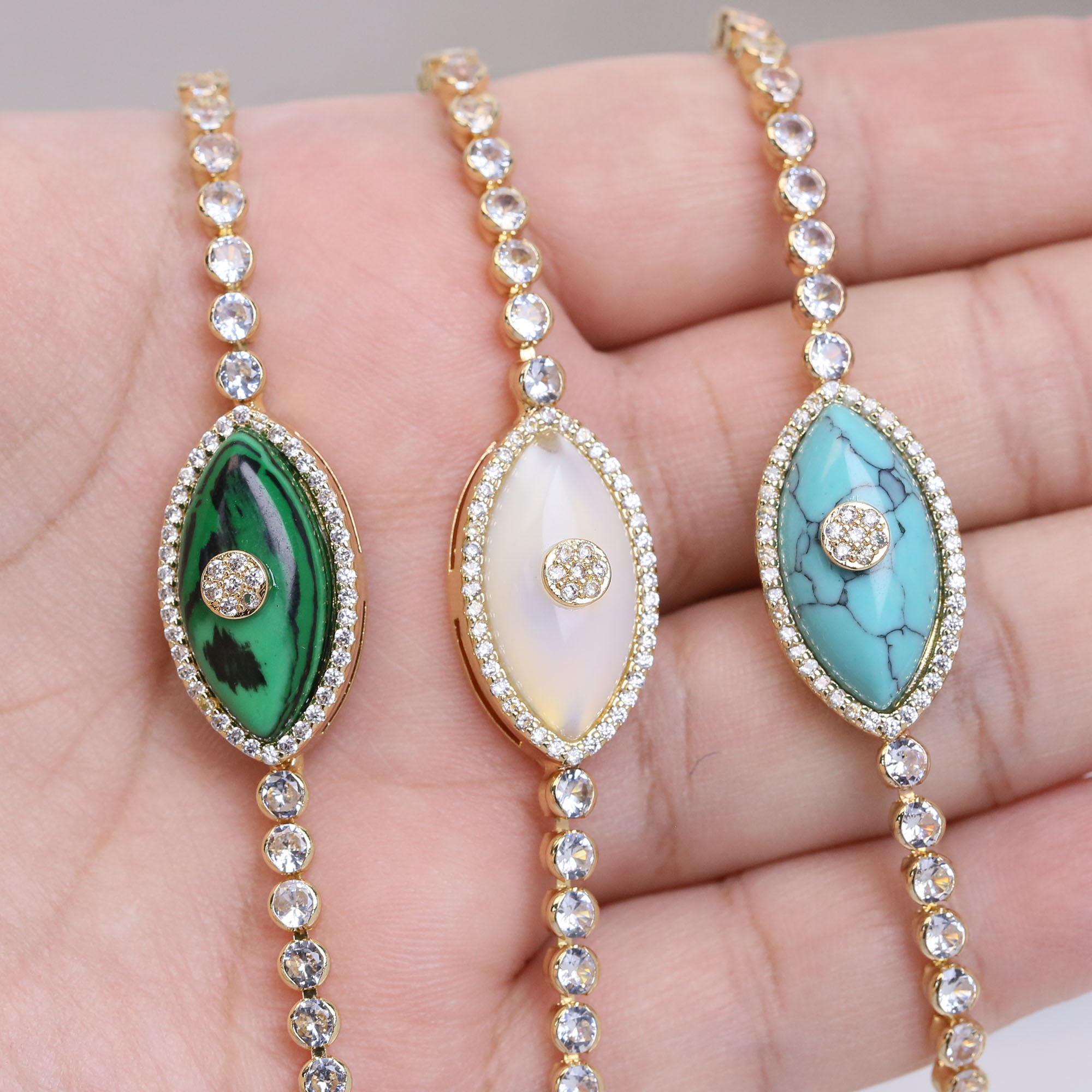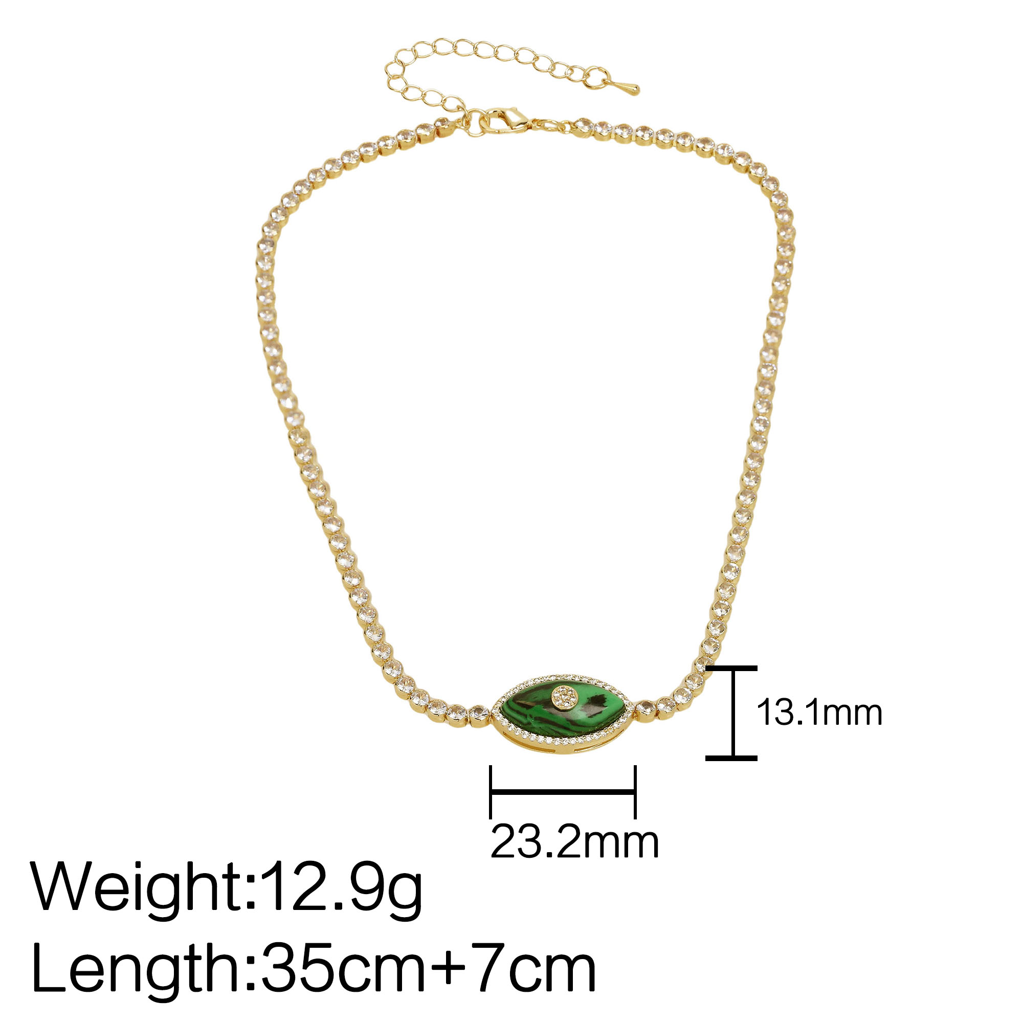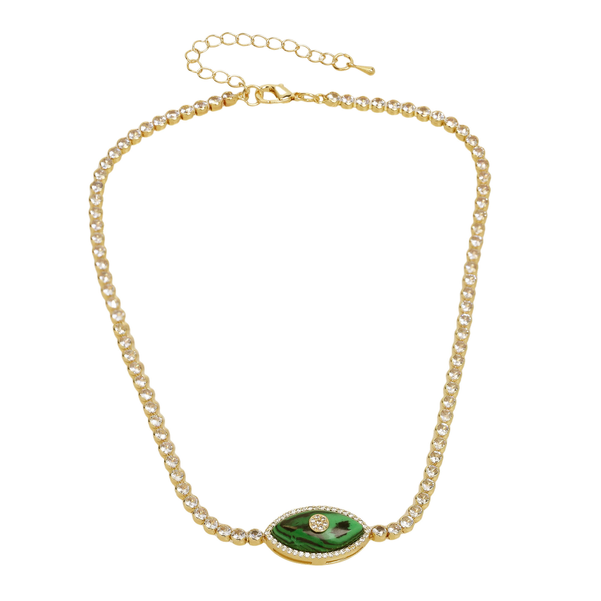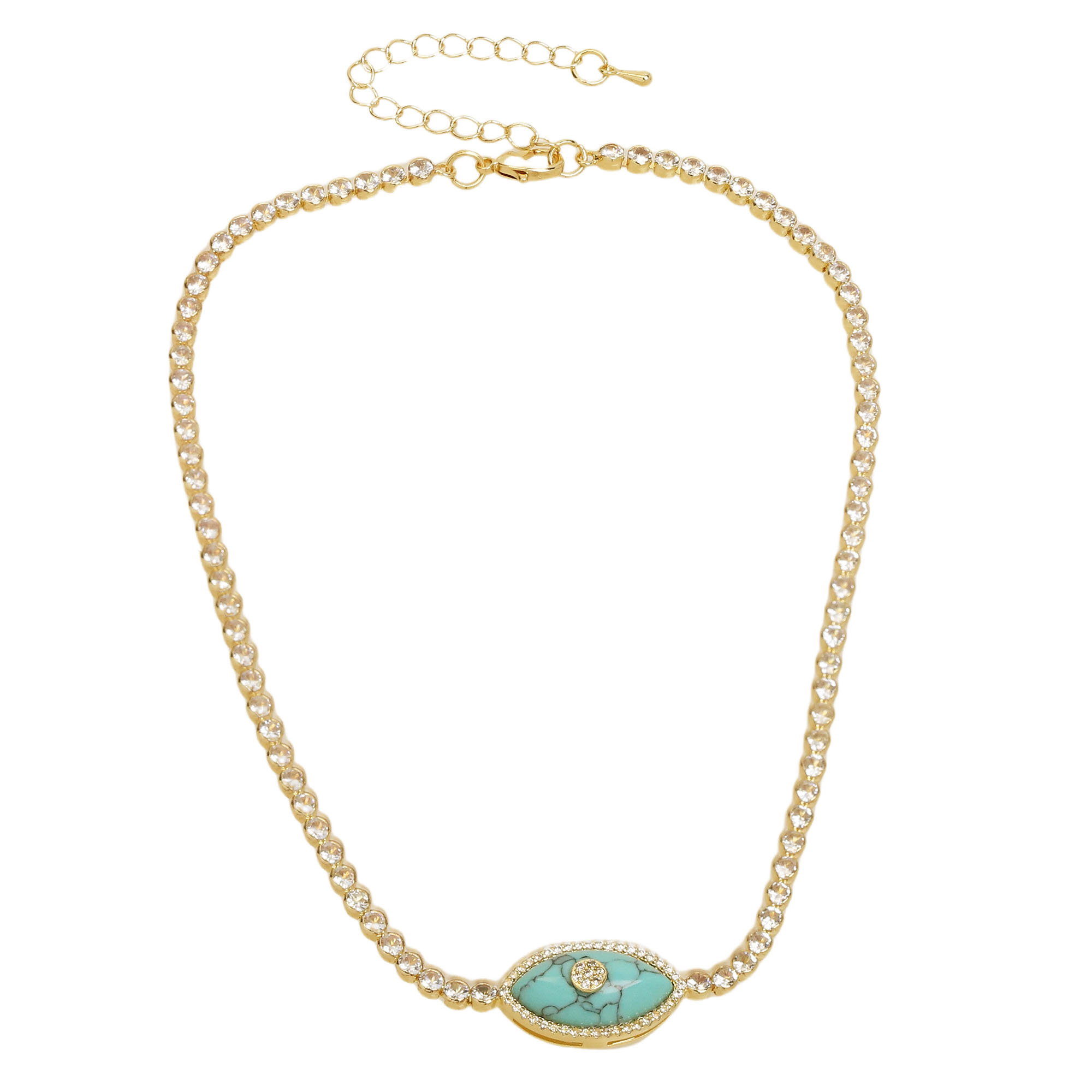 Green/White/Turquoise Eye Tennis Chain Necklace