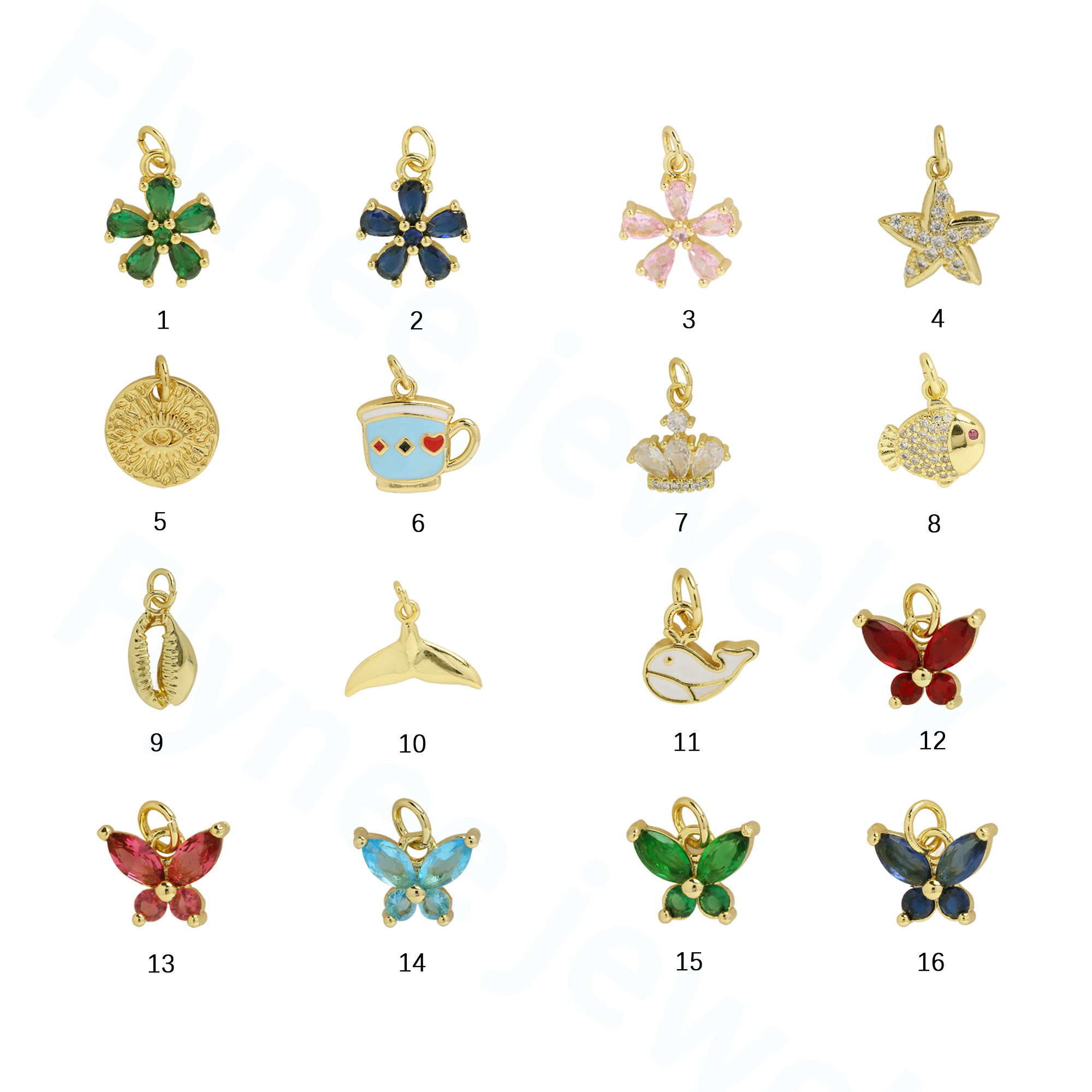 Ocean Fish Butterfly Plant Flower Enamel Cz Charms