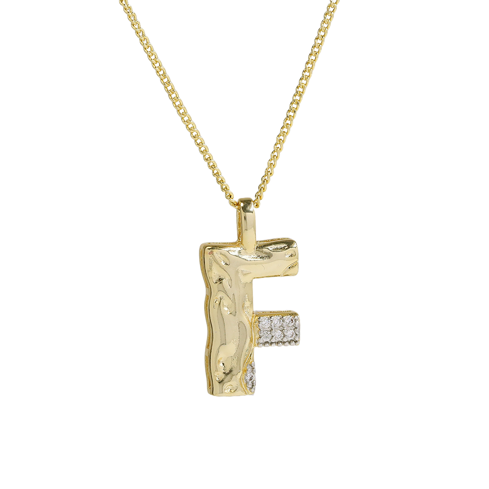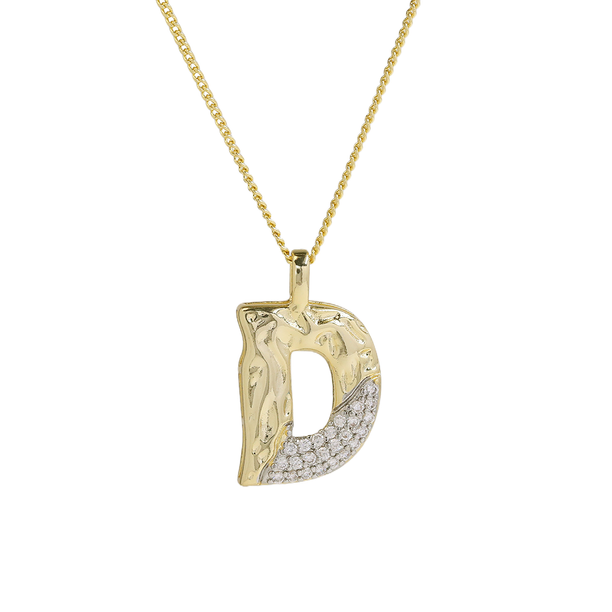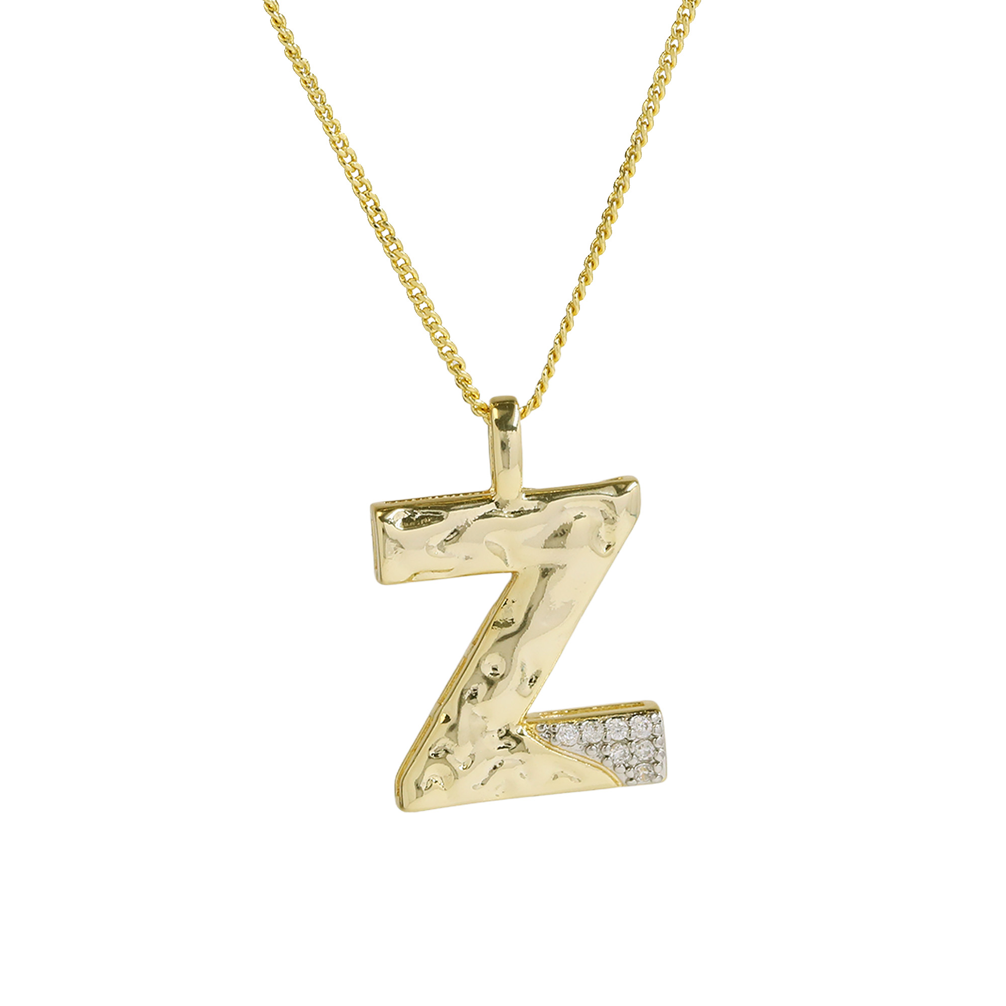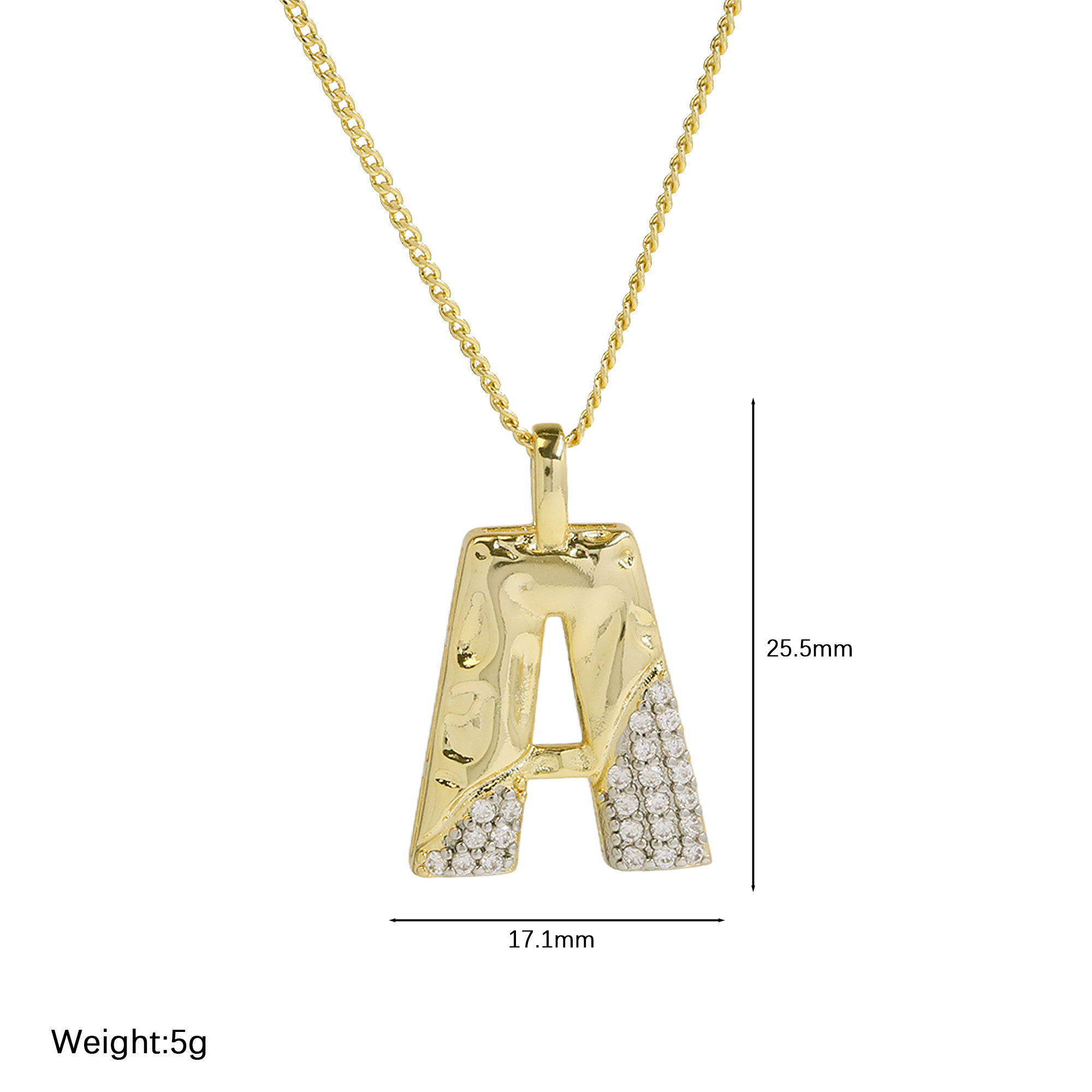 CZ Two-color Plating Alphabet & Number Pendant Necklaces