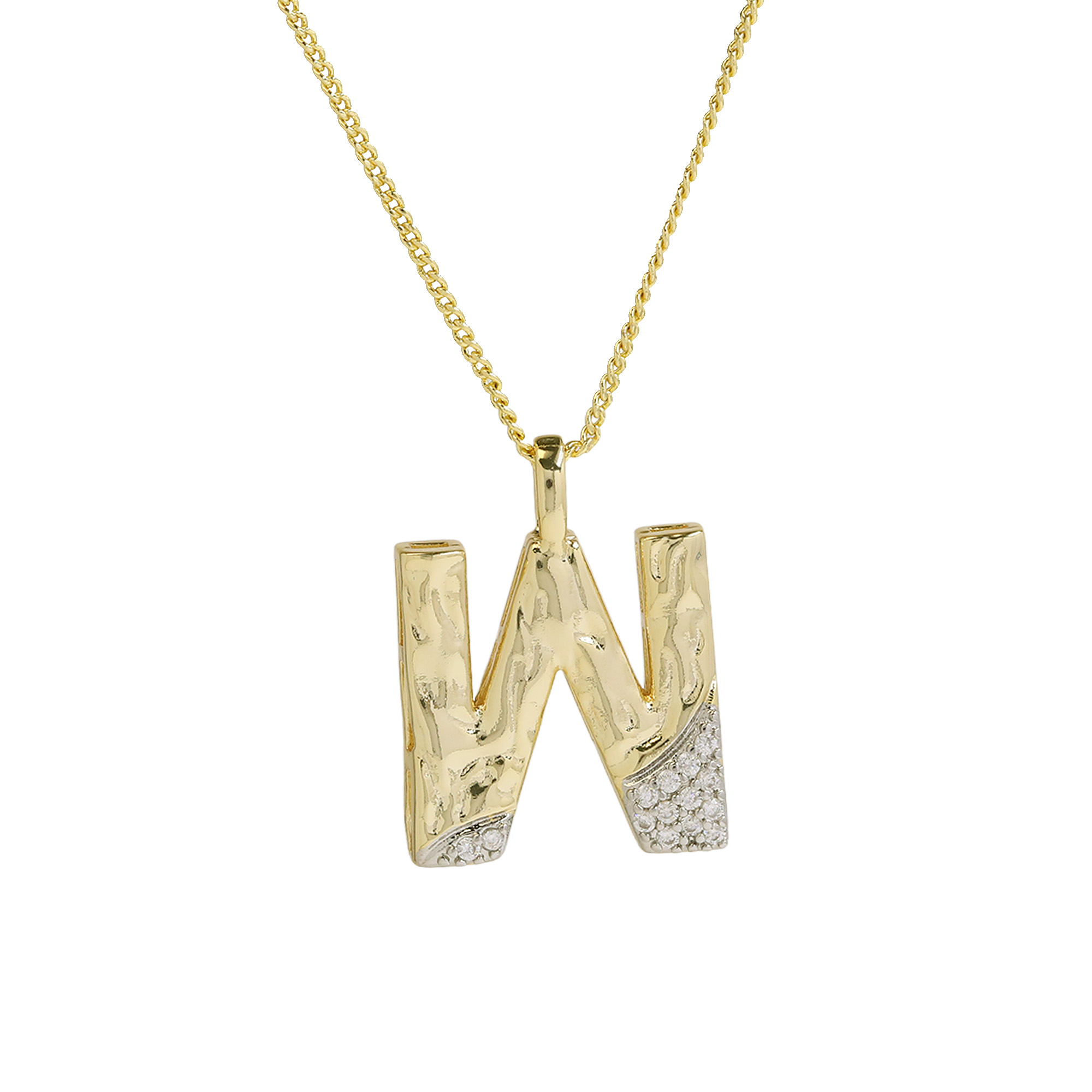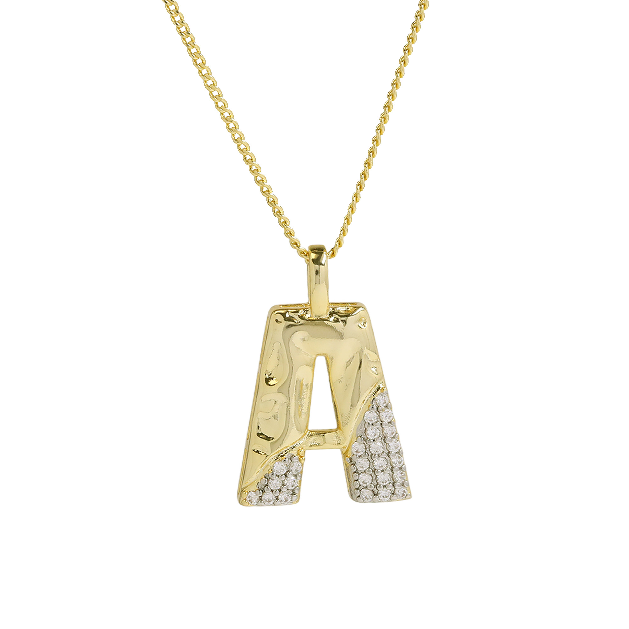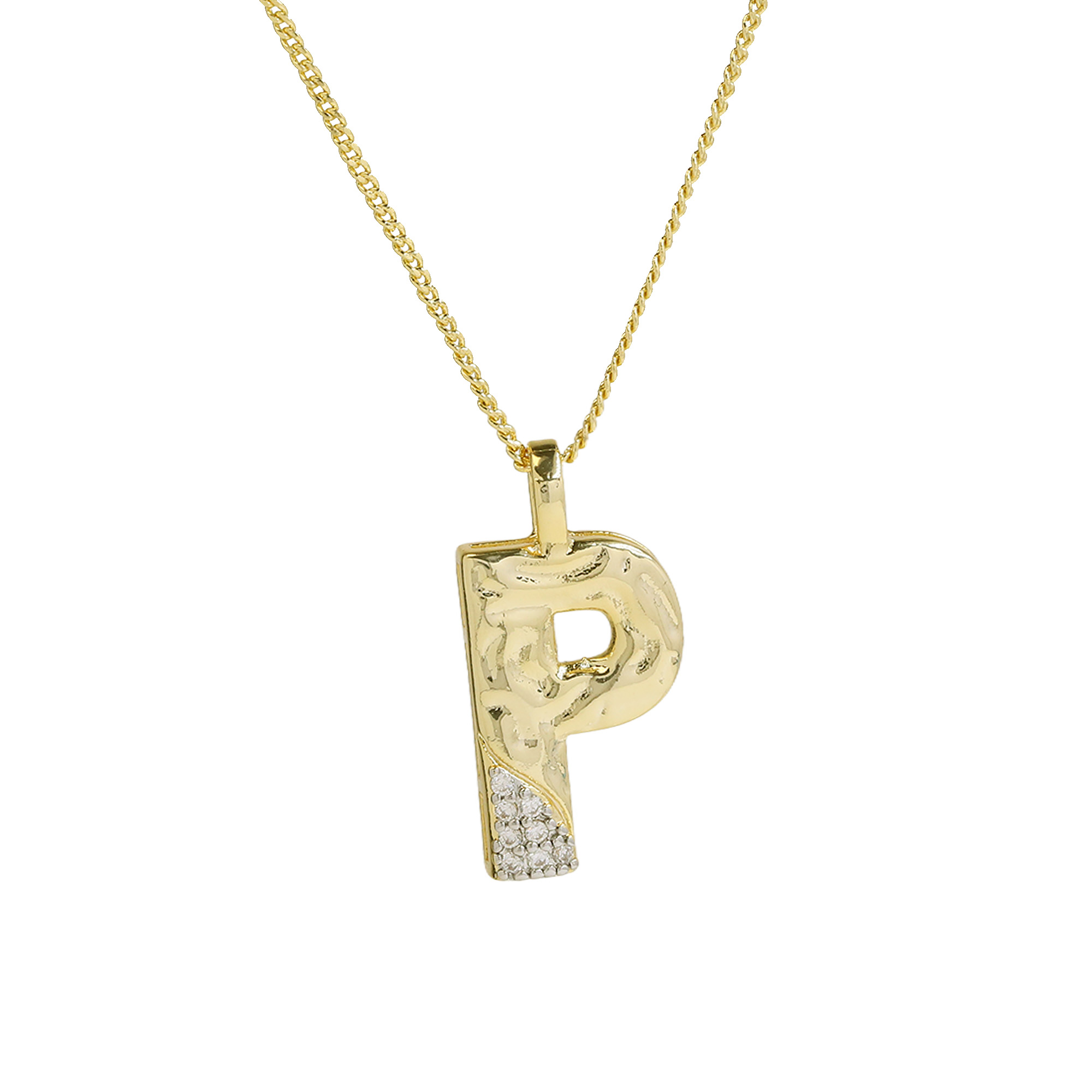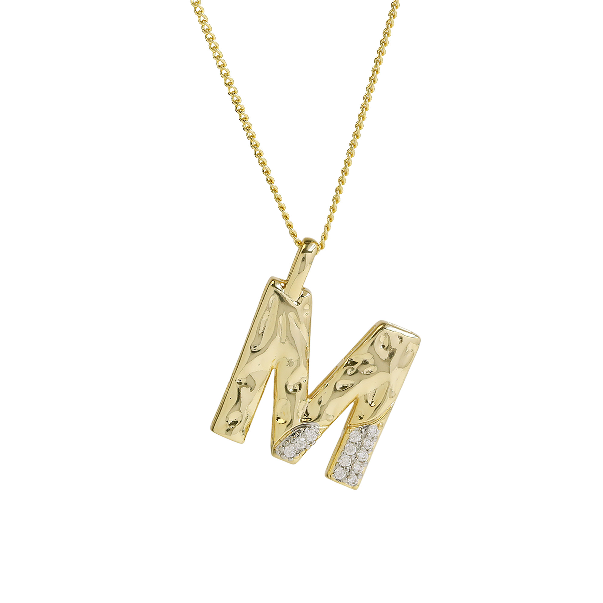 CZ Two-color Plating Alphabet & Number Pendant Necklaces