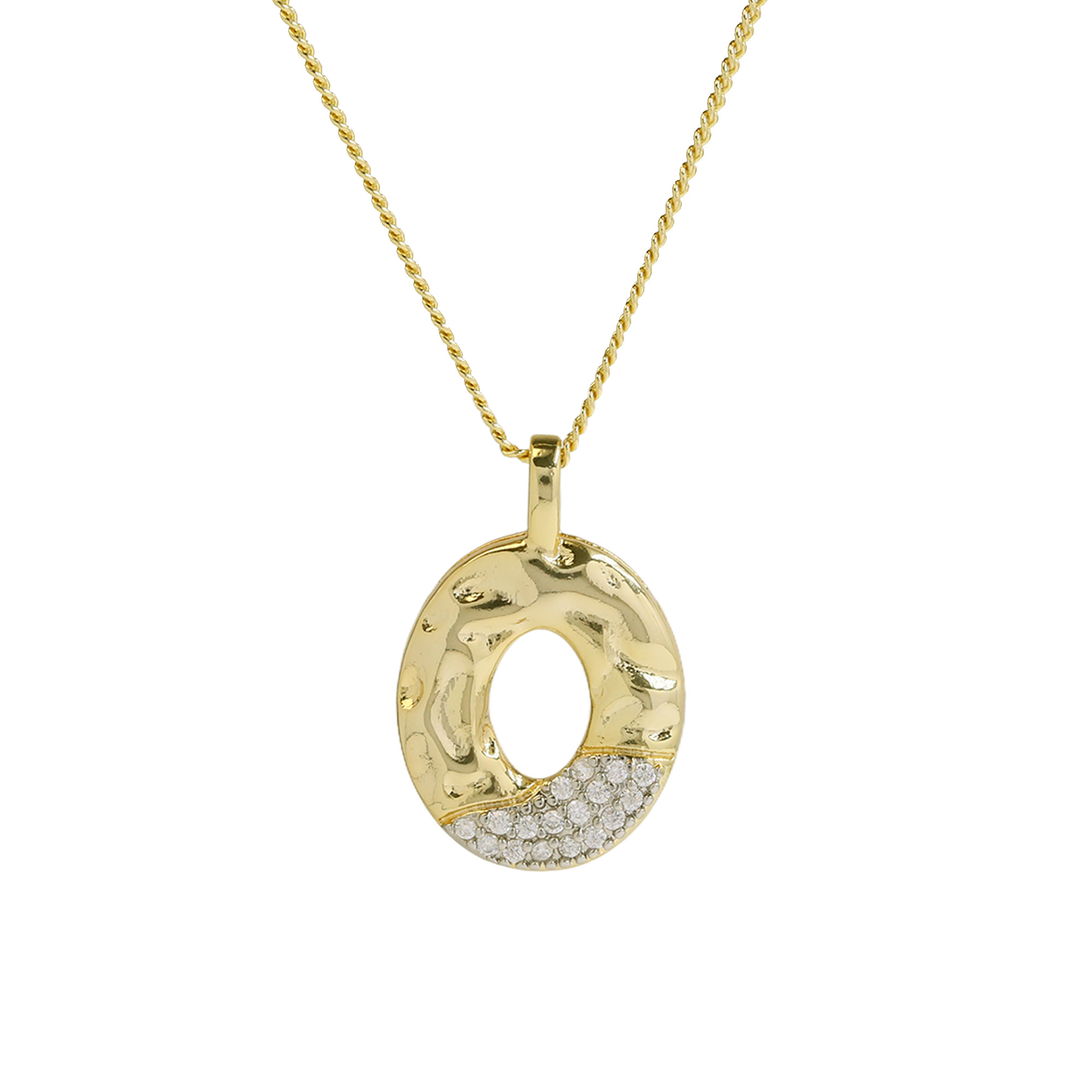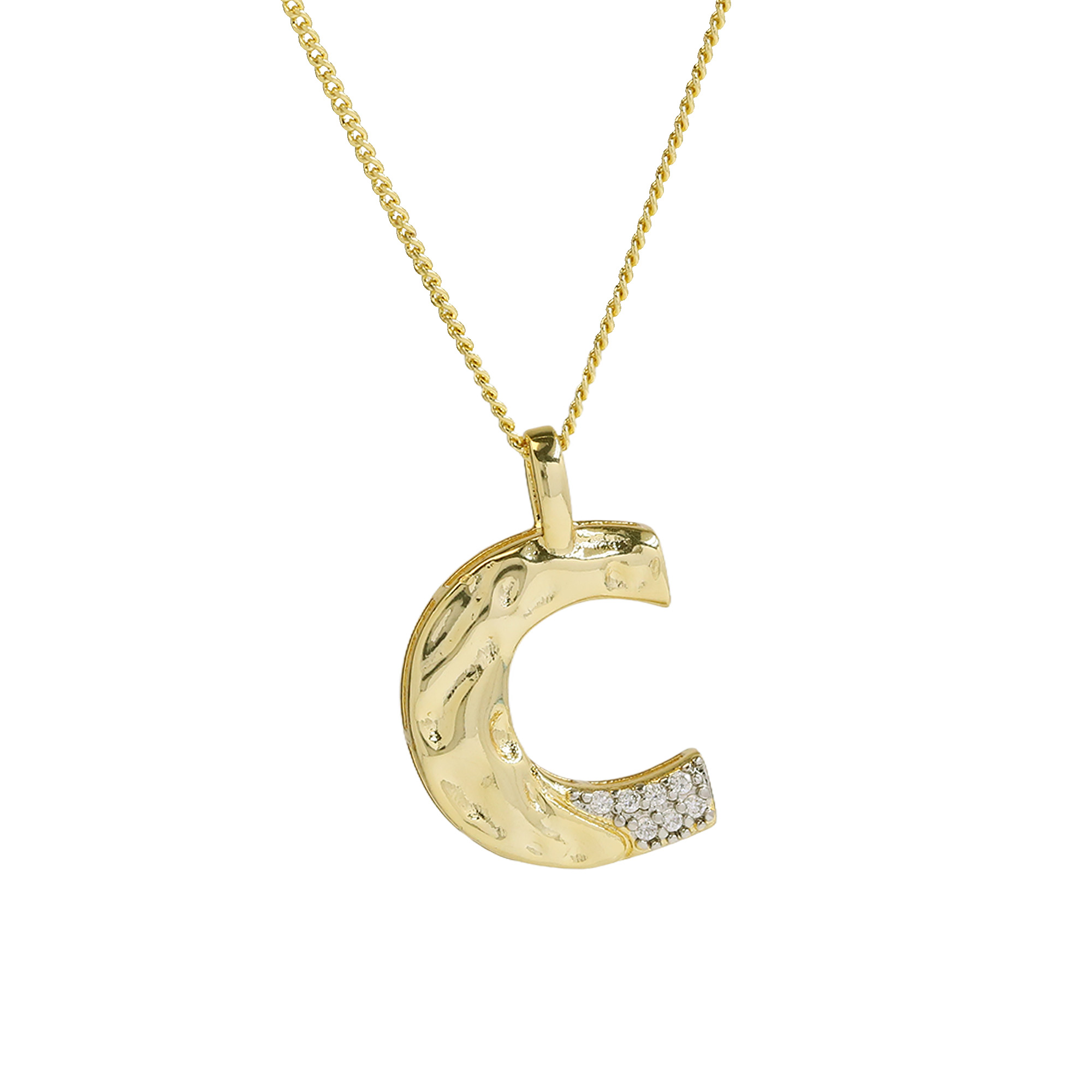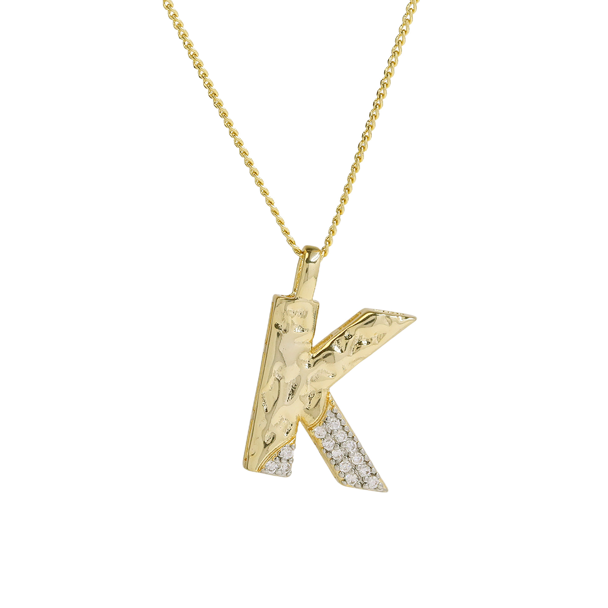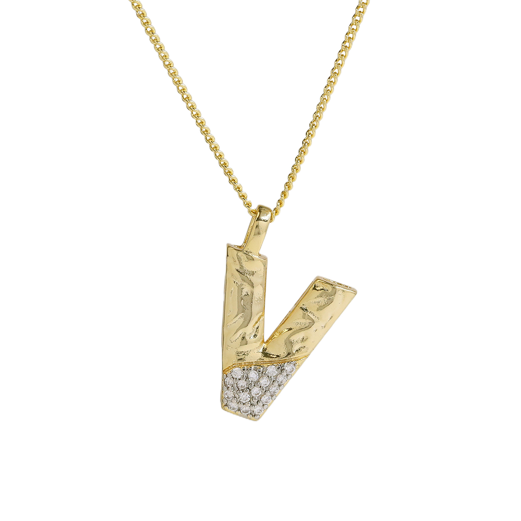 CZ Two-color Plating Alphabet & Number Pendant Necklaces