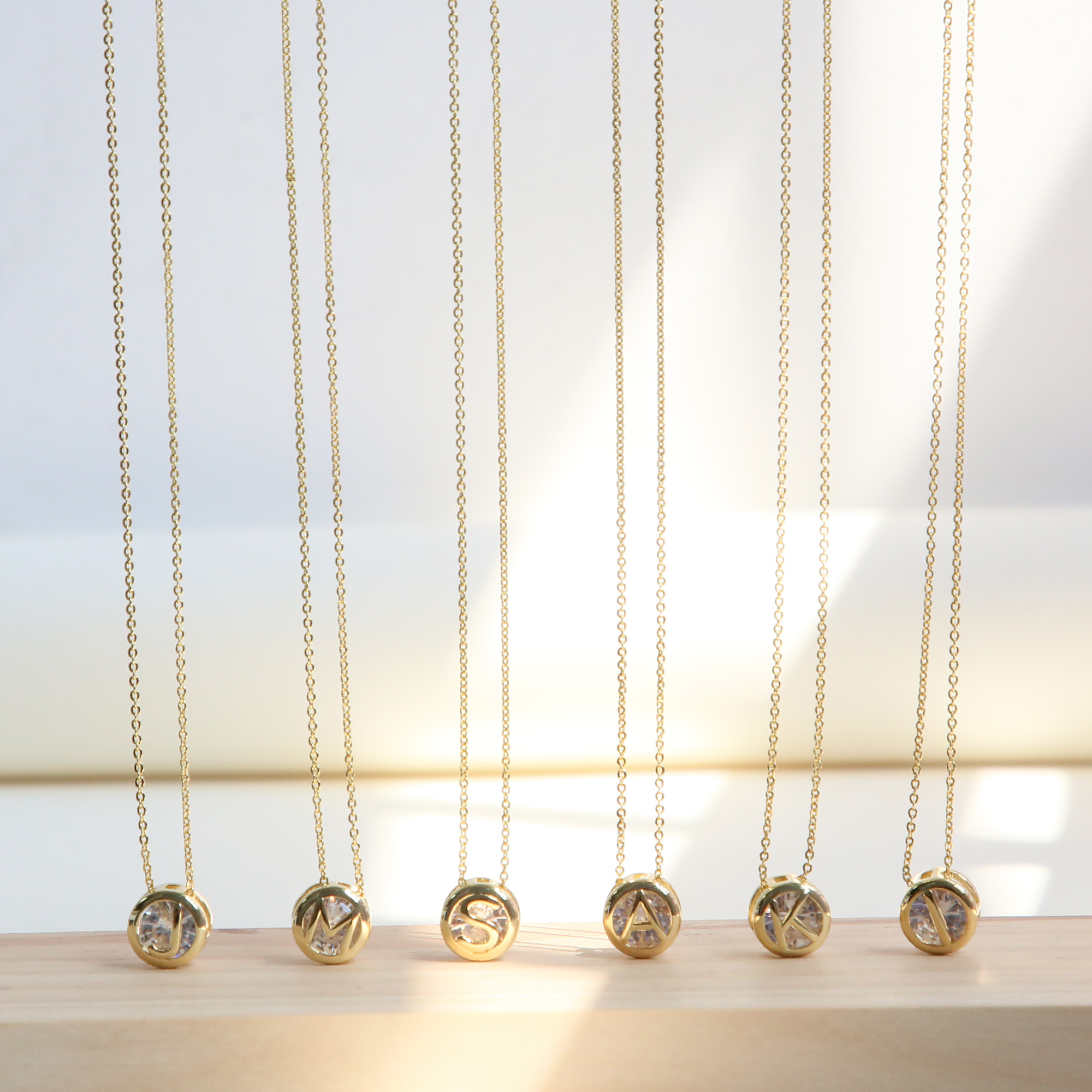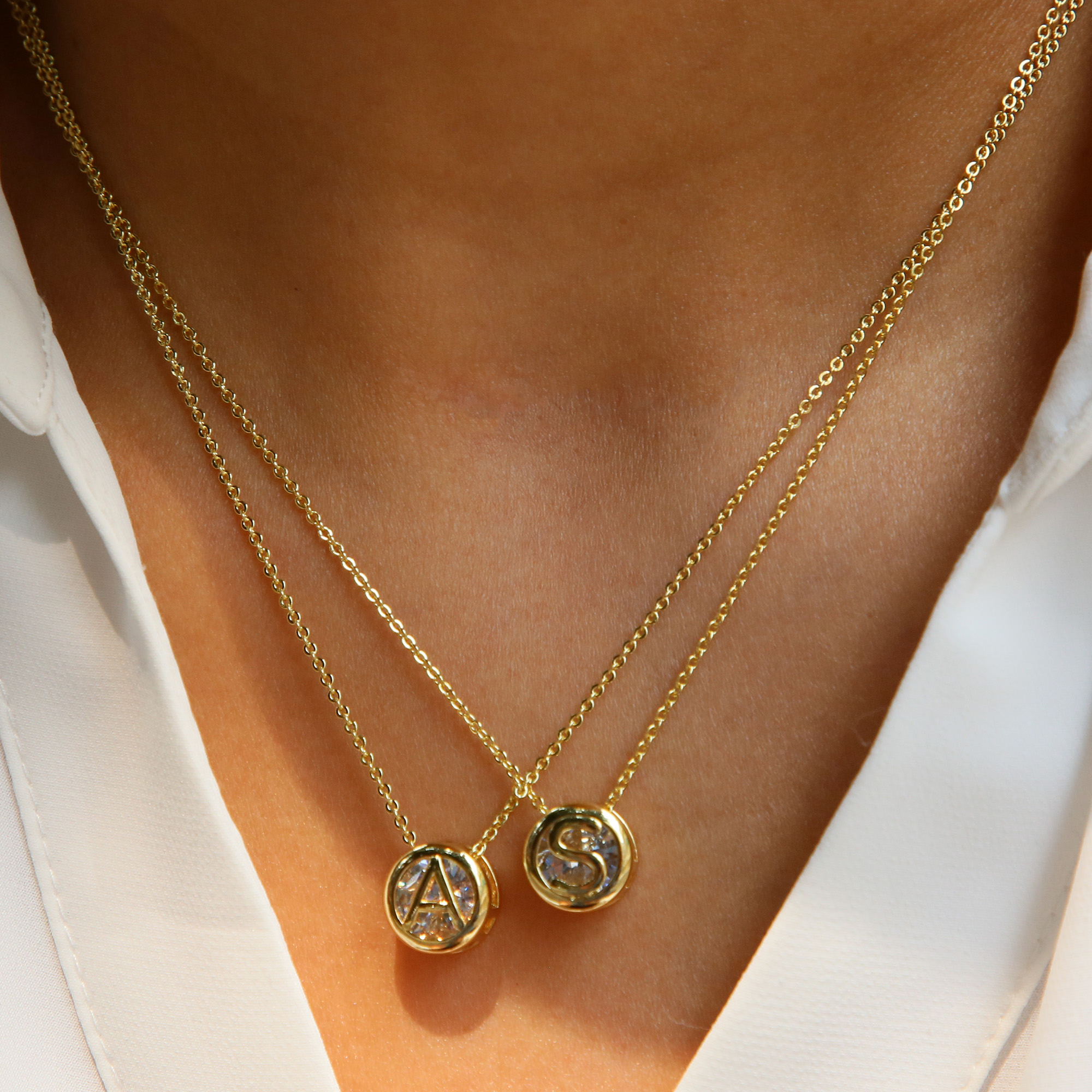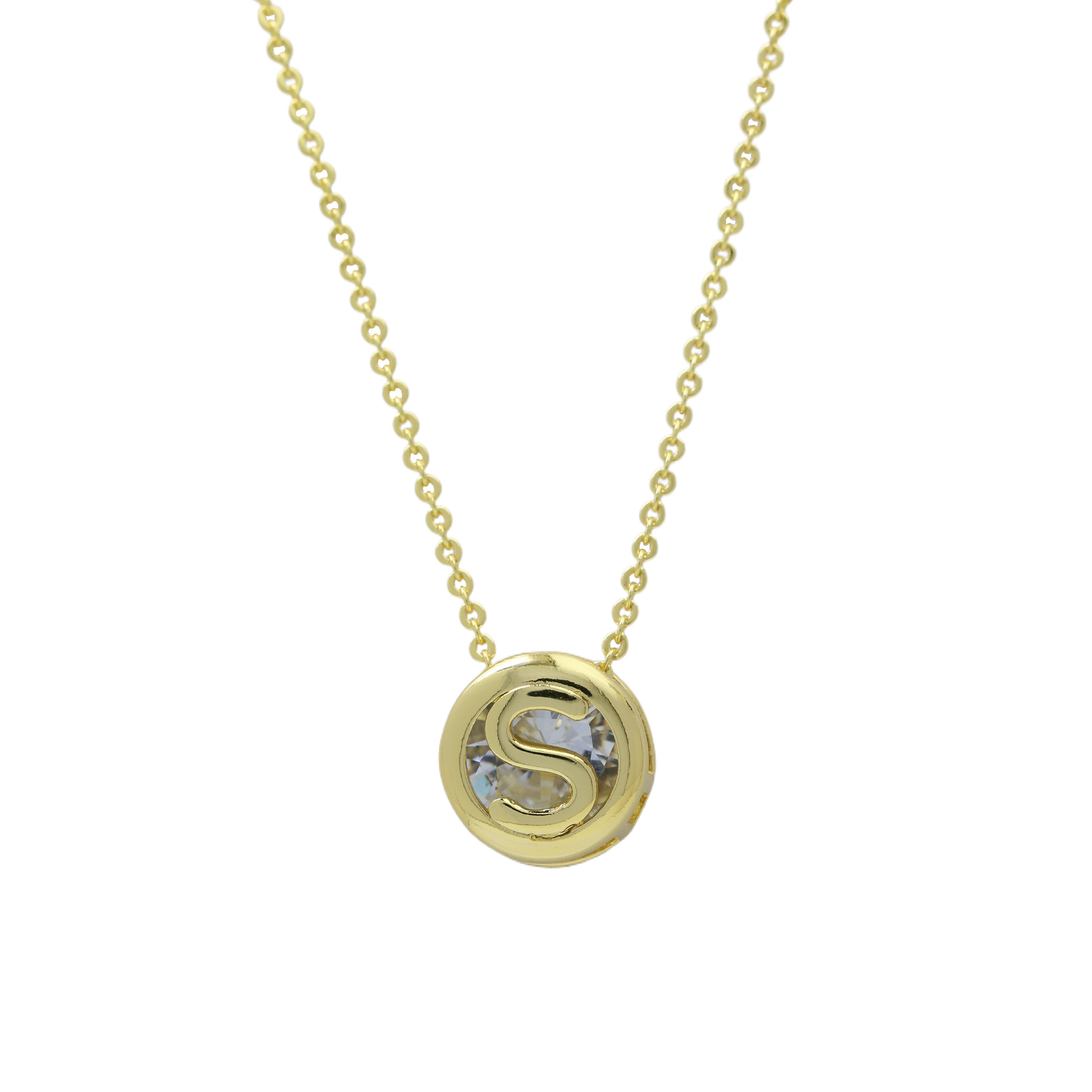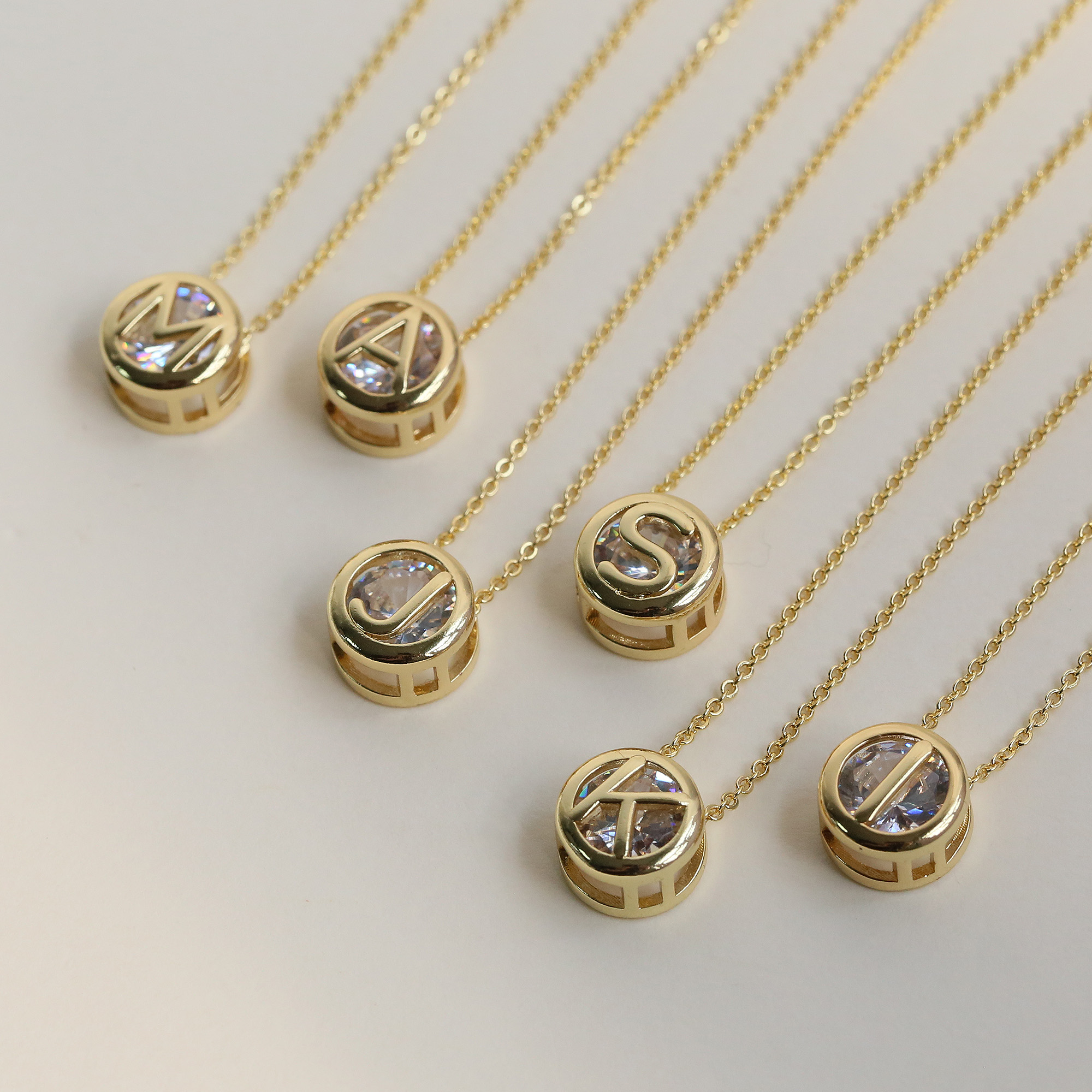 Initial White Zircon Letter Pendant Necklaces