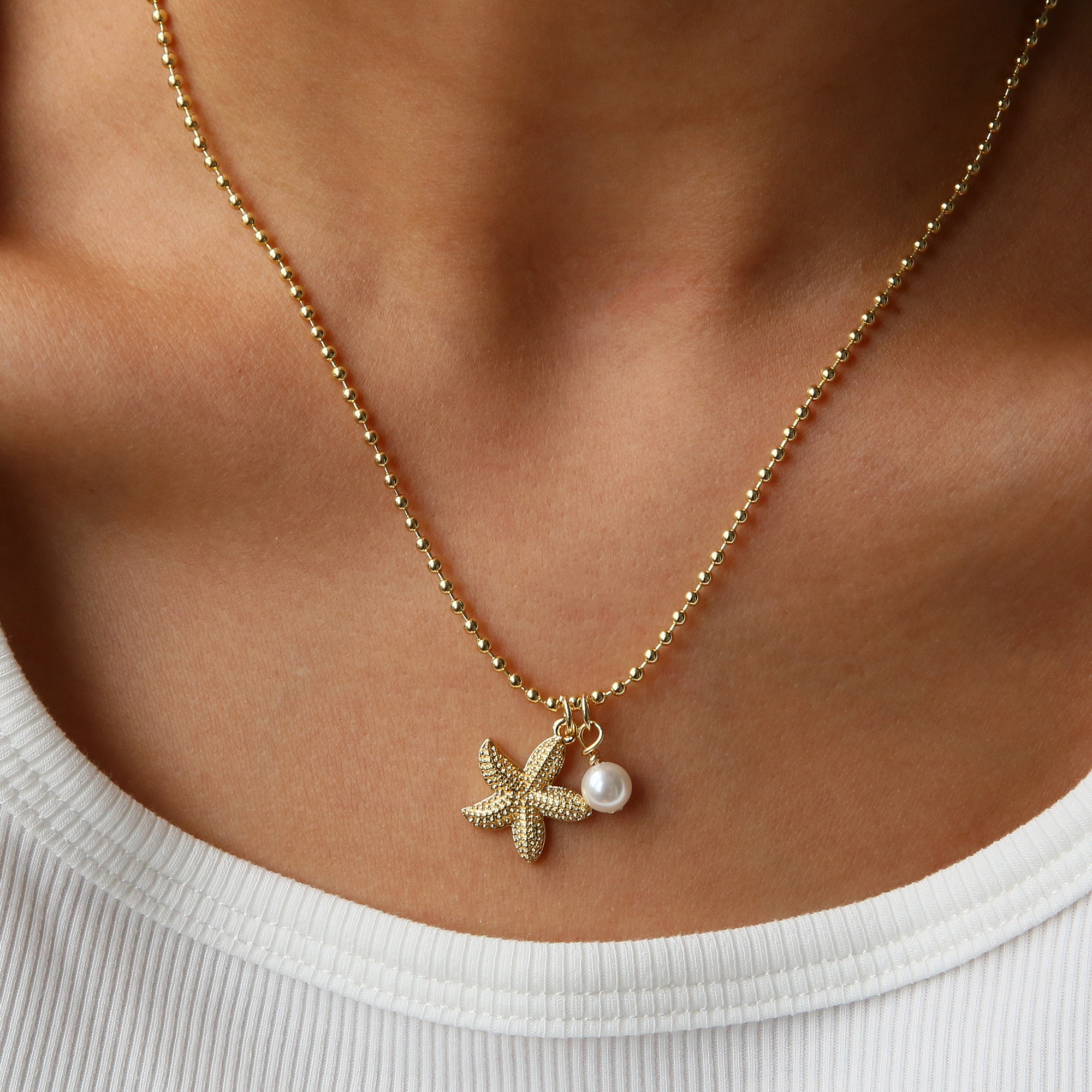 Starfish Pearl Pendant Necklaces