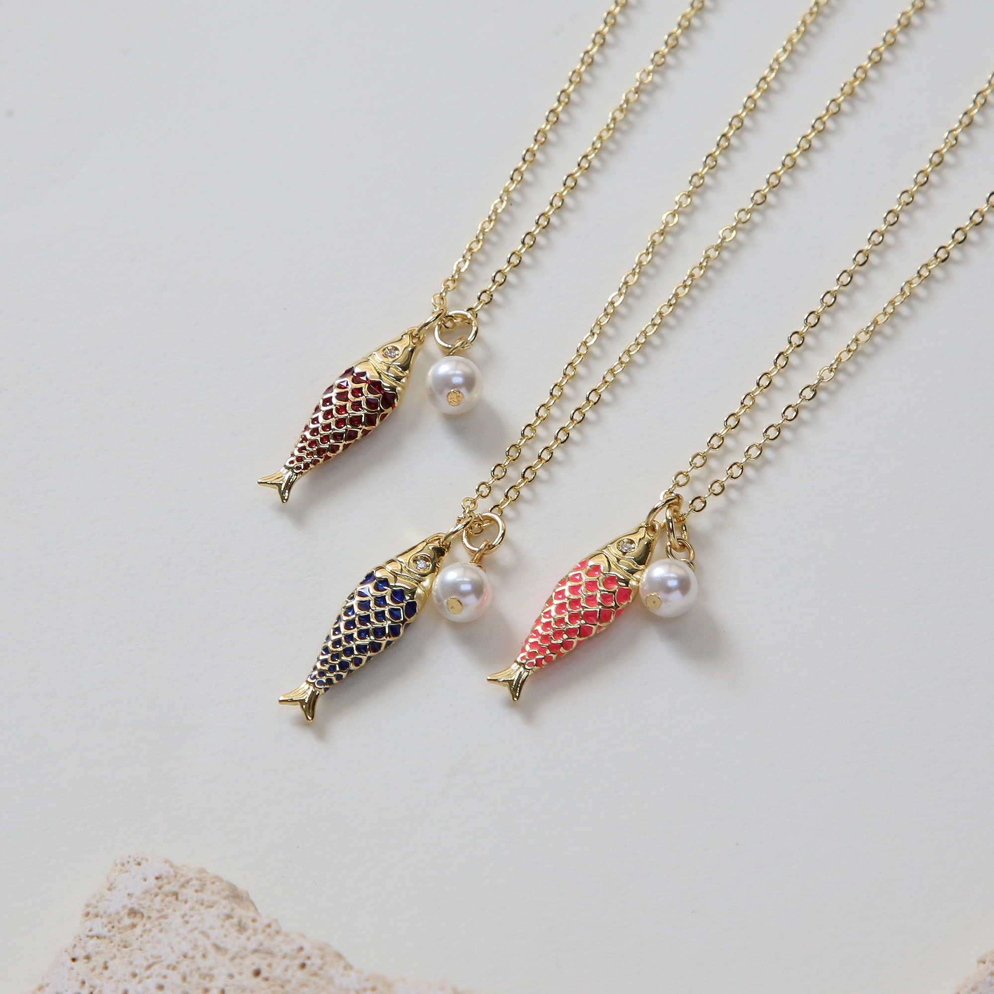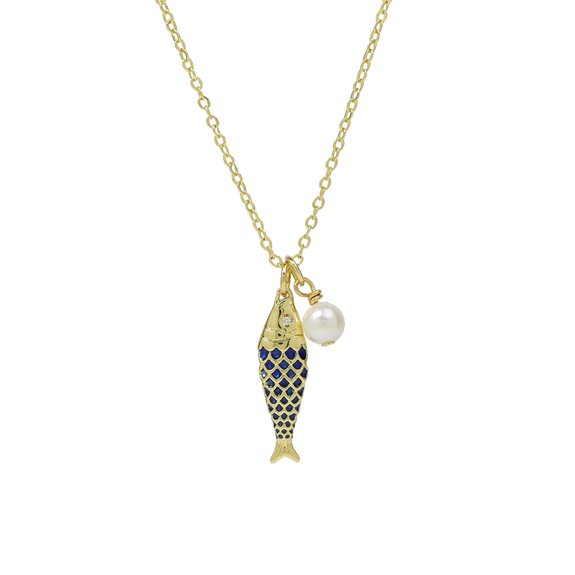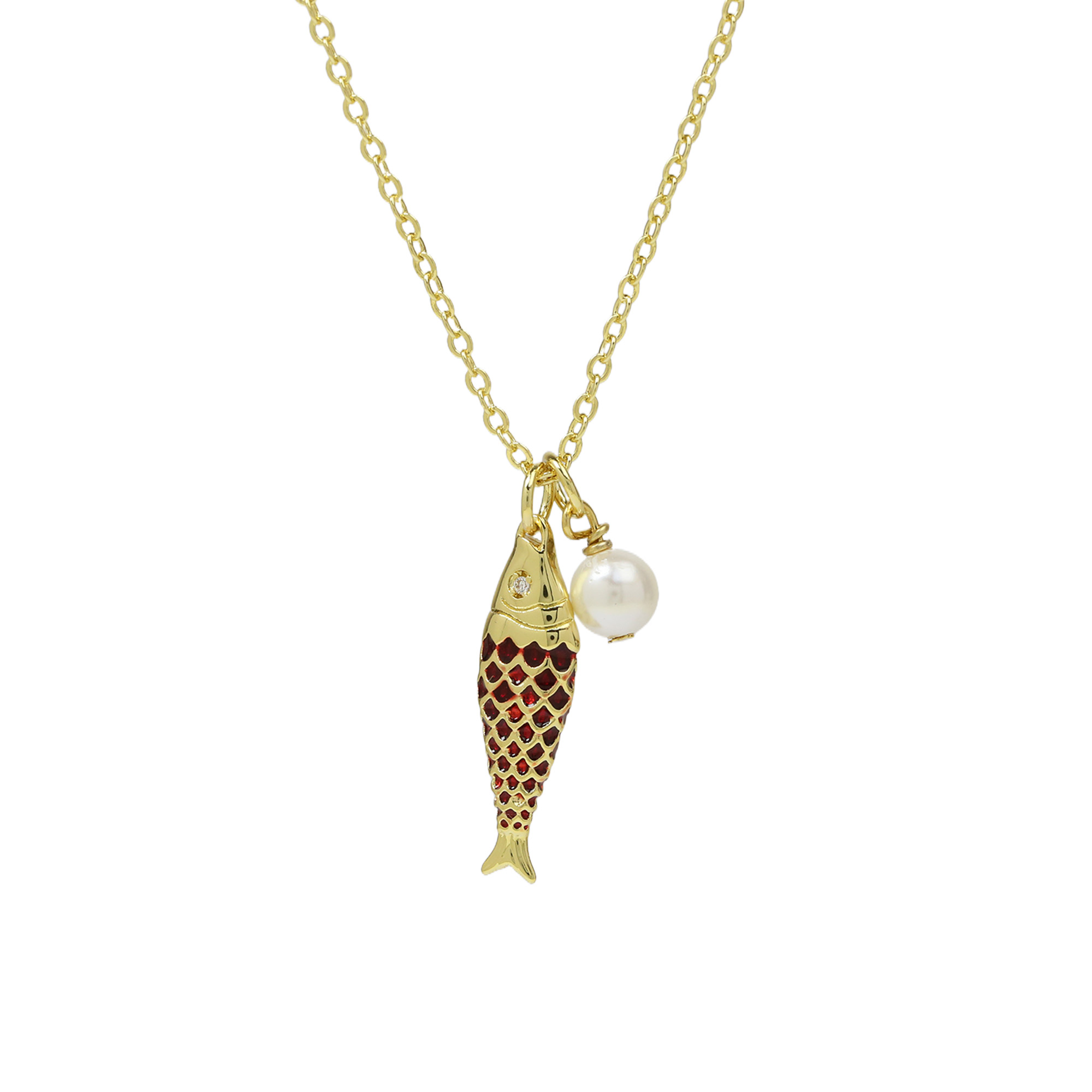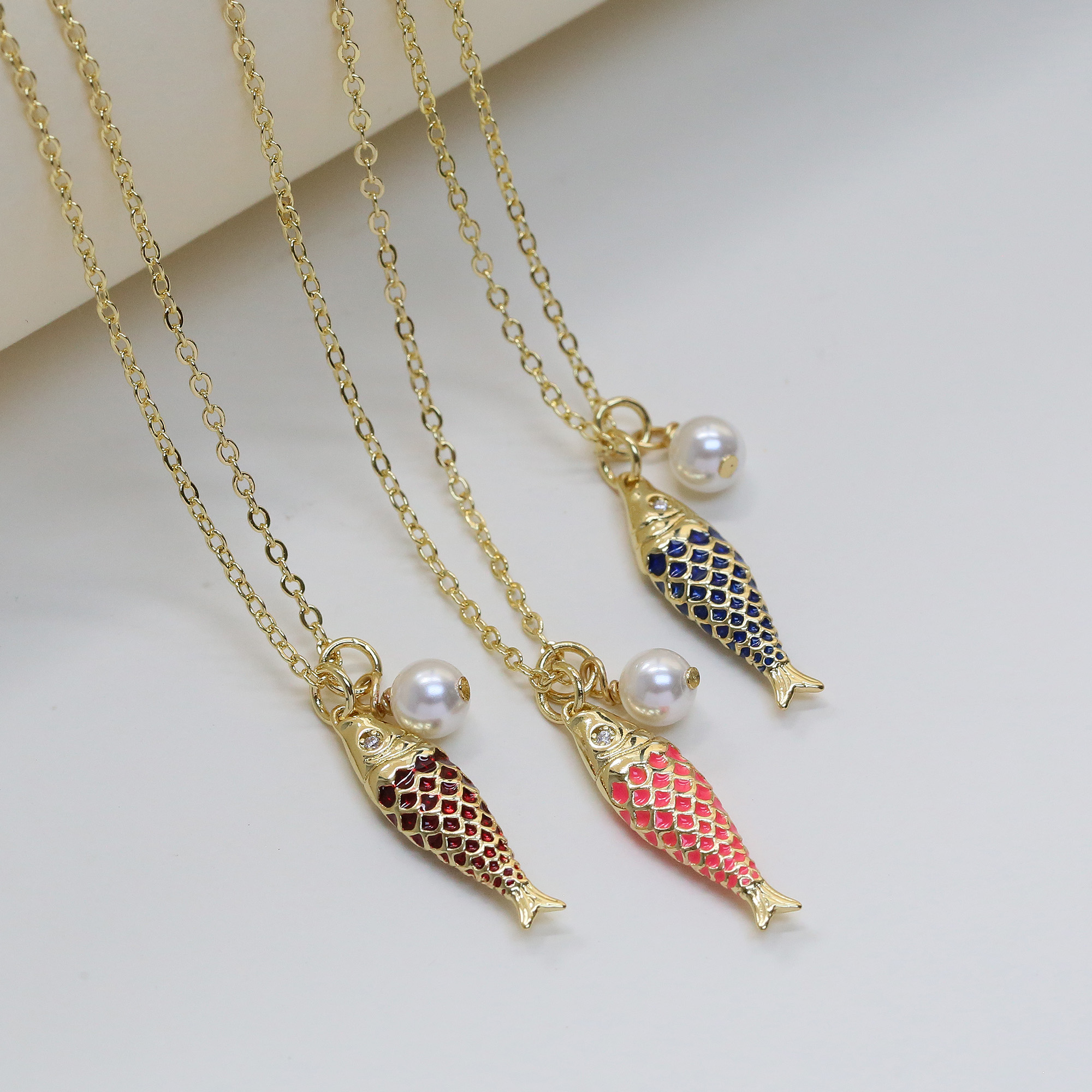 Enamel Fish Pearl Pendant Necklaces