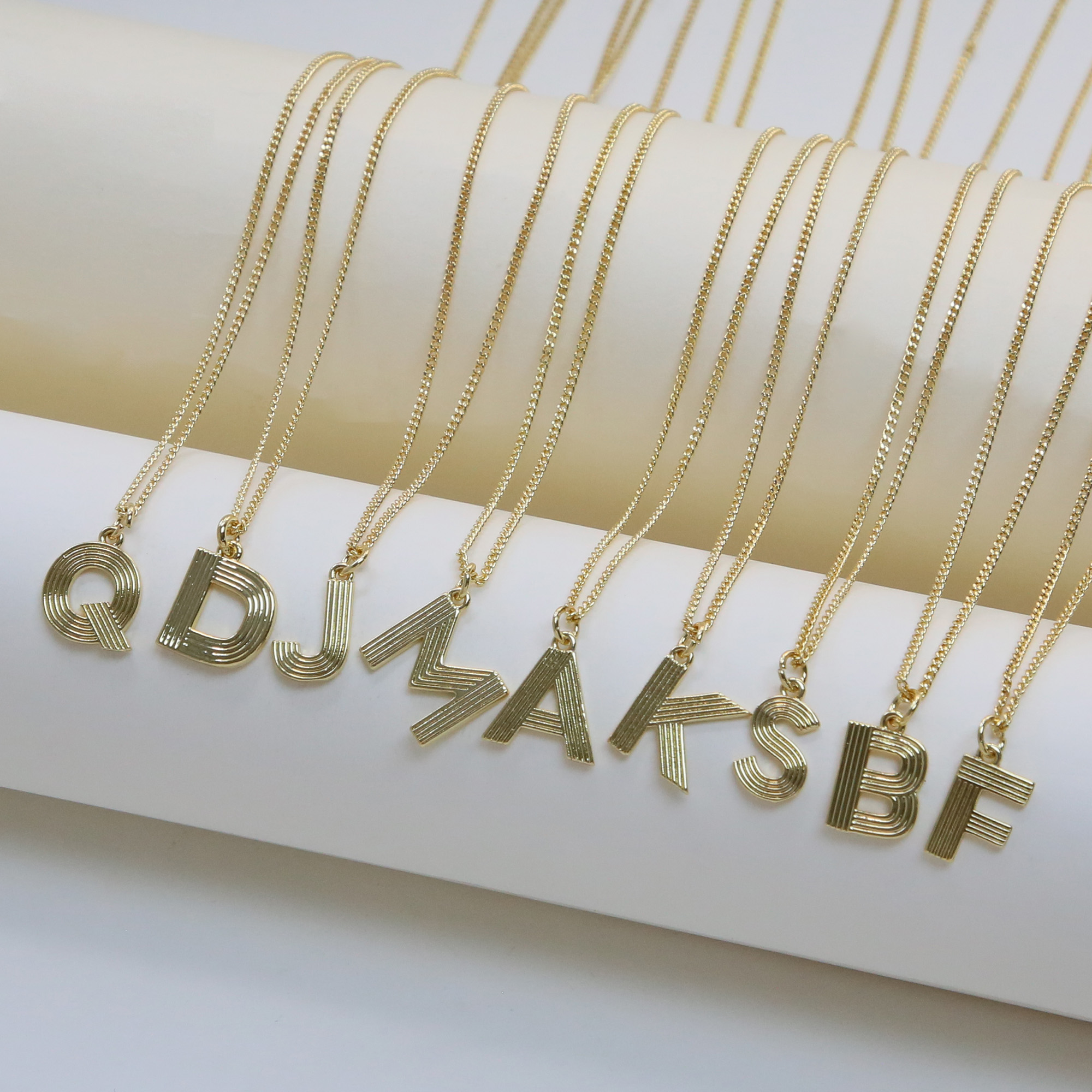 Geometric Stripes Initial Letter Pendant Necklaces