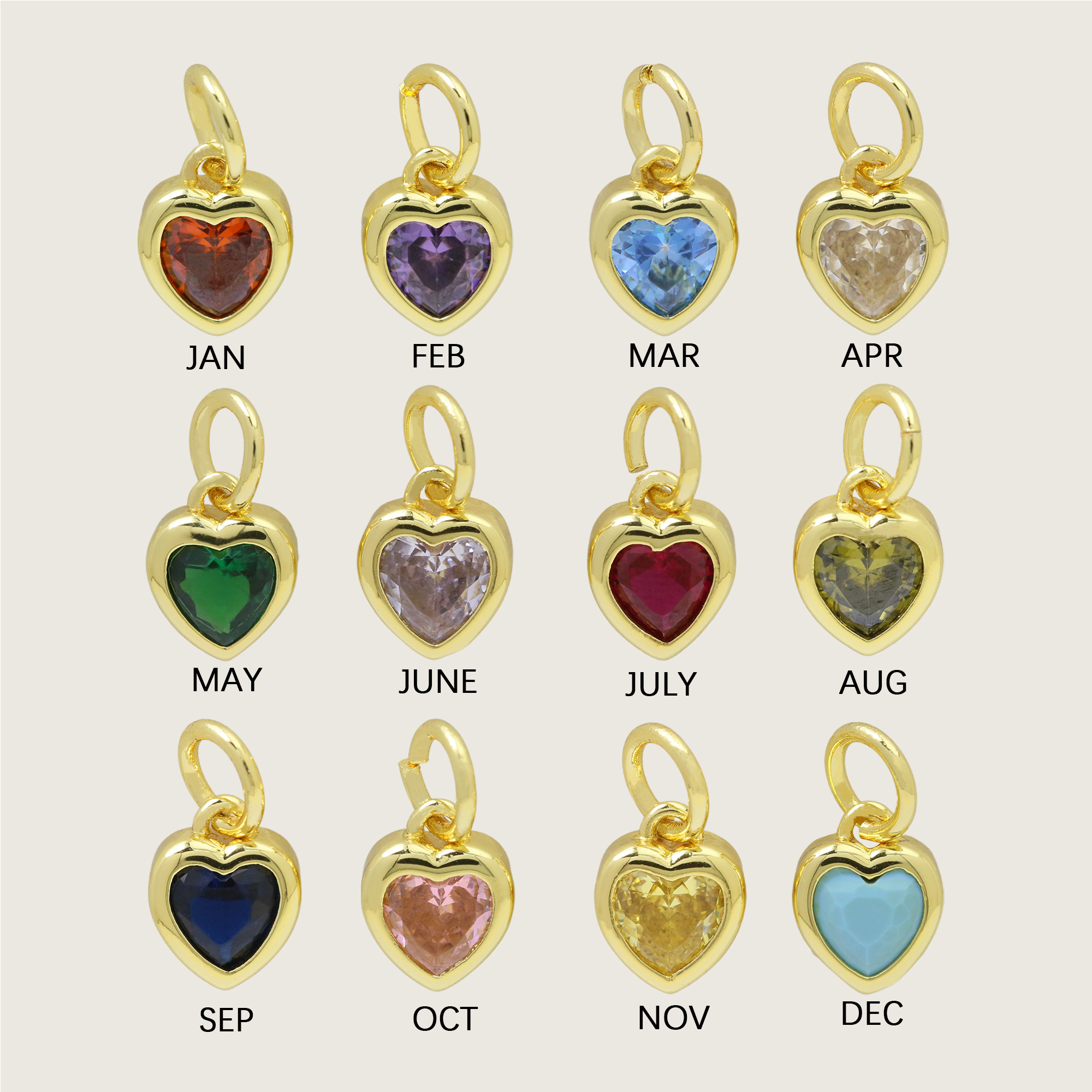 Birth Stones Heart Charms