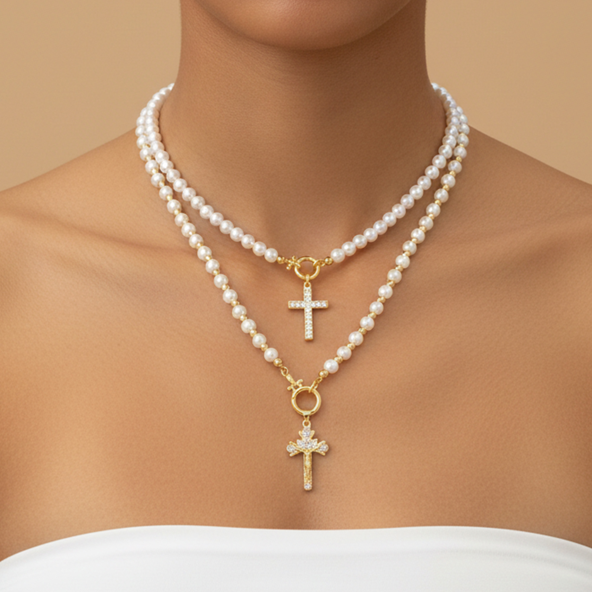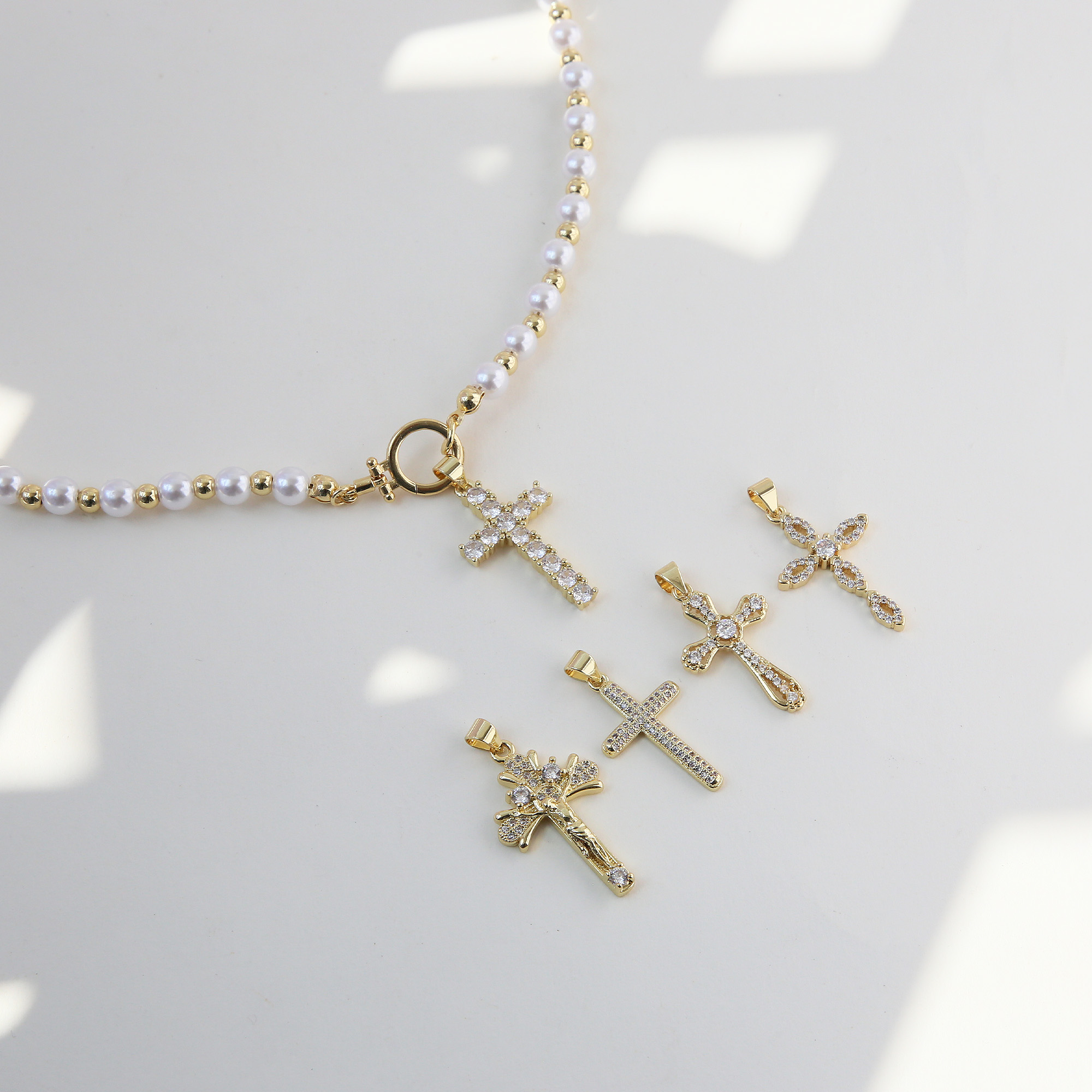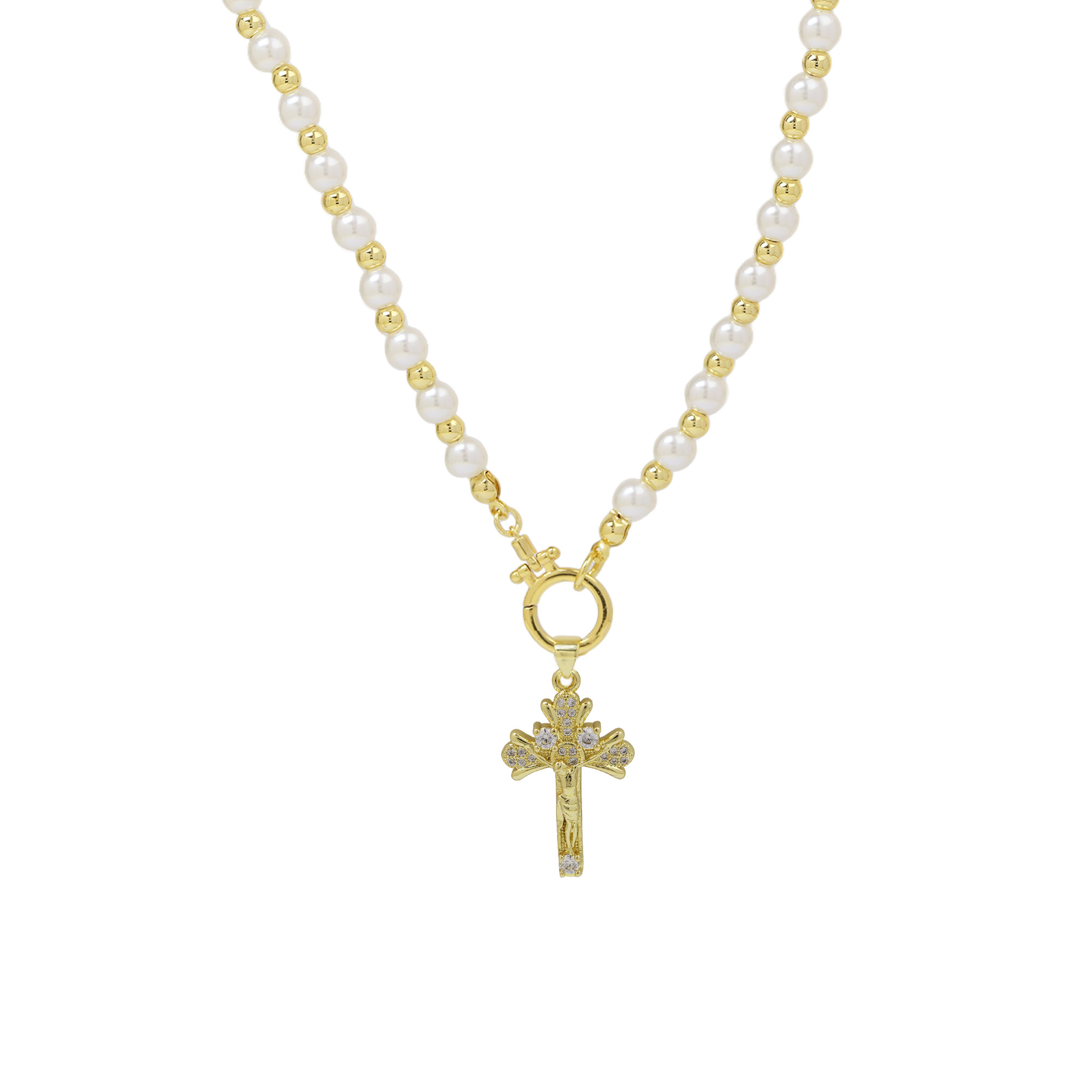 Cross Pearl Pendant Necklace