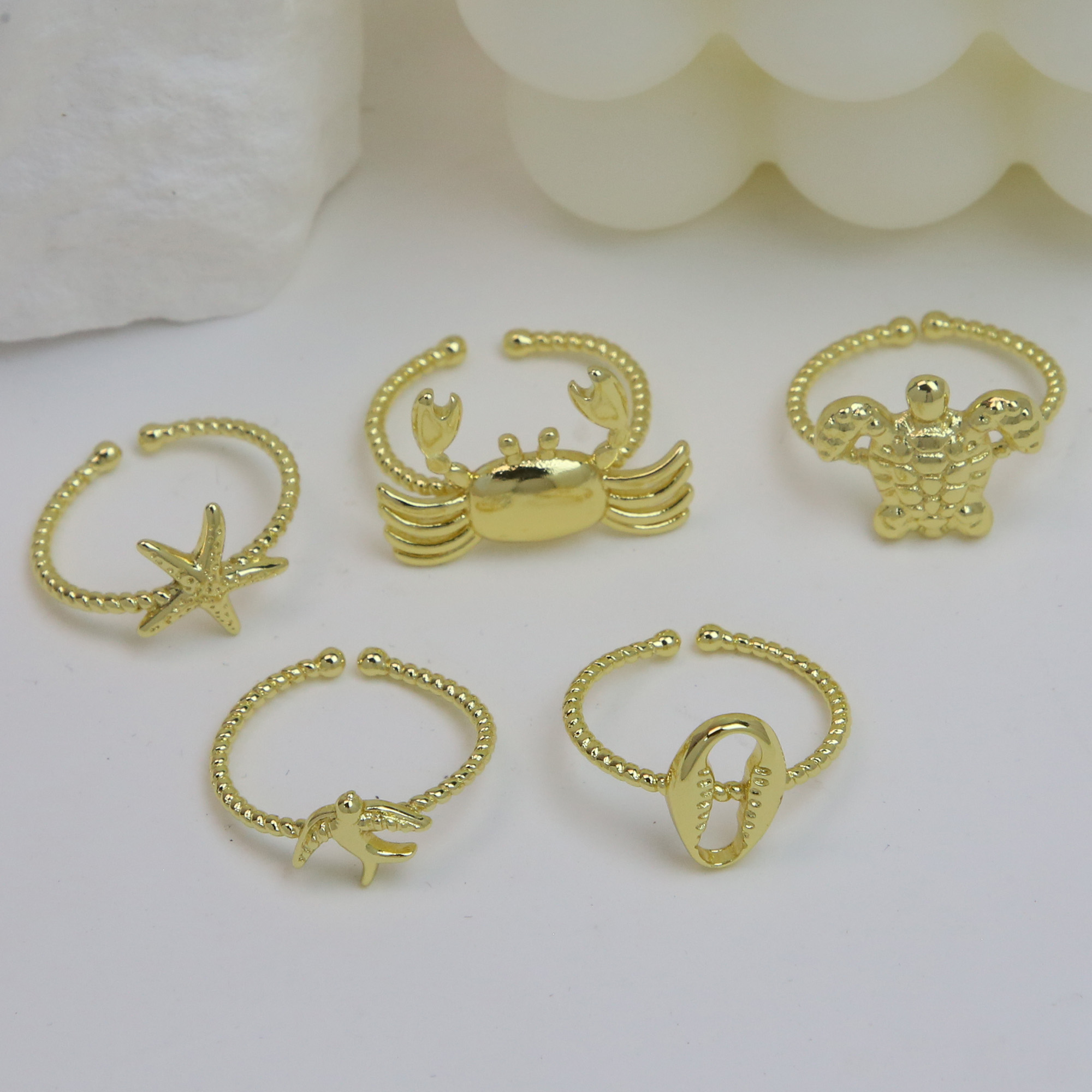 Ocean Geometric Seashell Crab Rings