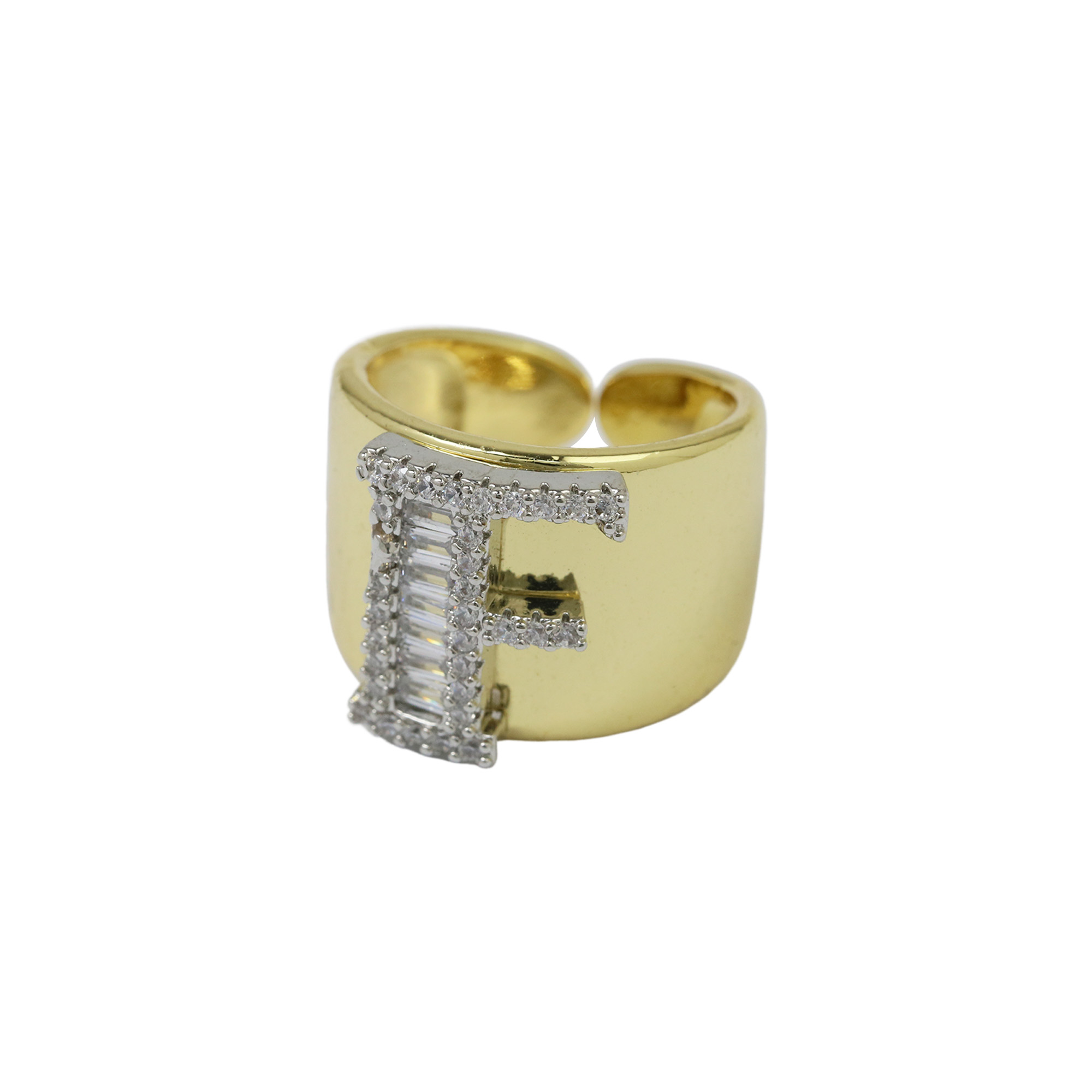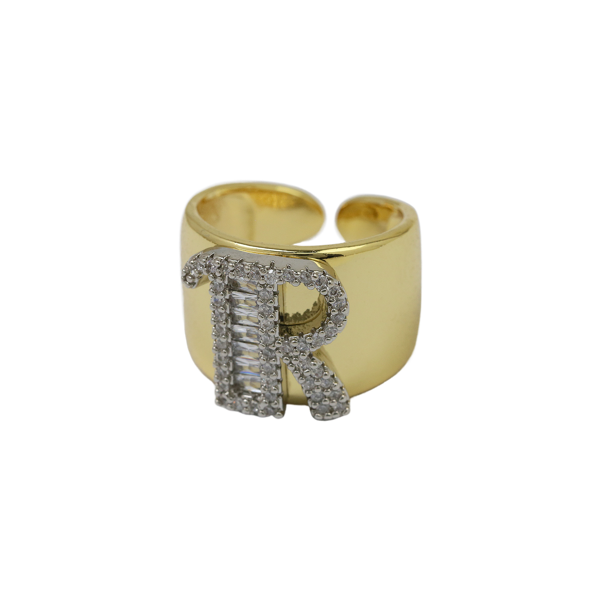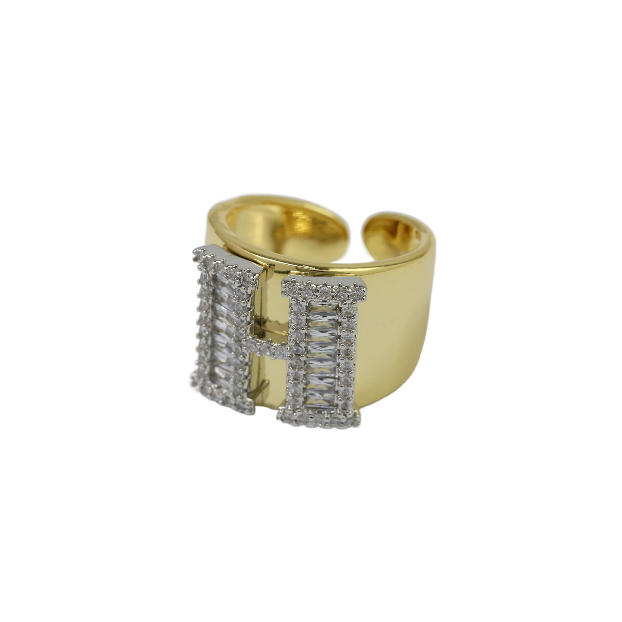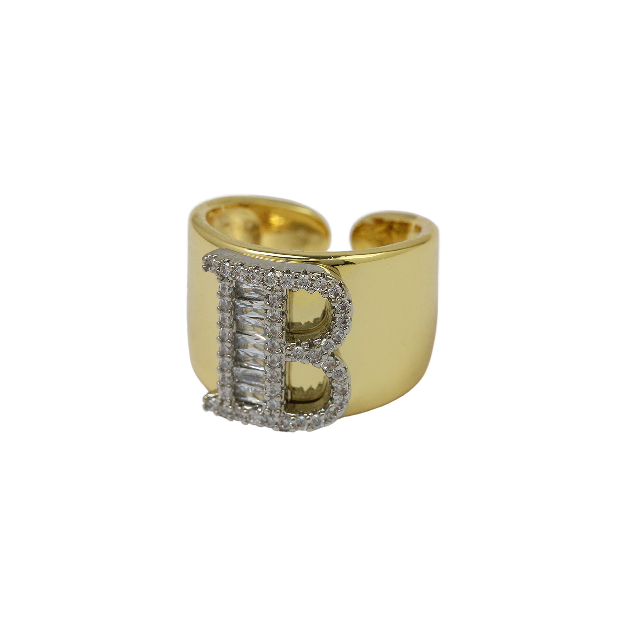 Two Tones Initial Letter Alphabet Thick Ring