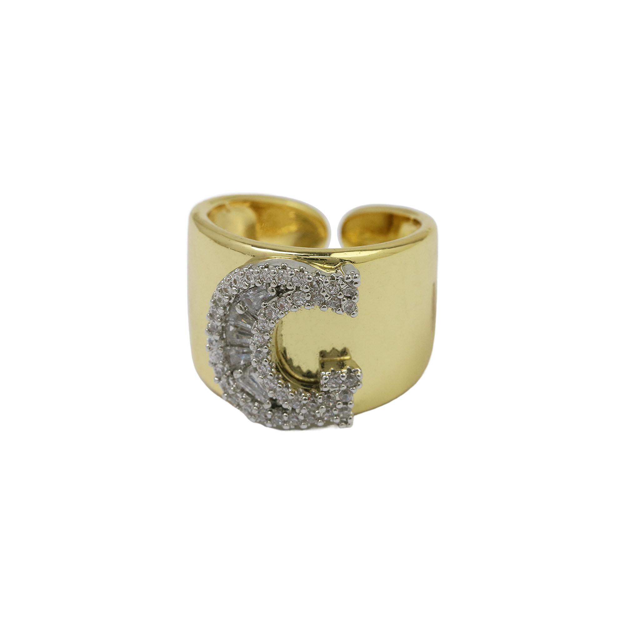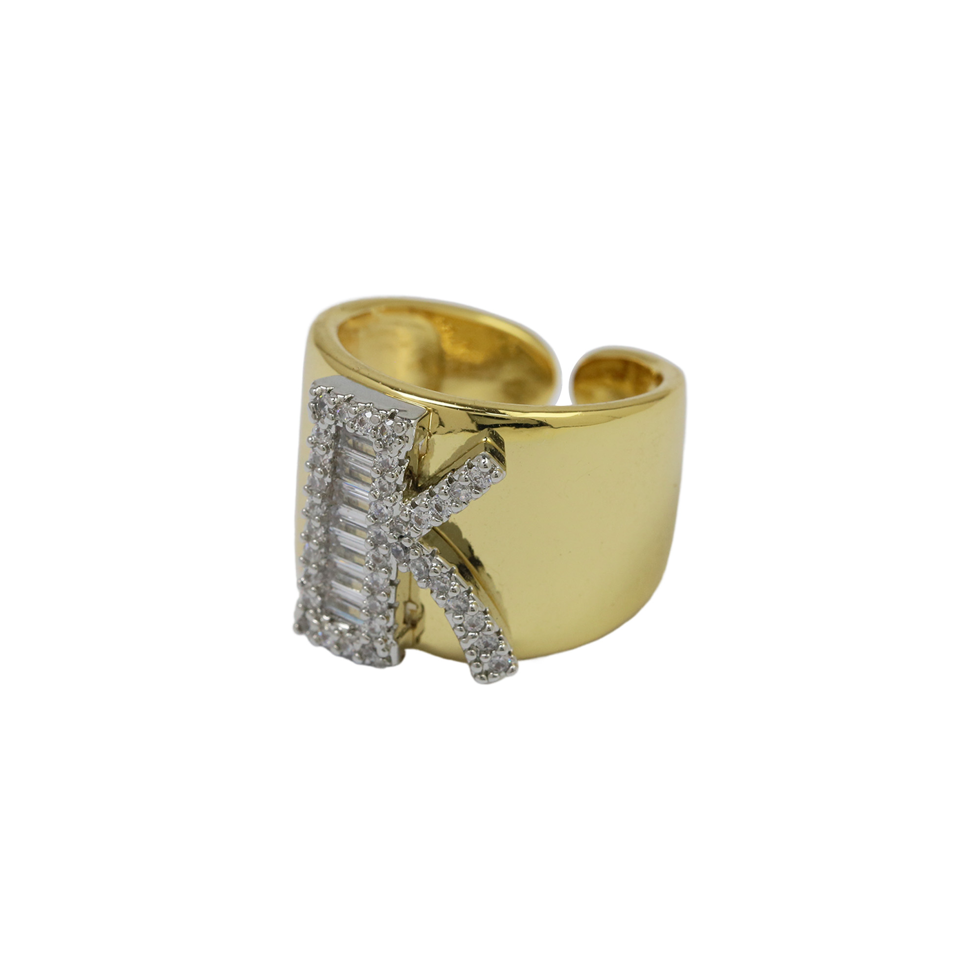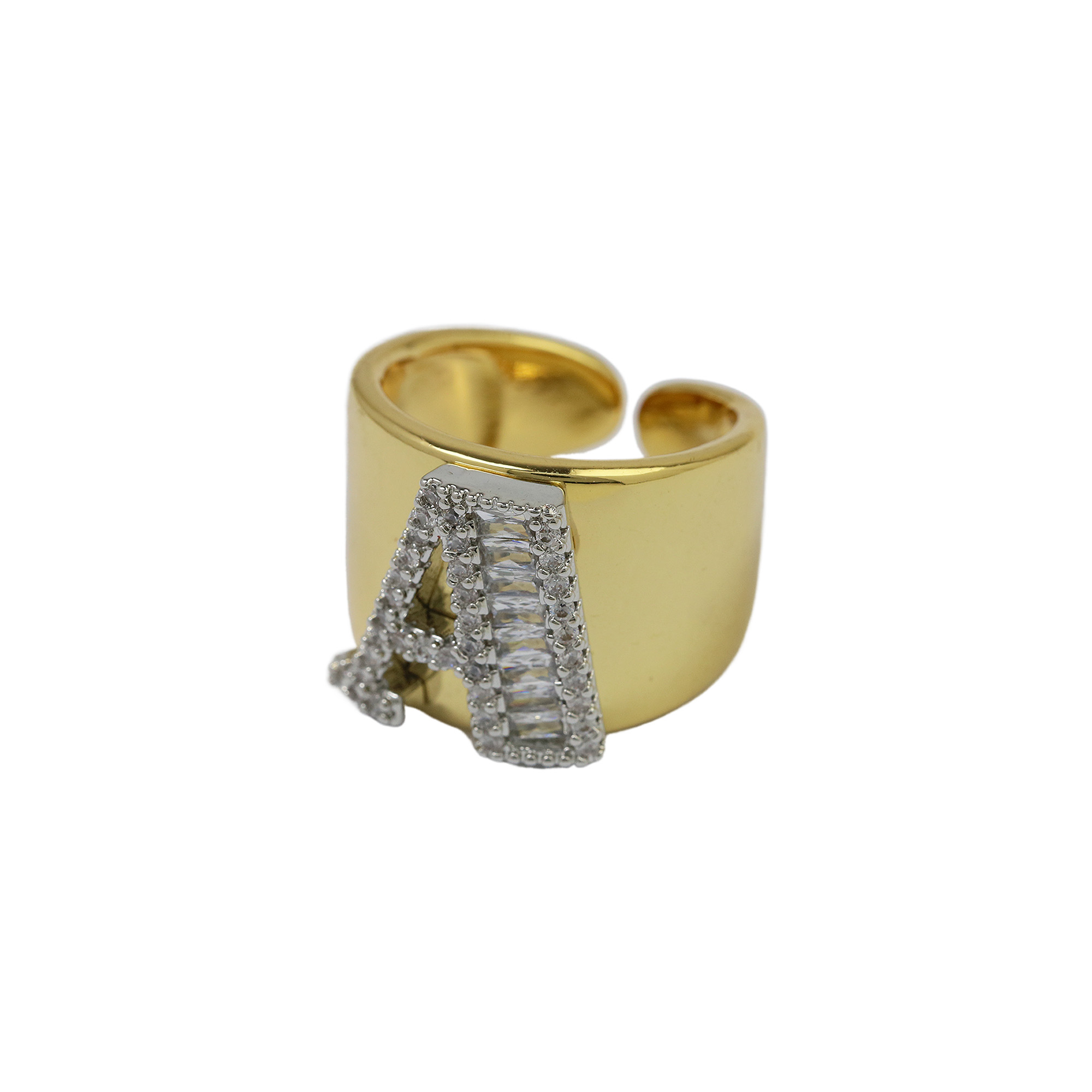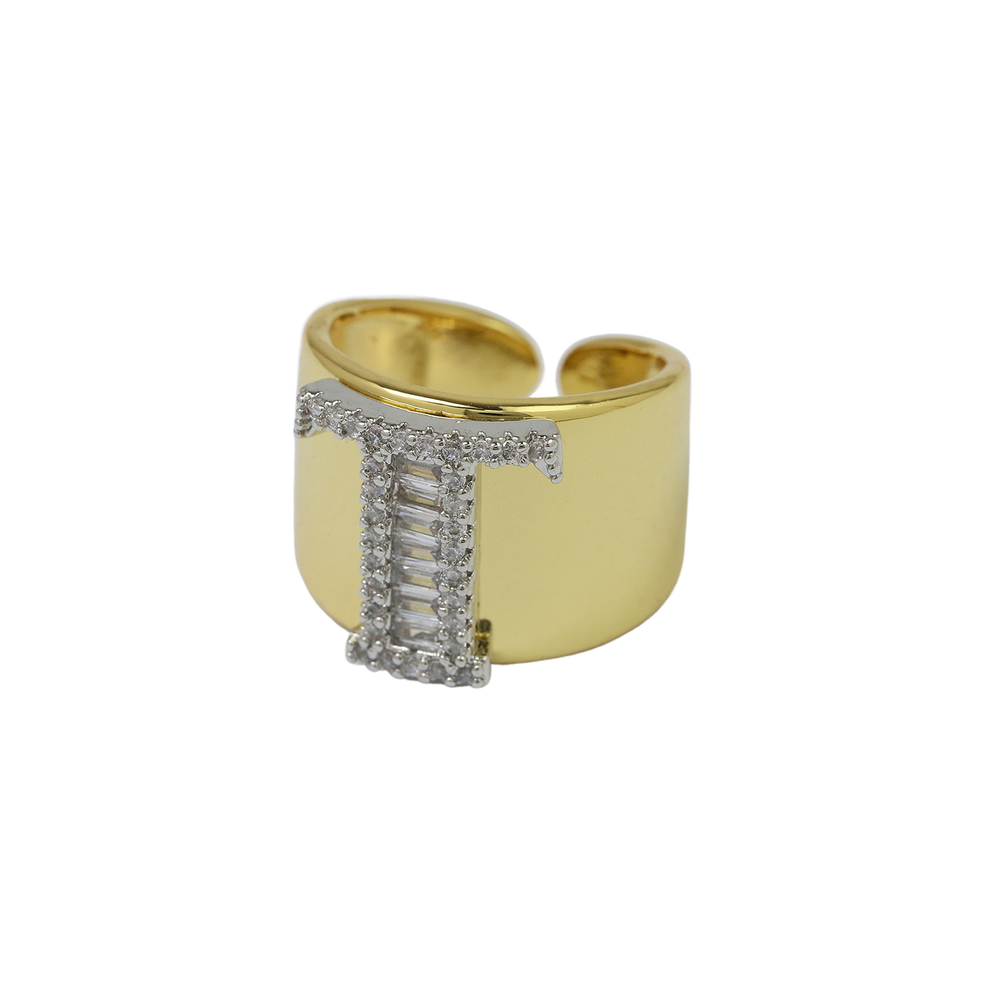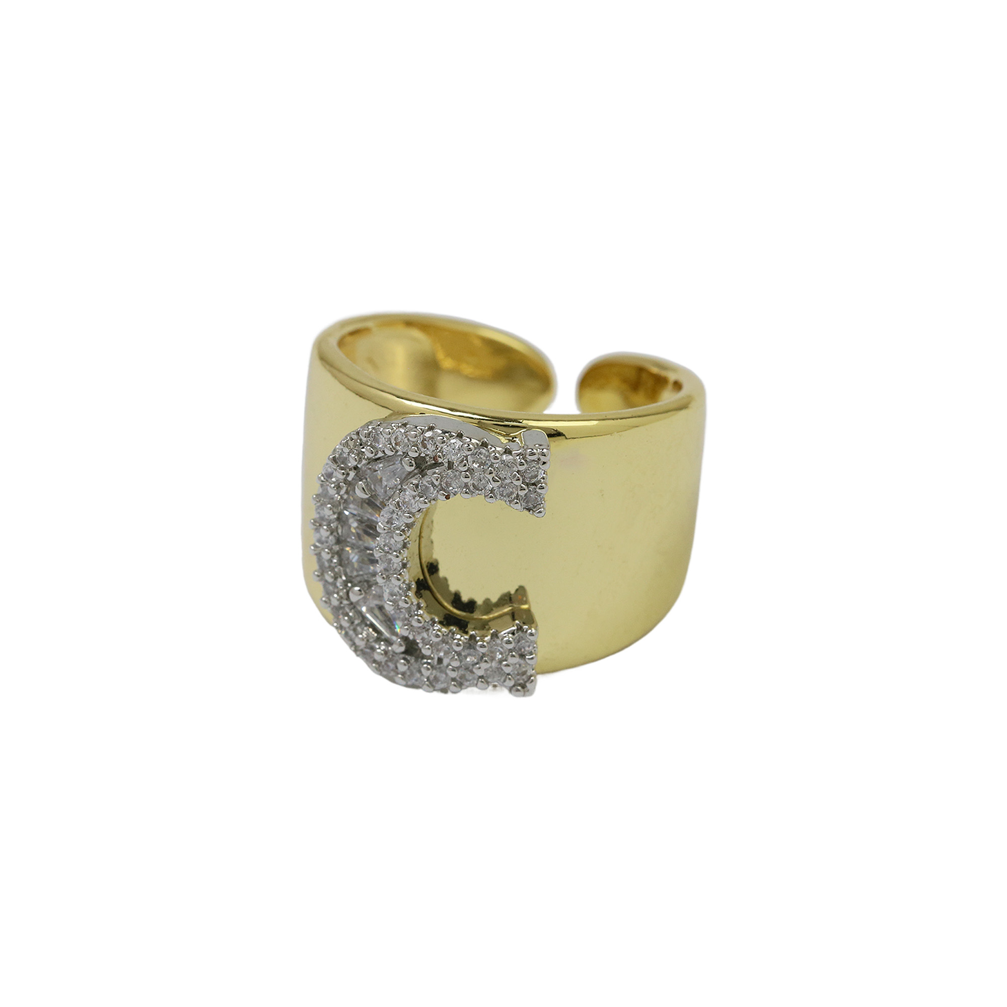 Two Tones Initial Letter Alphabet Thick Ring