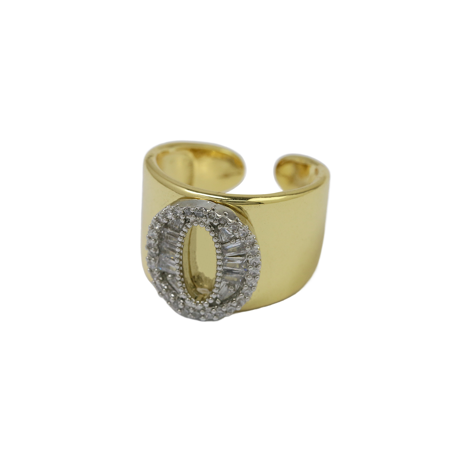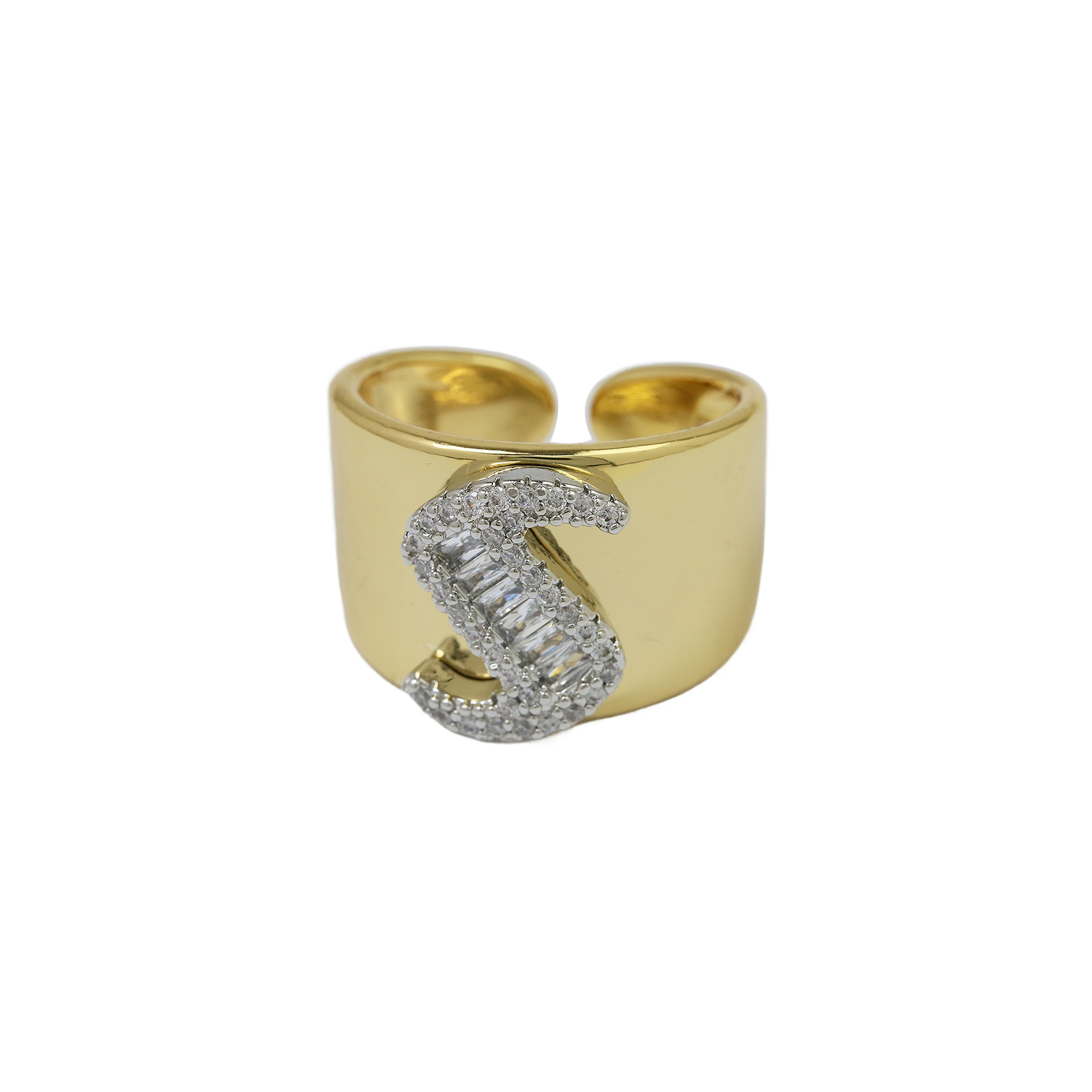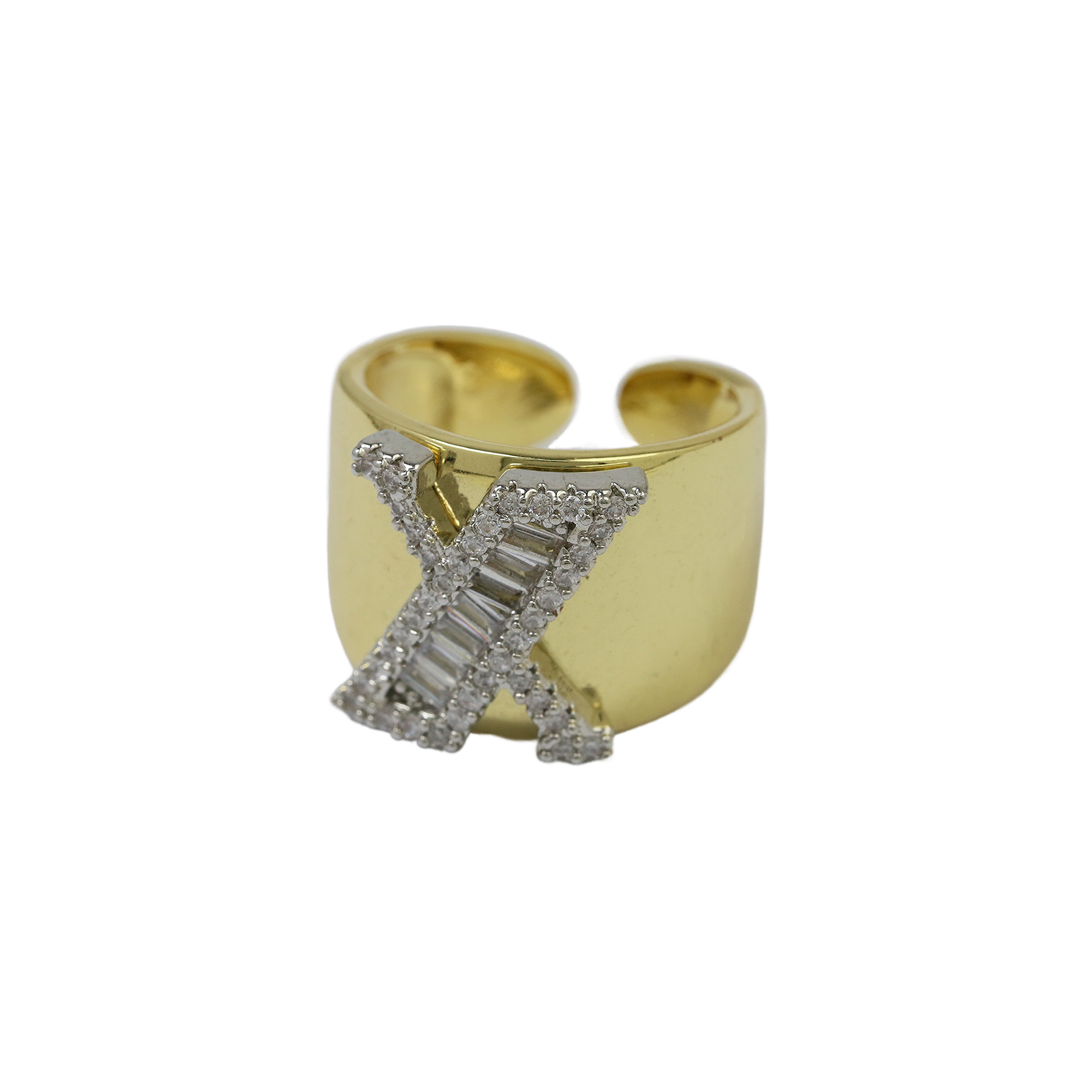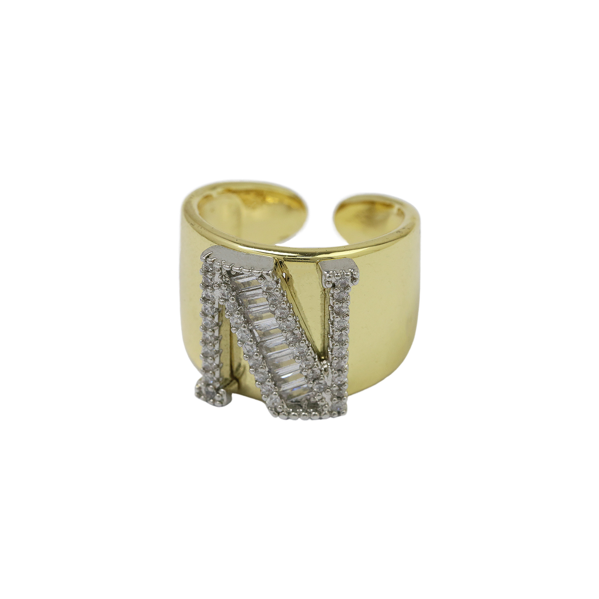 Two Tones Initial Letter Alphabet Thick Ring