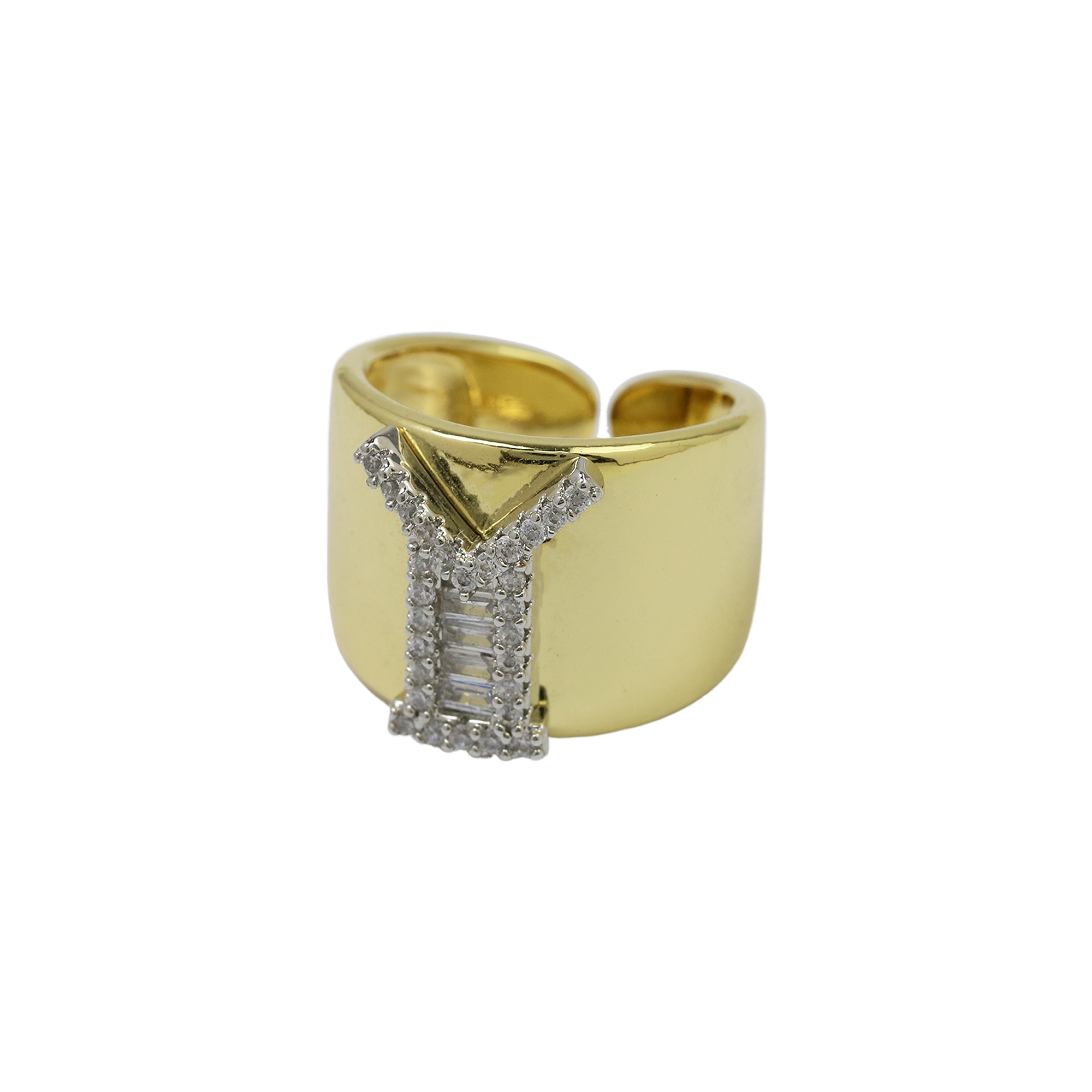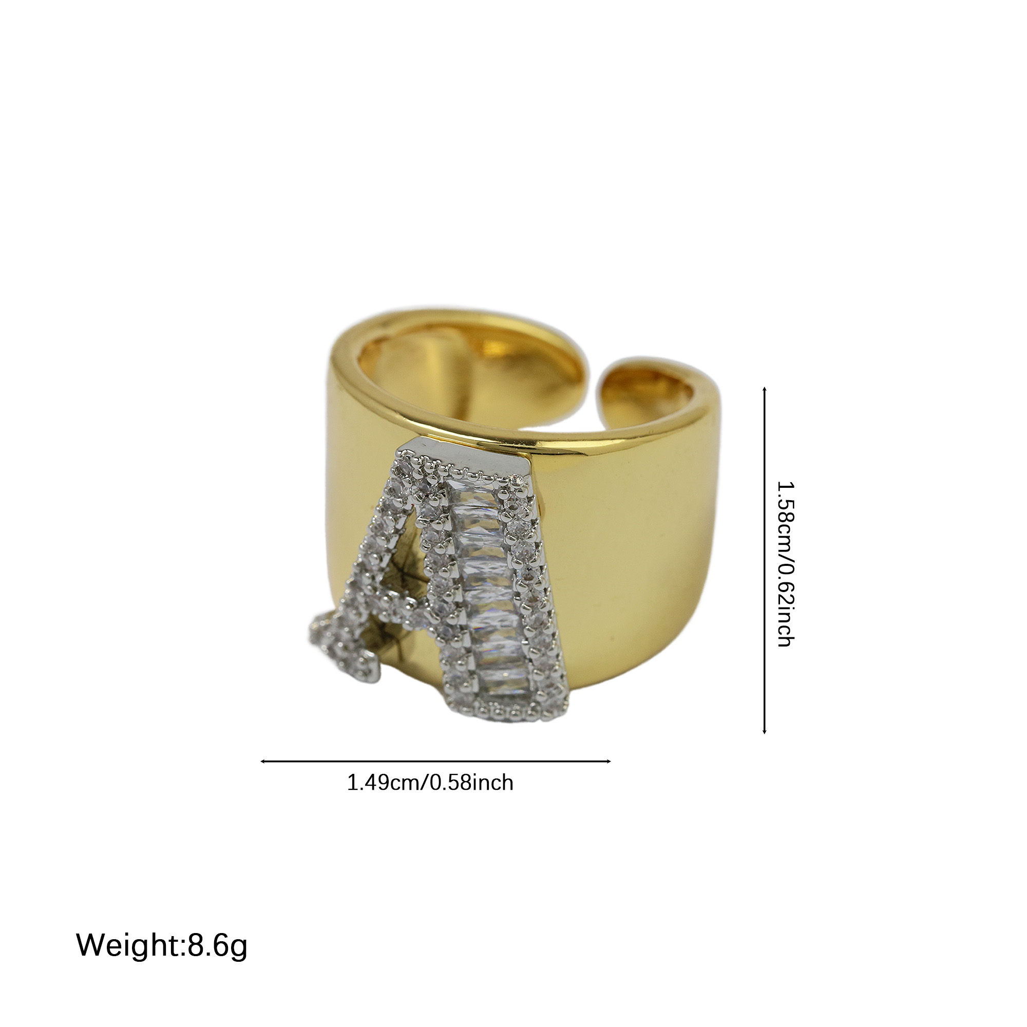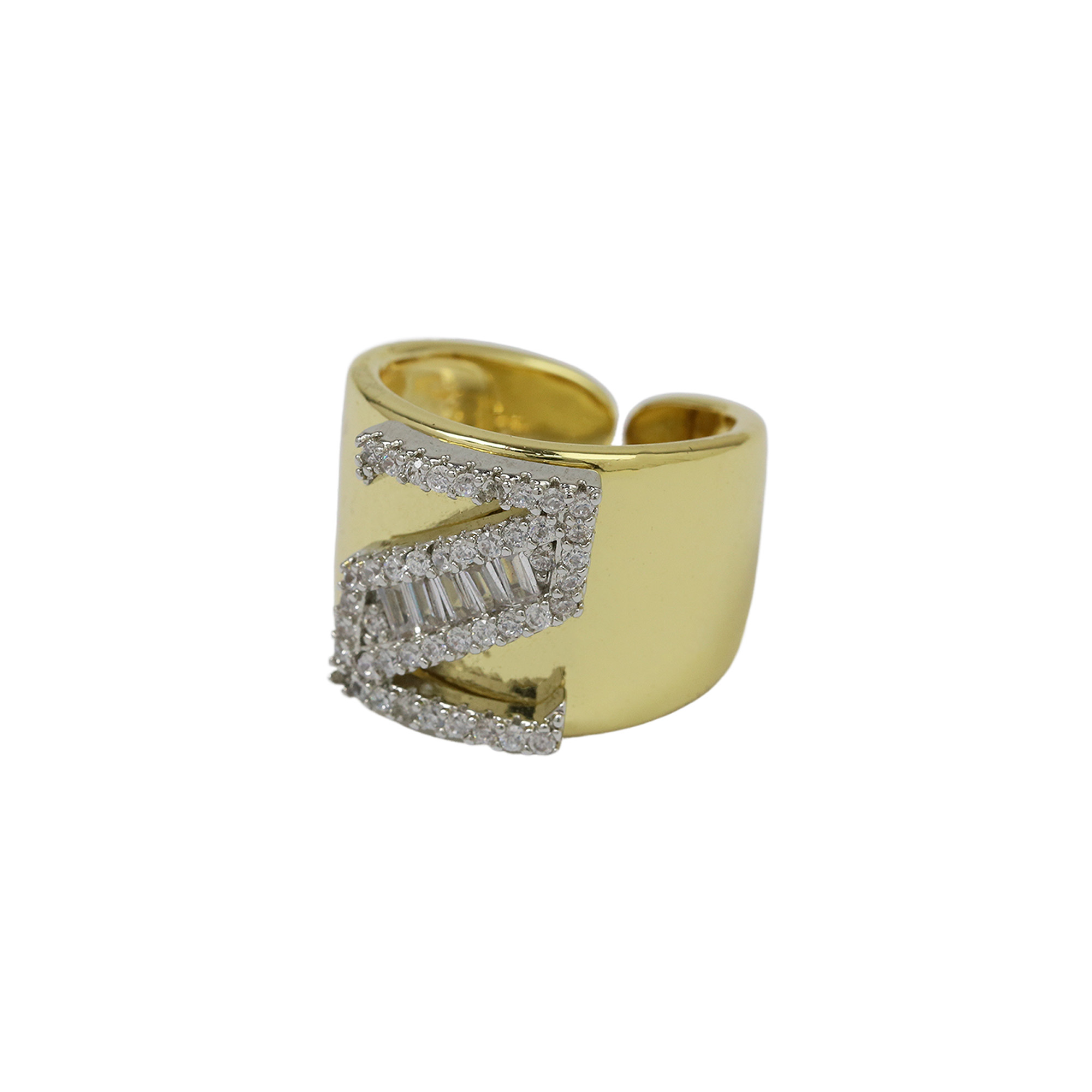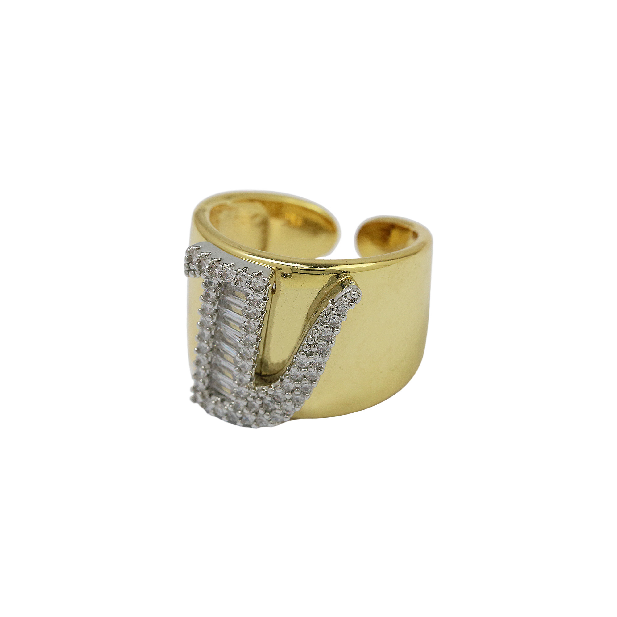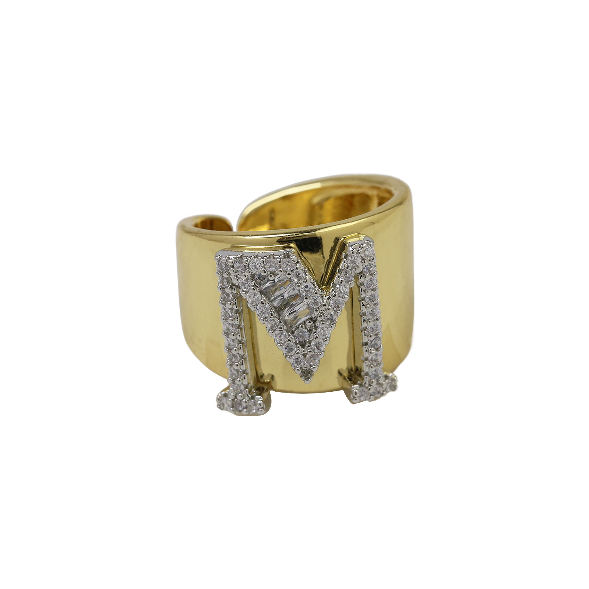 Two Tones Initial Letter Alphabet Thick Ring