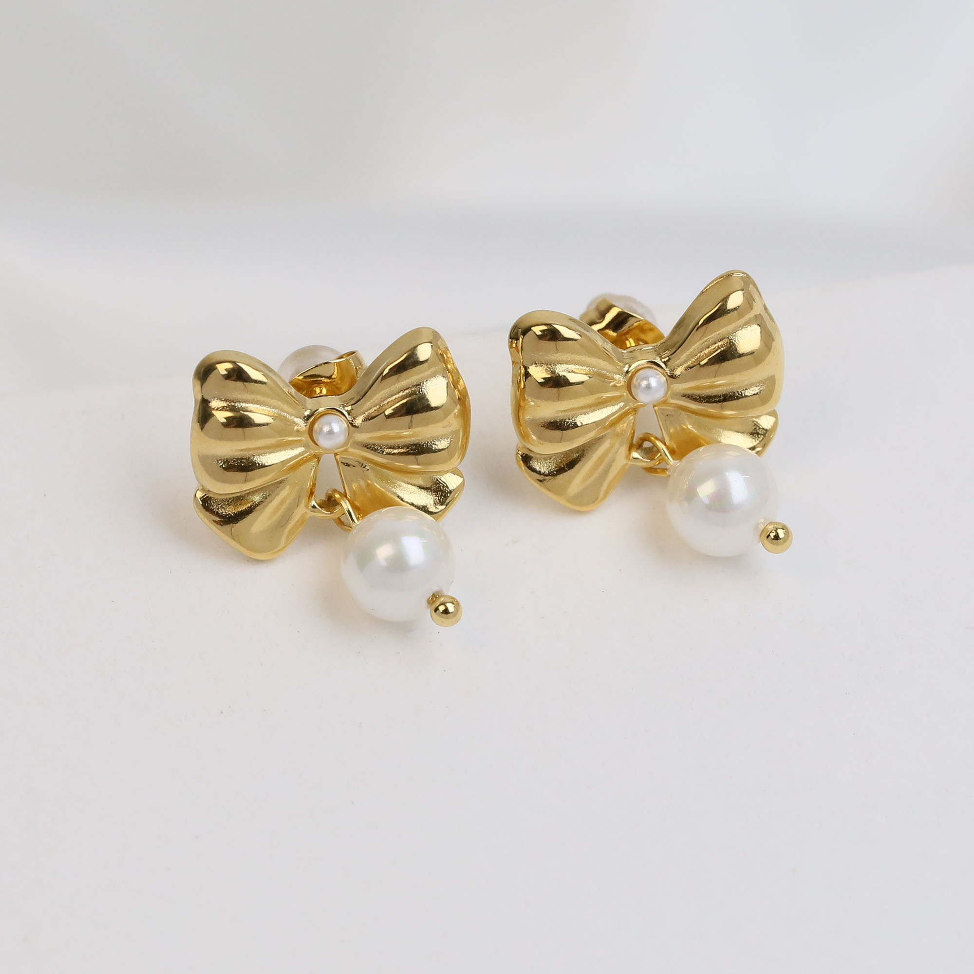 Pearl Bow Tie Earrings