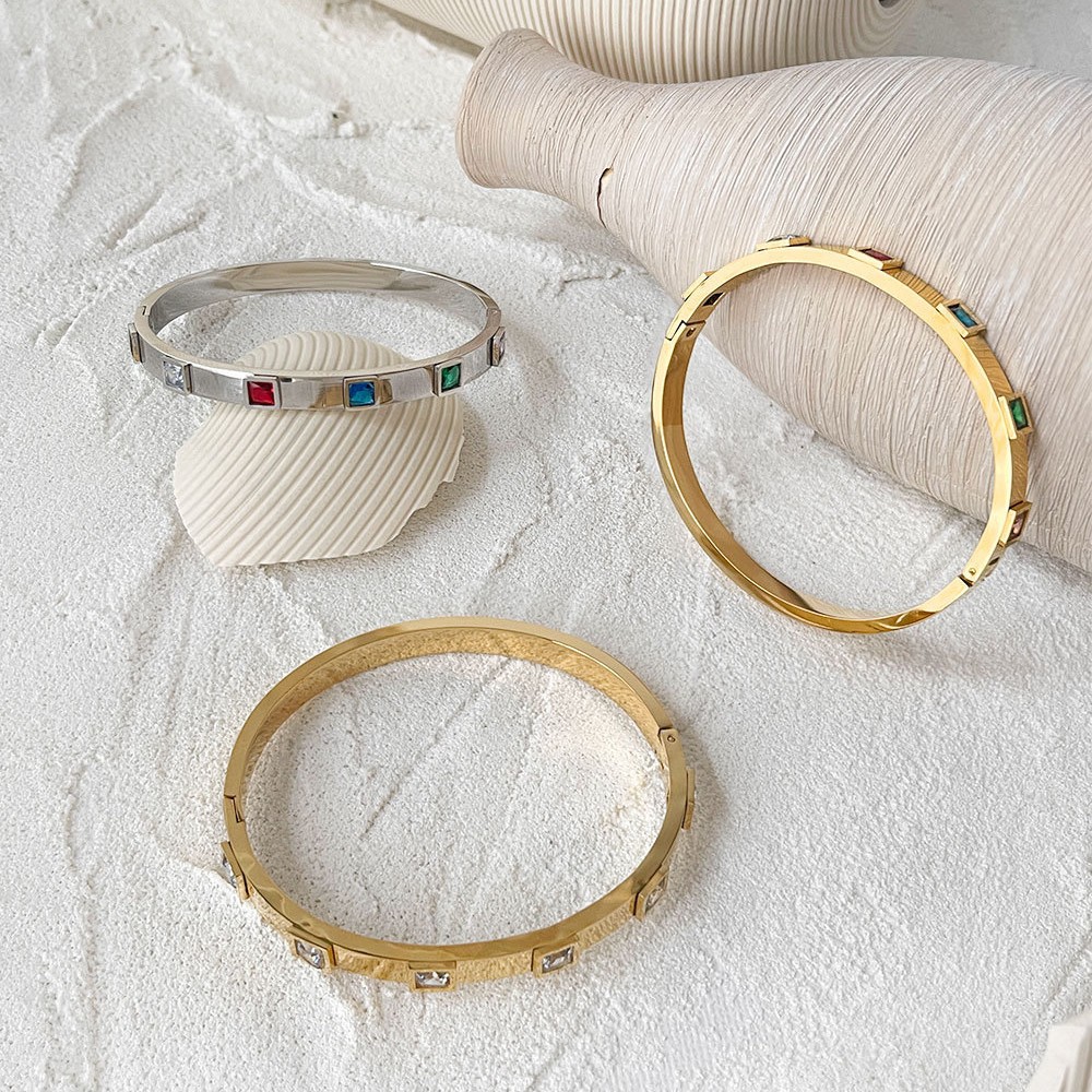 Stainless Steel Colorful Square Zircon Bracelet