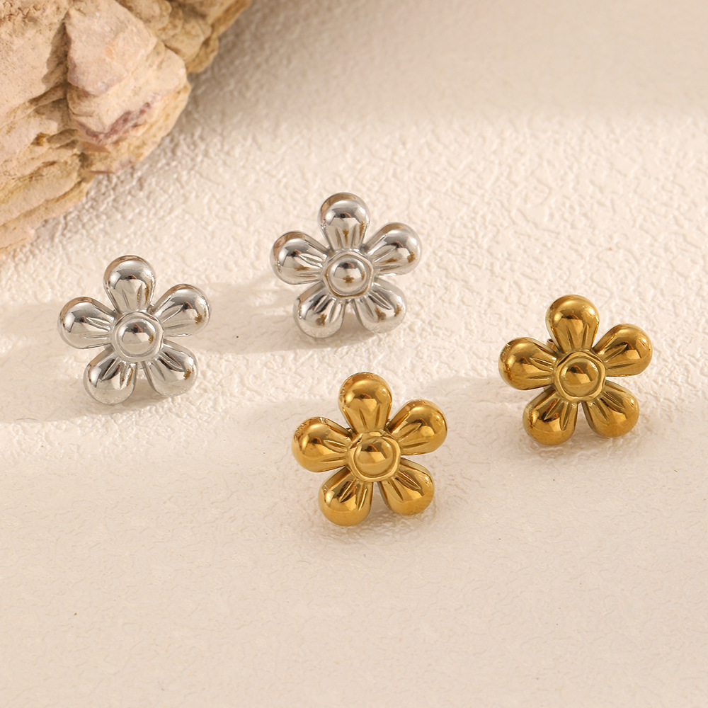 Stainless Steel Flower Stud Earrings