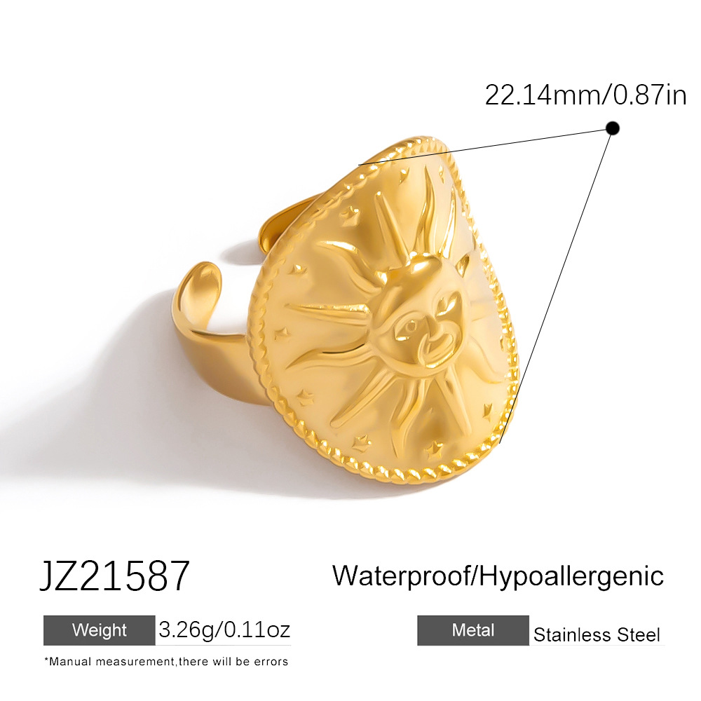 Stainless Steel Flower Sun Chunky Ring