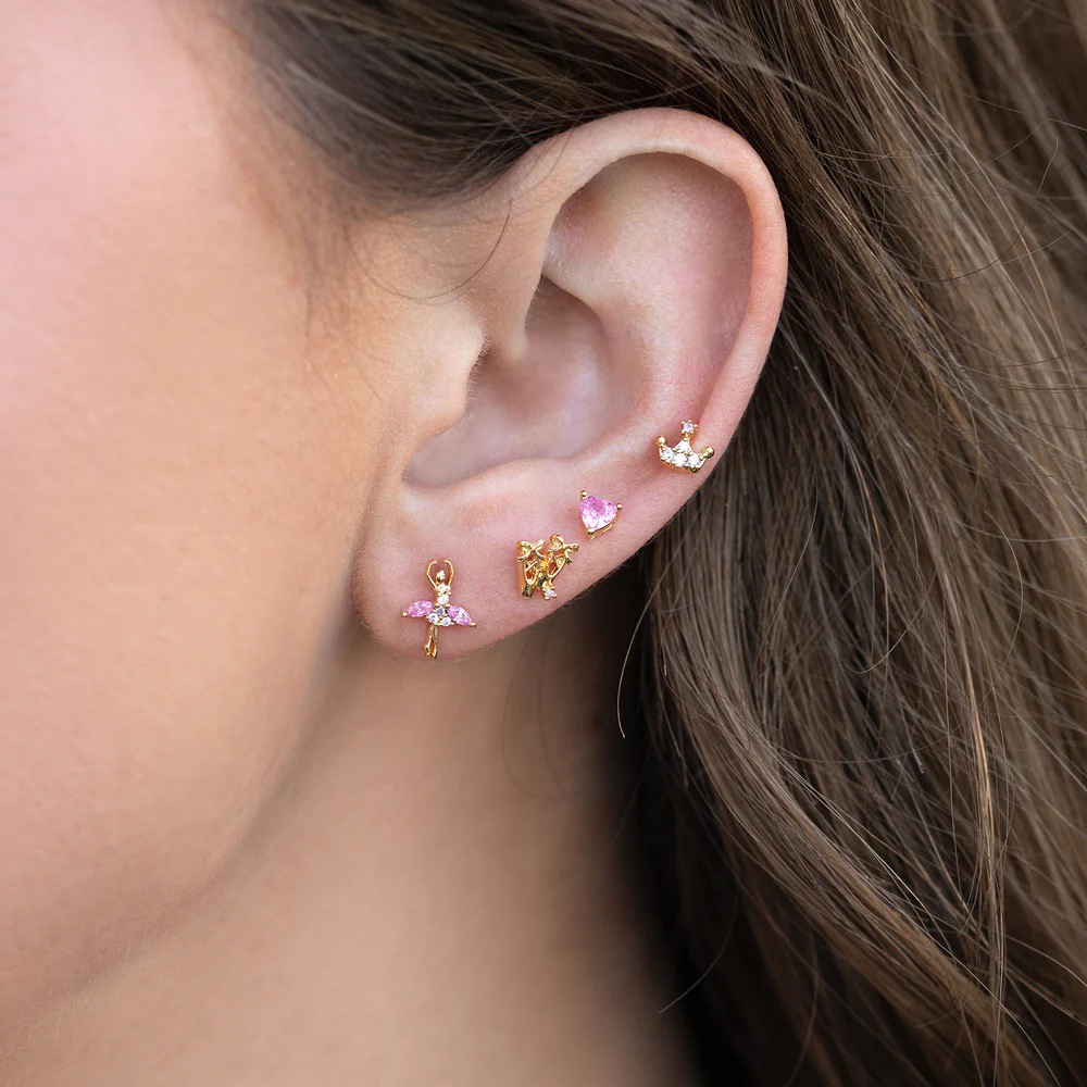 Zircon Girl Heart-shaped Crown Earrings 4 Piece Set
